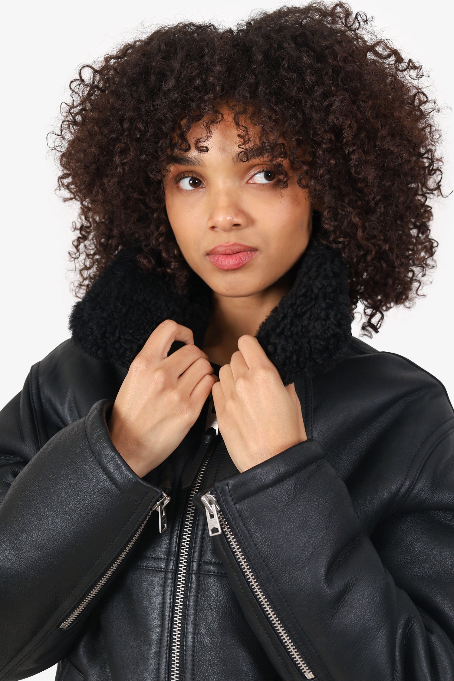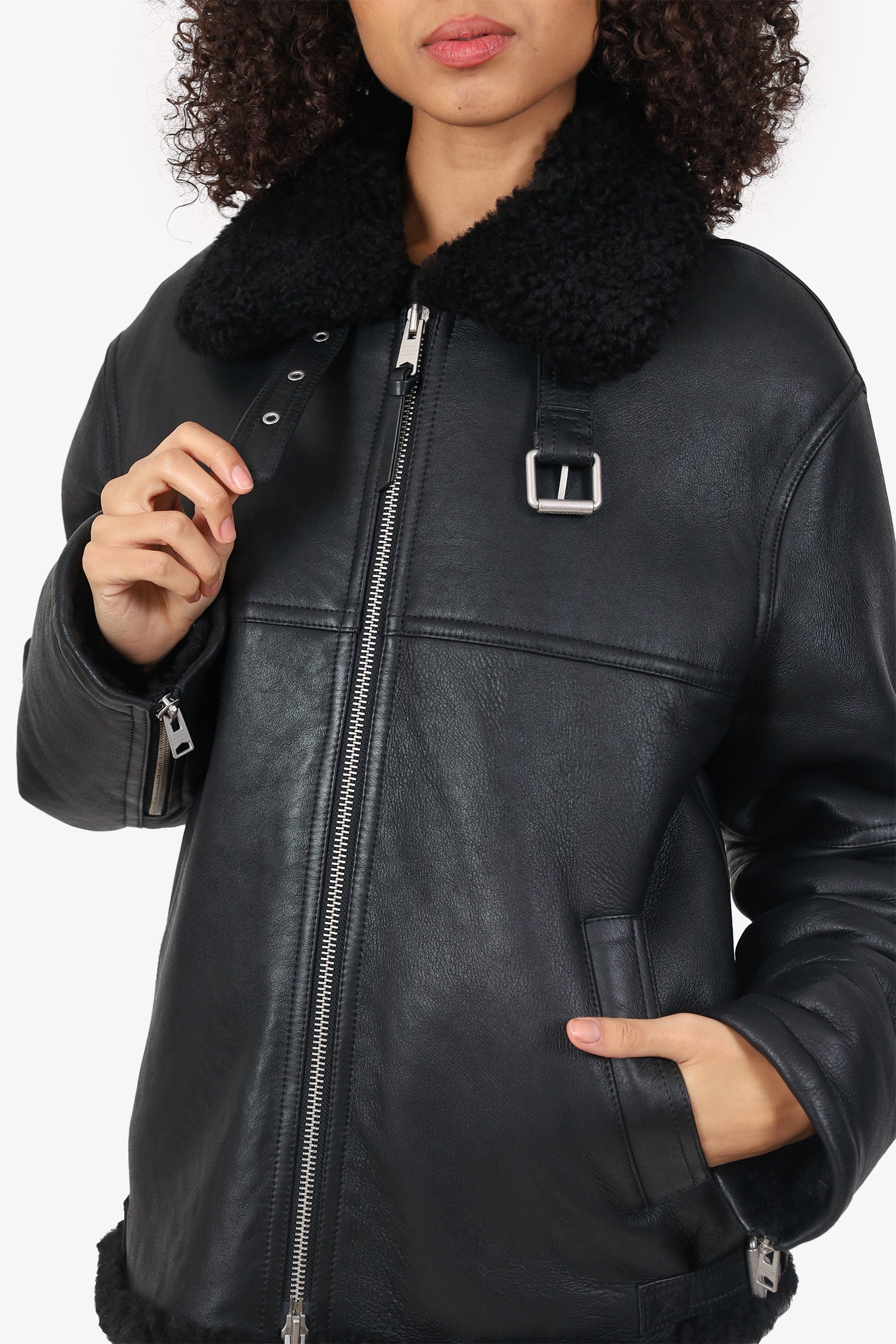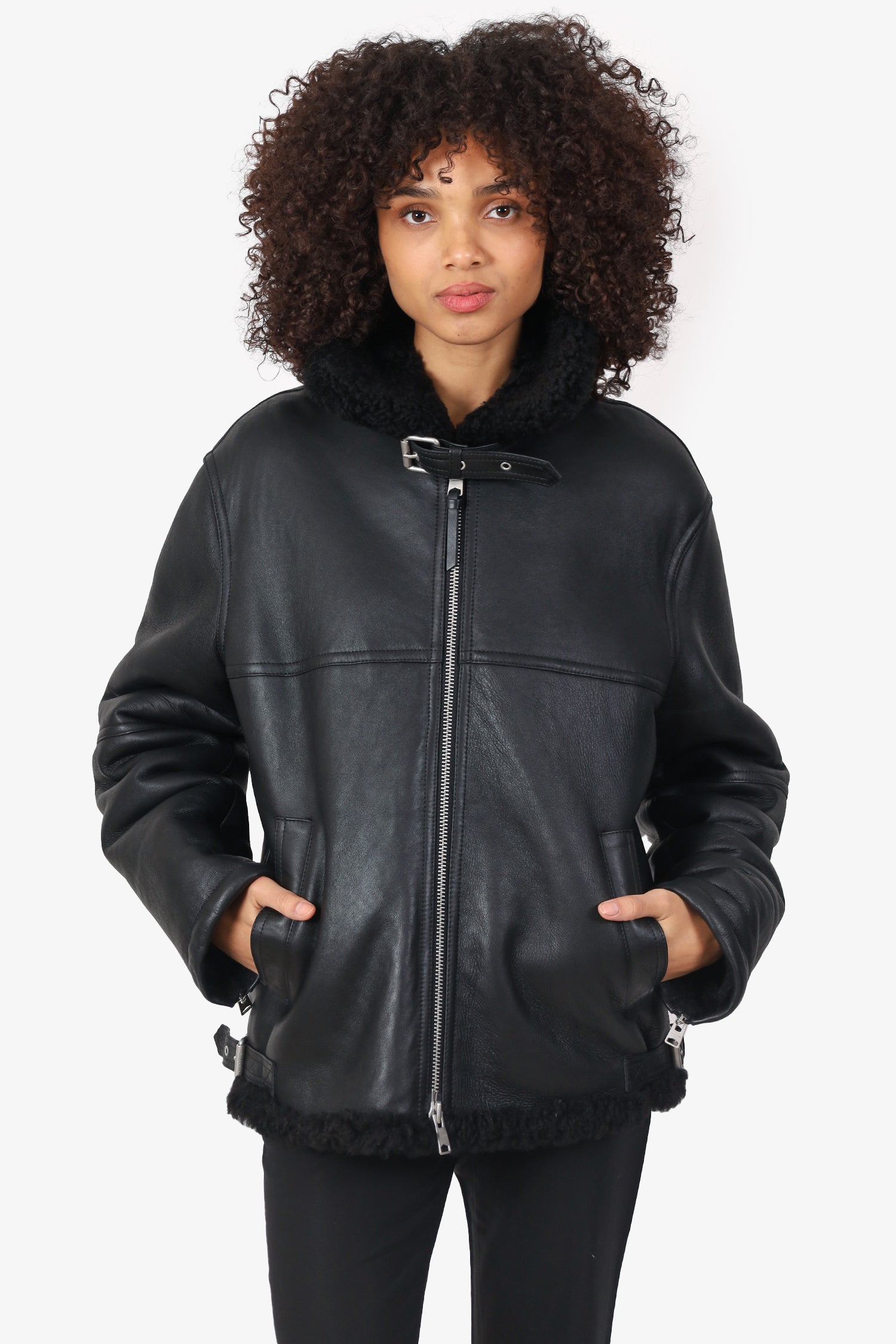 Allsaints Black "Cyprus" Shearling Biker Jacket Size XS