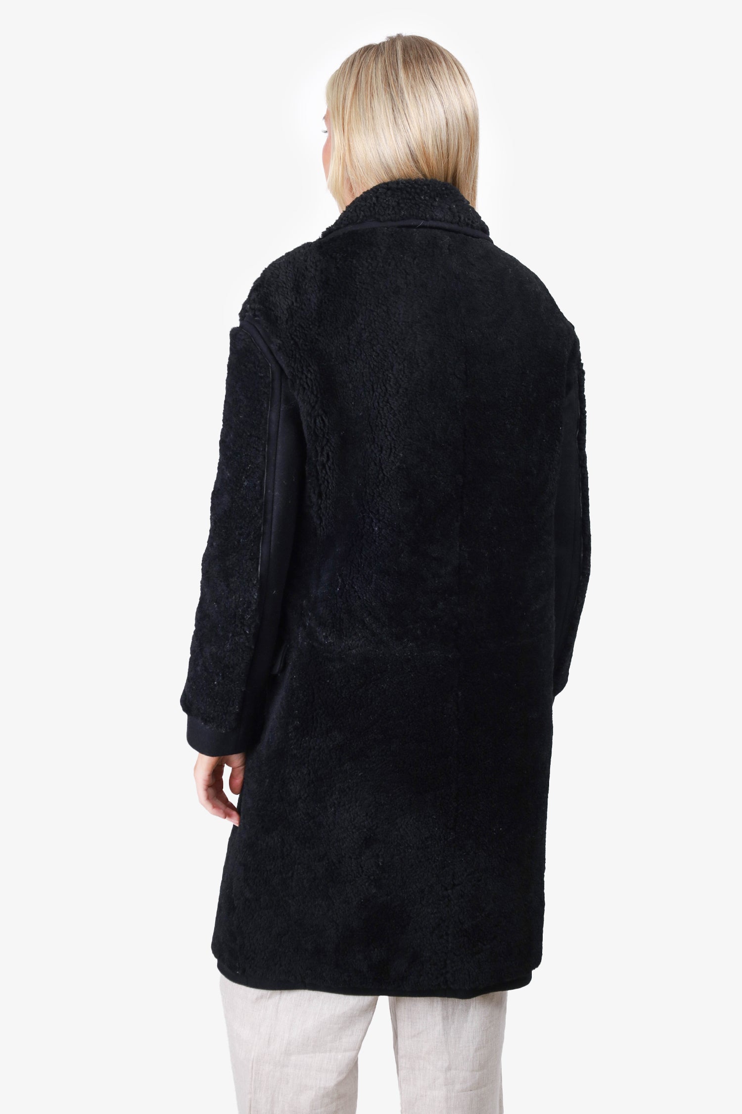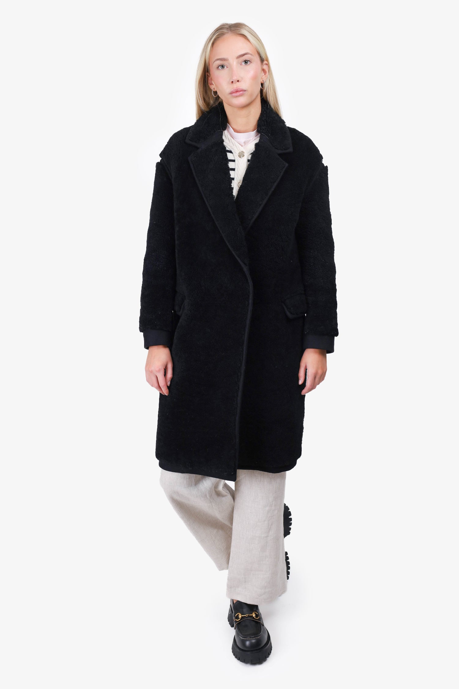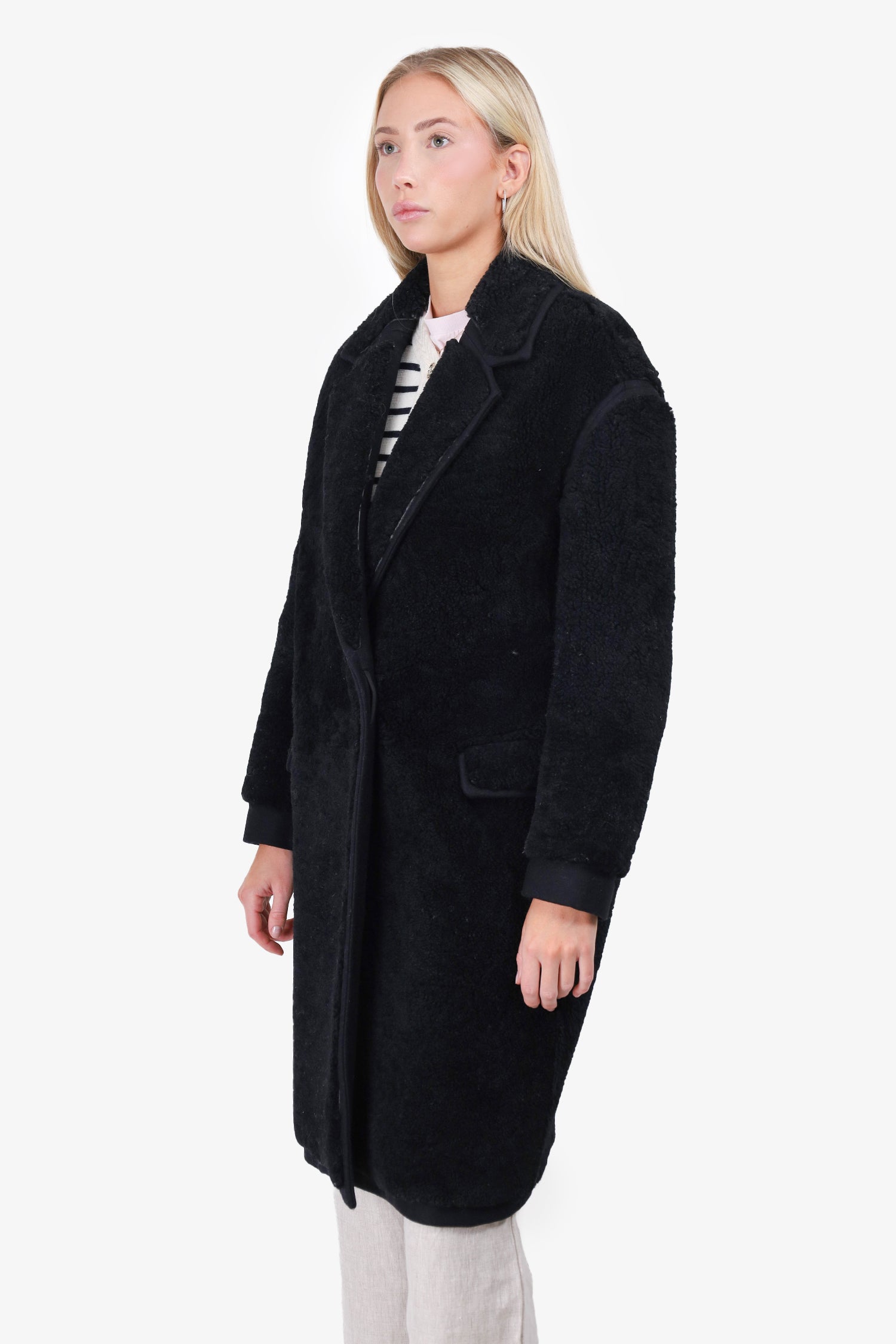 Refresh availabilityAllSaints Black Shearling Coat. Two front flap pockets. Double breasted button front closure. Lined. Tonal stitching