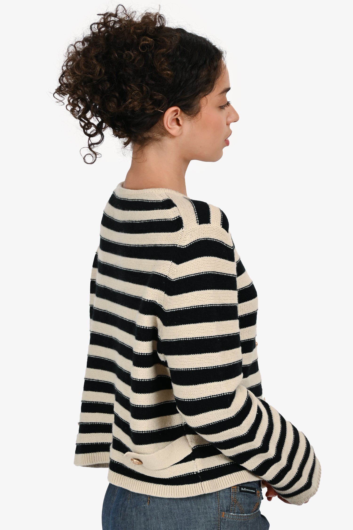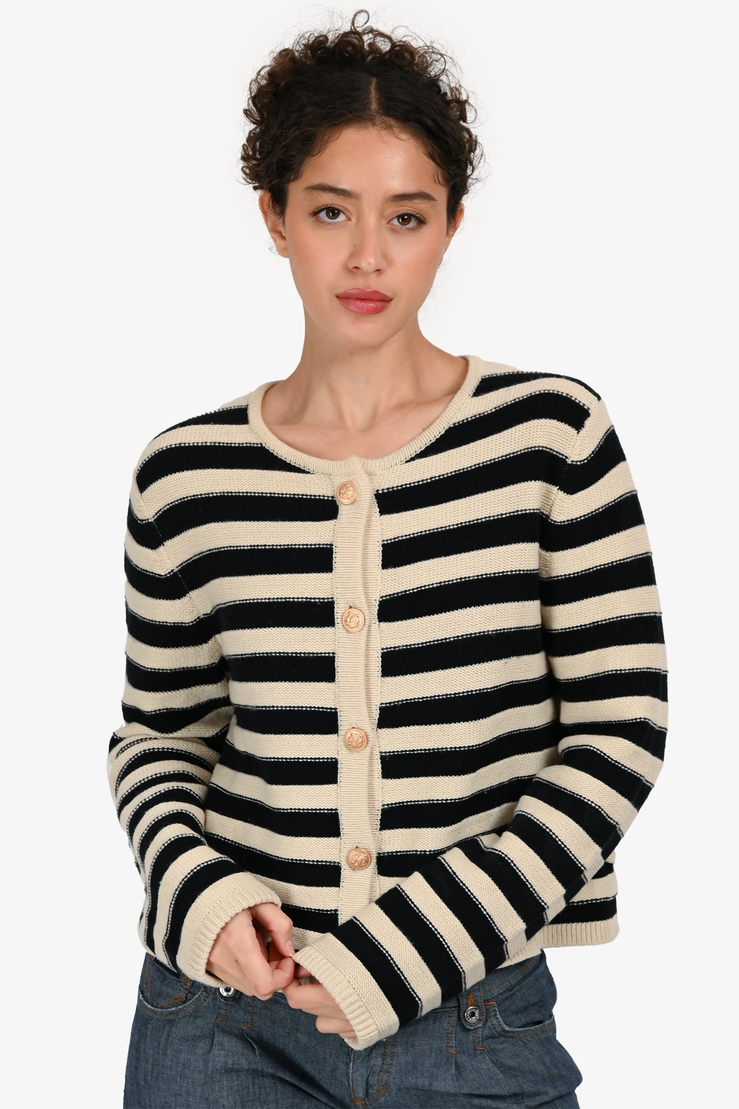 Allude Beige/Black Cashmere/Wool Gold Button Cardigan Size L