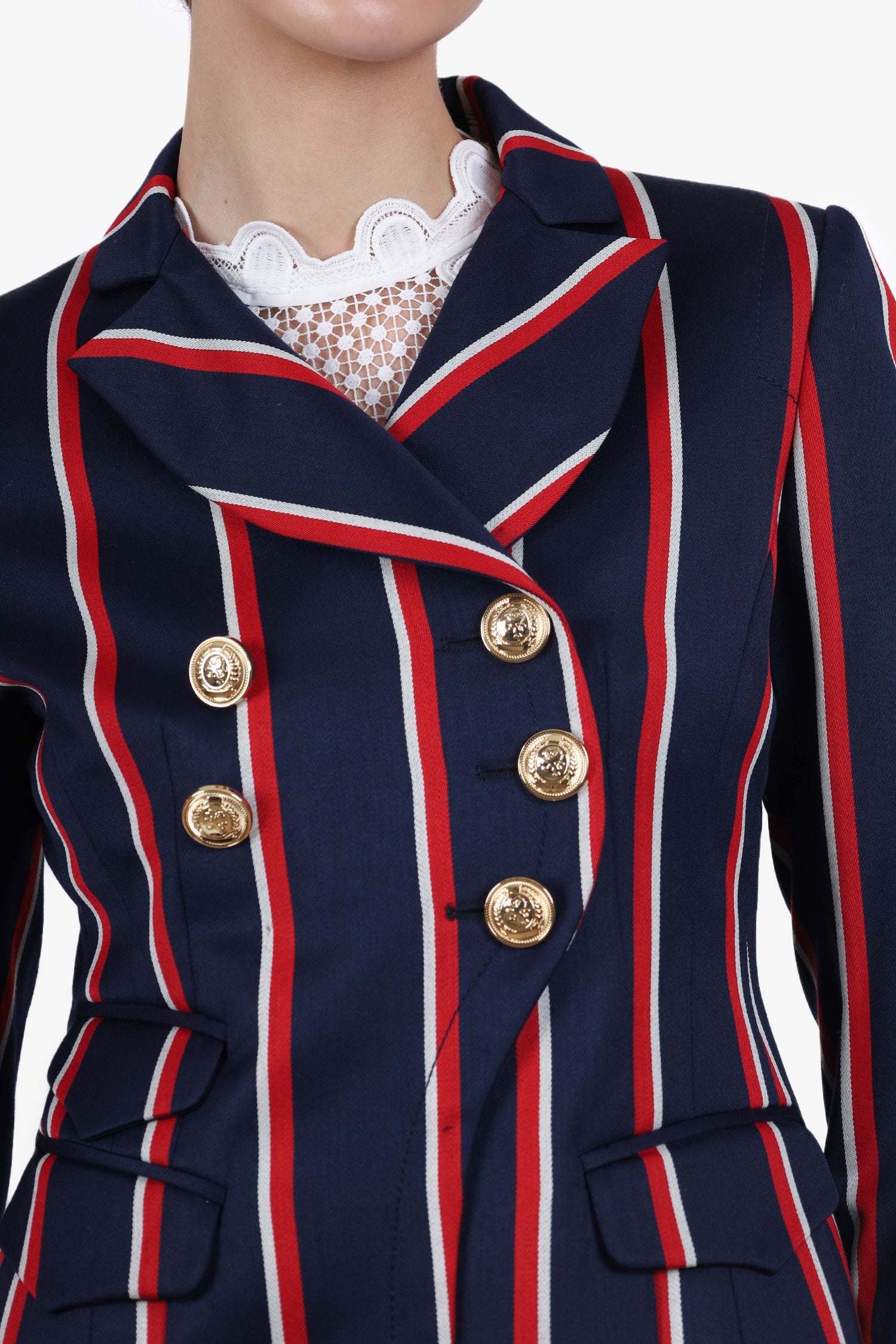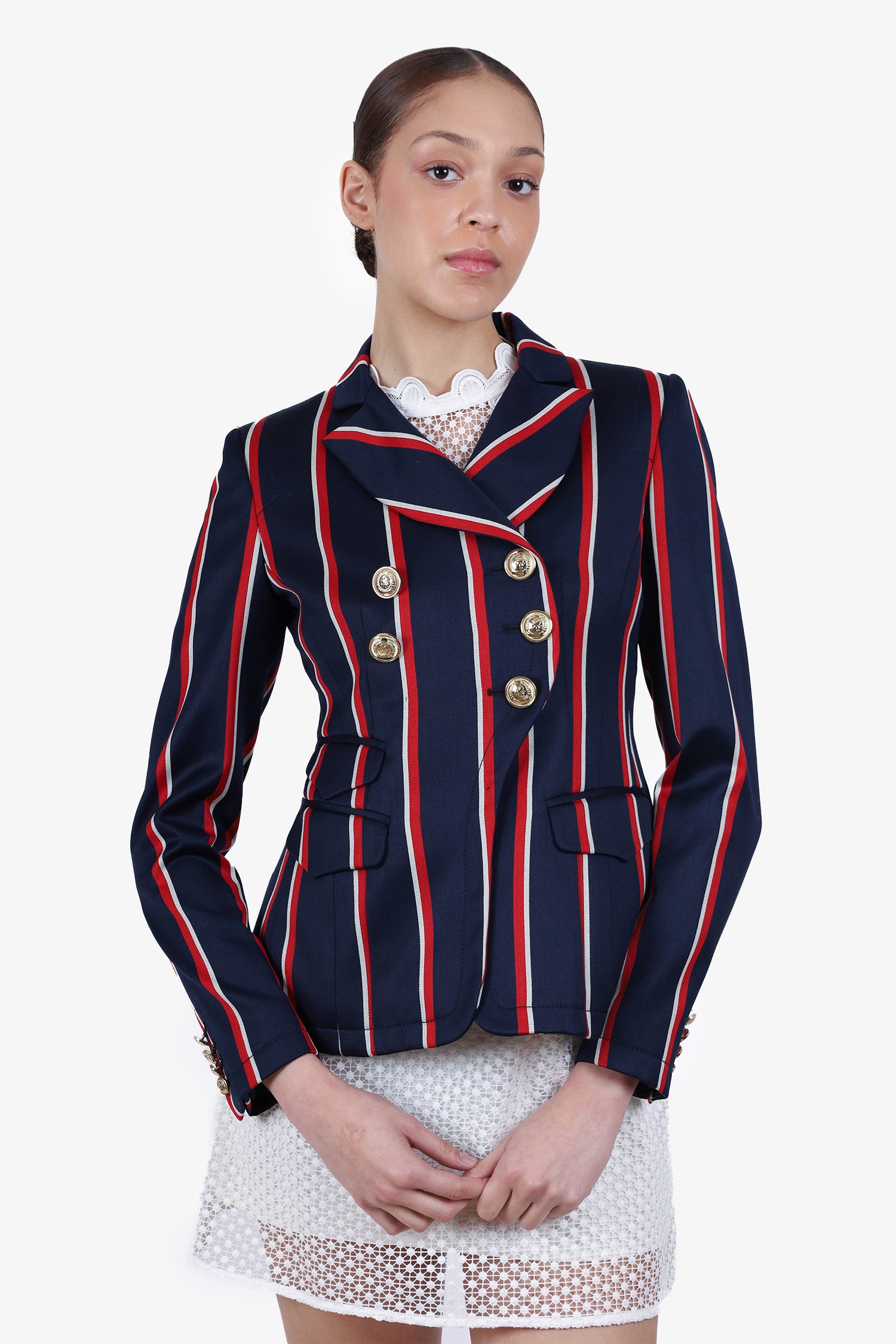 Altuzarra Blue/Red Wool Striped Blazer Size 38