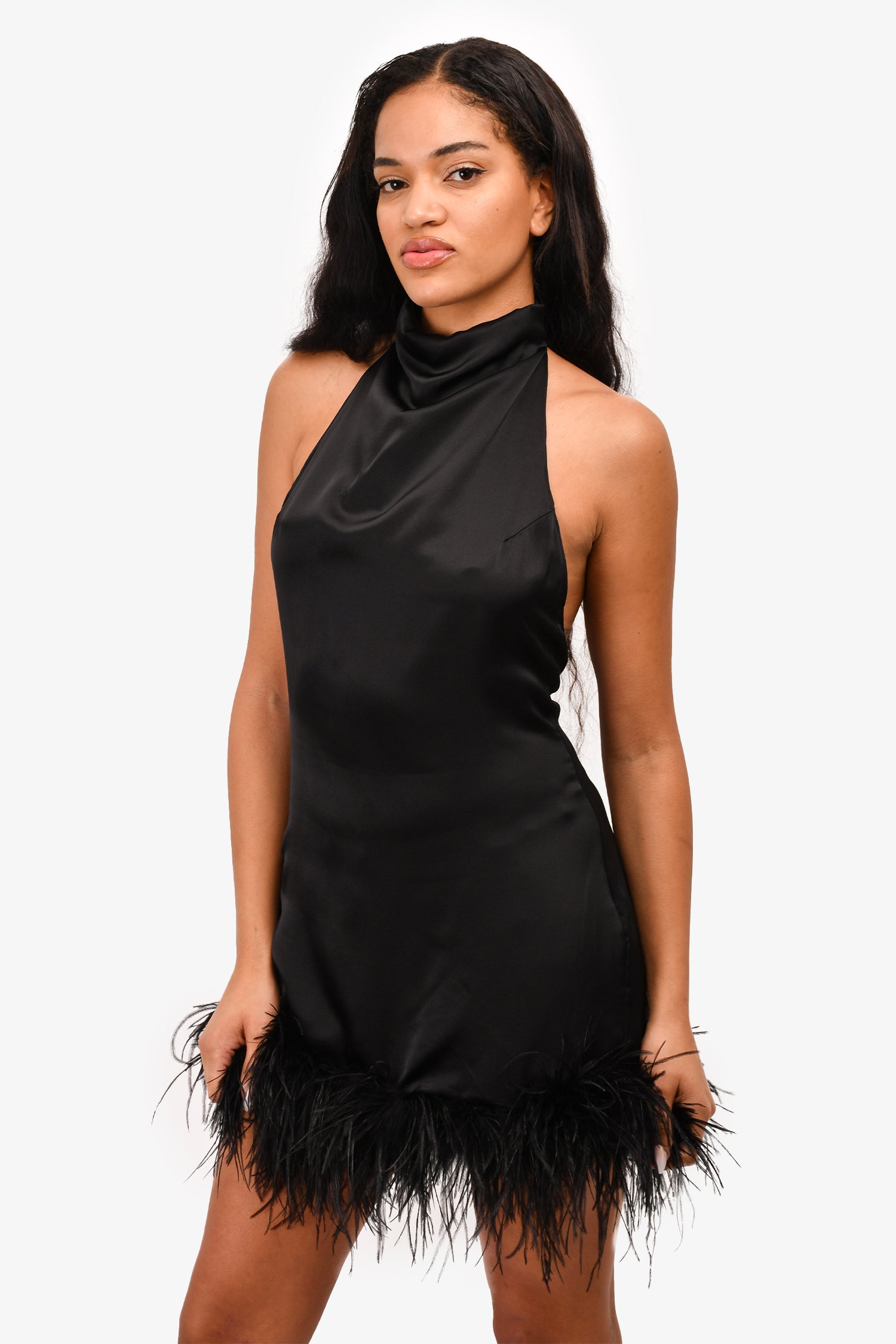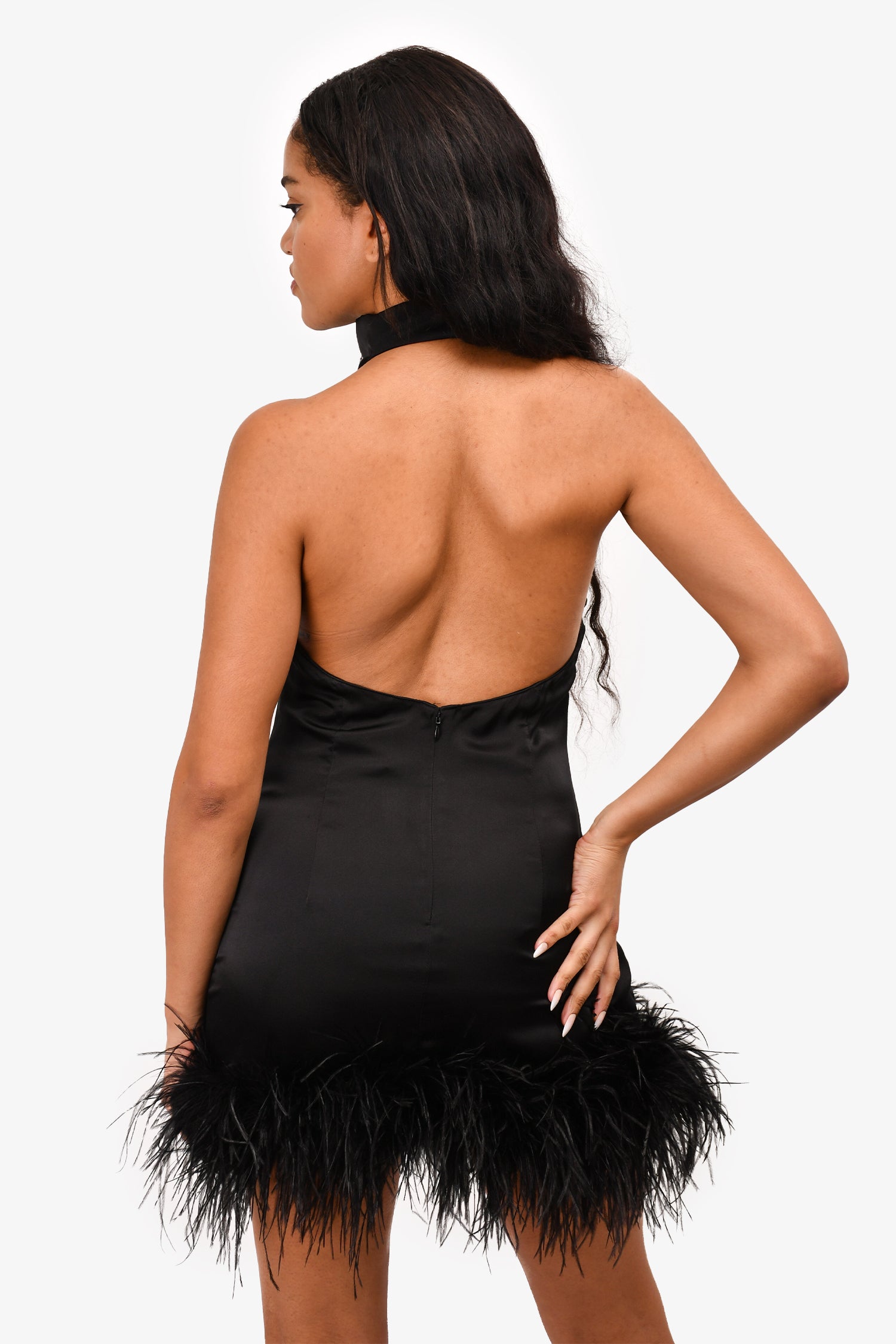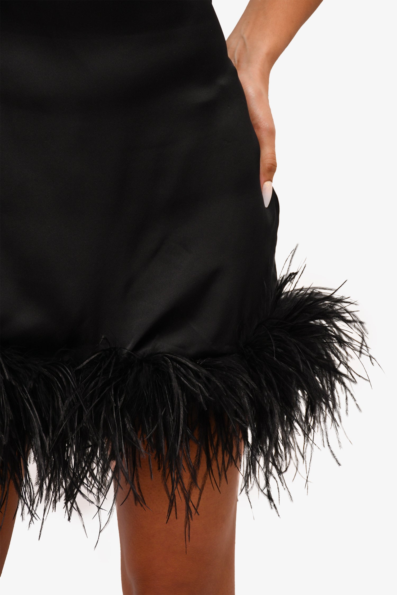 Refresh availabilityAmanda Uprichard Black Silk Feather Trim 'Lunaria' Mini Dress. Rear zip up closure. Tonal stitching.