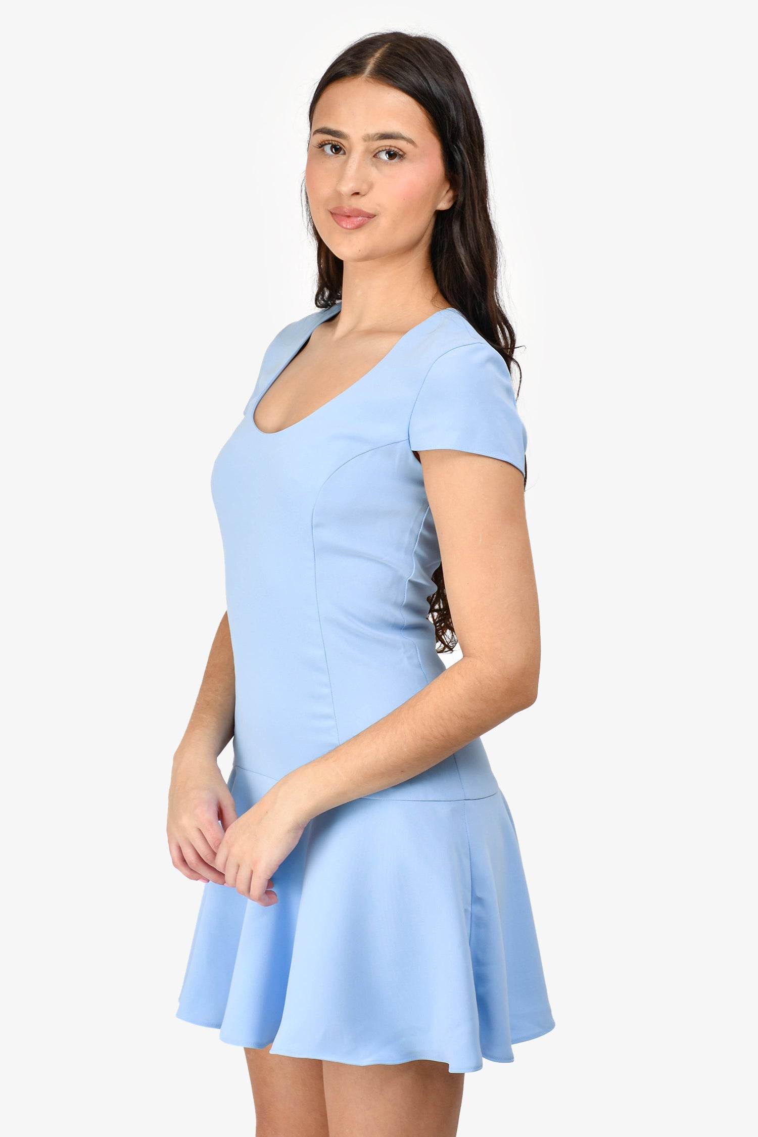 Refresh availabilityAmanda Uprichard Blue 'Debby' Dress. Round neckline. Back zip-up closure. Short sleeves. Fully lined. Tonal stitching.