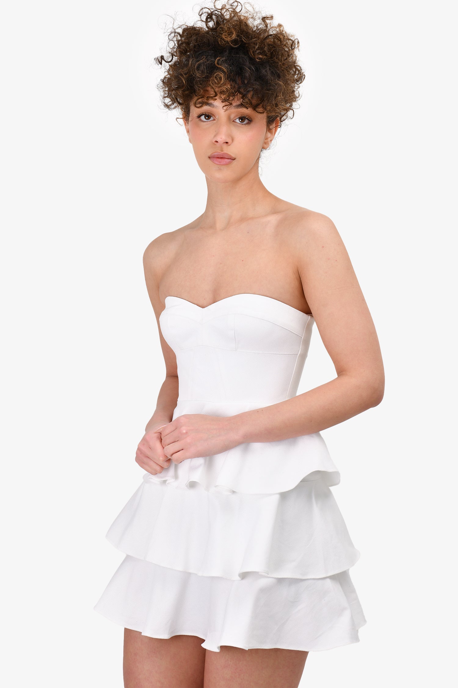 Refresh availabilityAmanda Uprichard White Strapless Tiered Mini Dress. Rear zip and hook closure. Unlined. Tonal stitching.