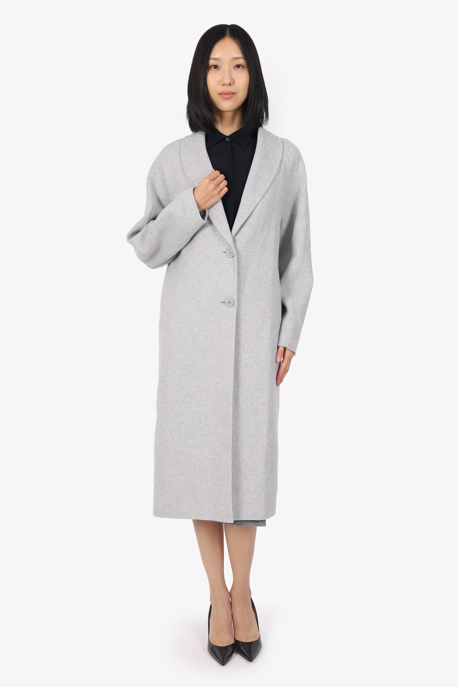 Refresh availabilityAmerican Vintage Grey Coat. Pull-on. Shawl lapel. Front button-up closure. 2 front exterior slip pockets. Single rear vent. Tonal stitching.