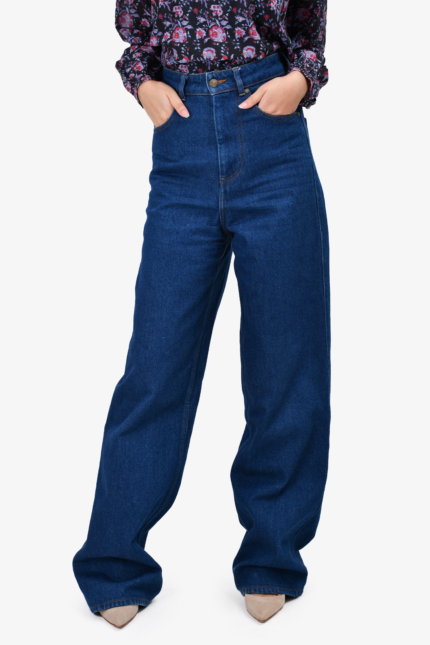 Refresh availabilityAmi Alexandre Mattiusi Medium Wash Wide Leg Jeans. Front zip and button closure. Front and rear pockets. Waist belt loops.