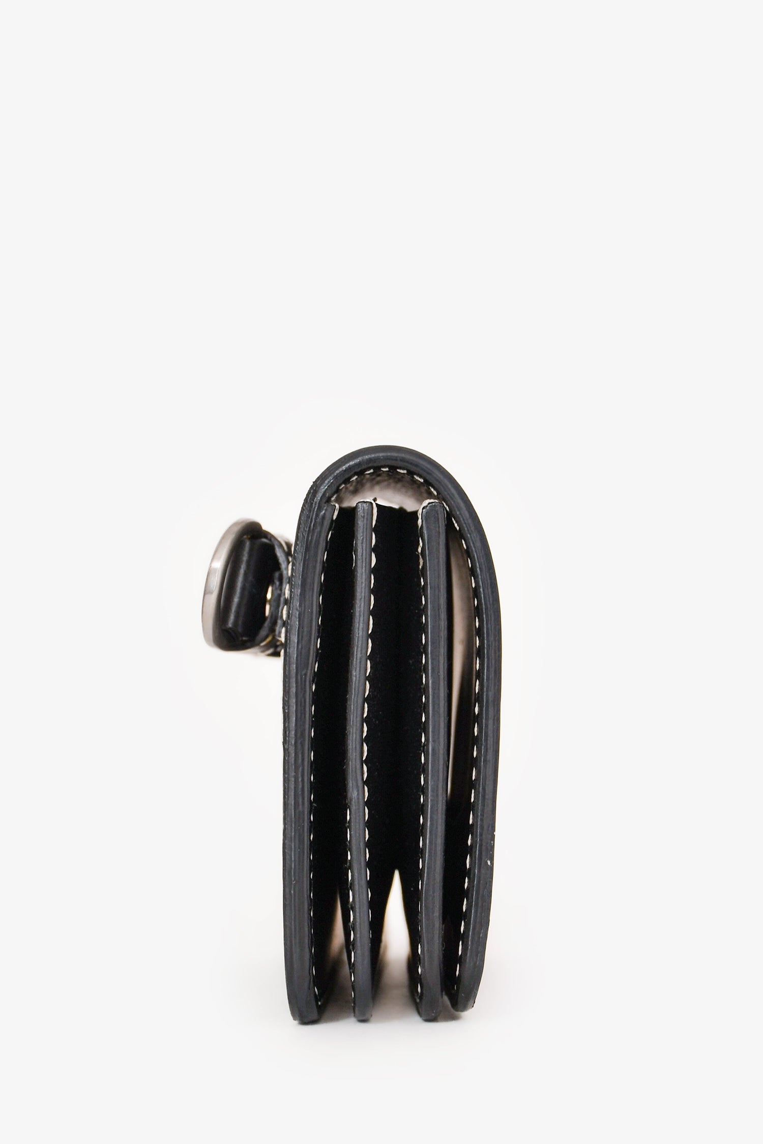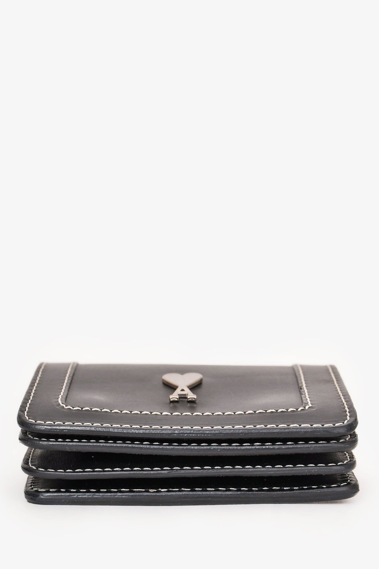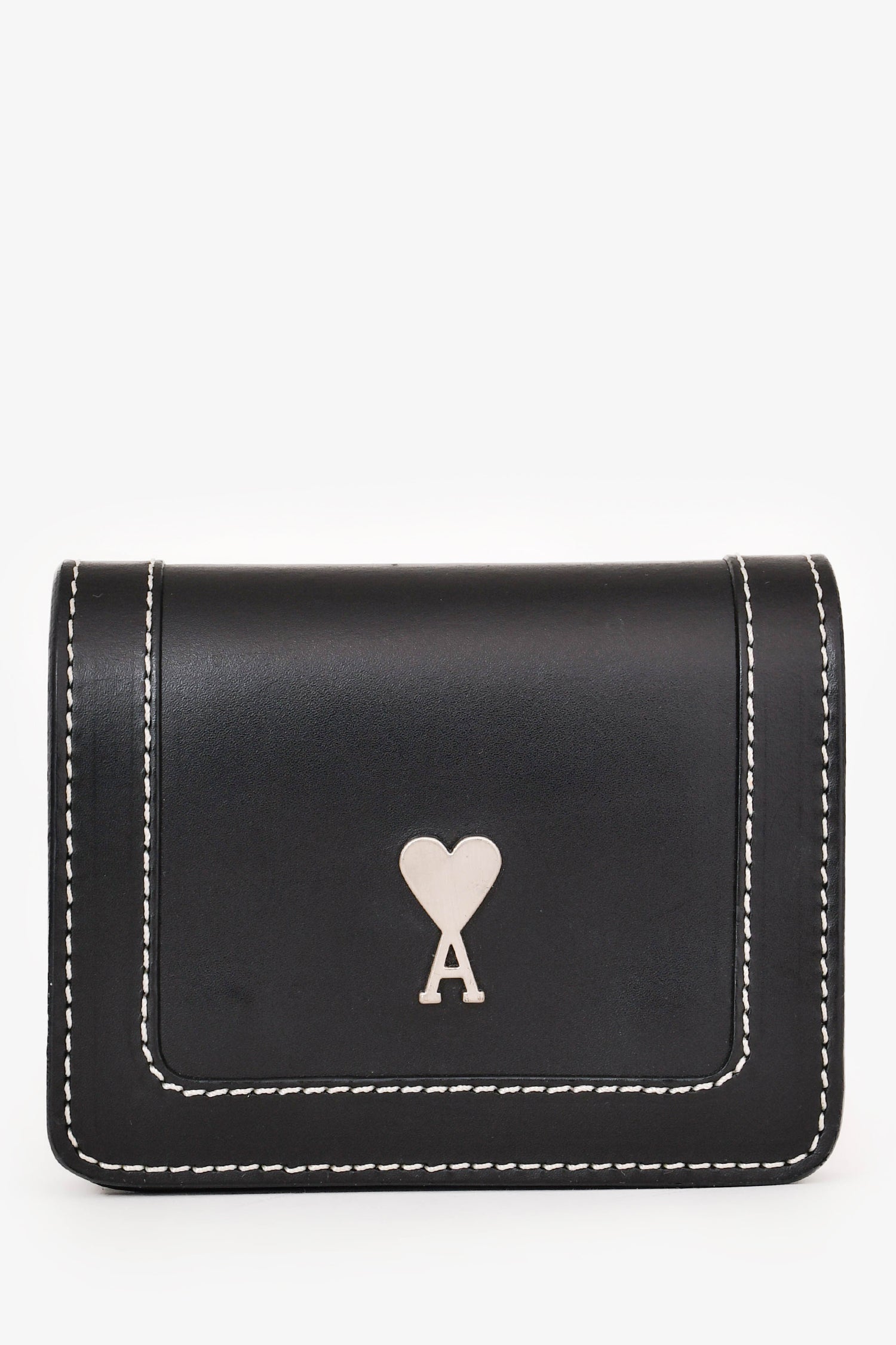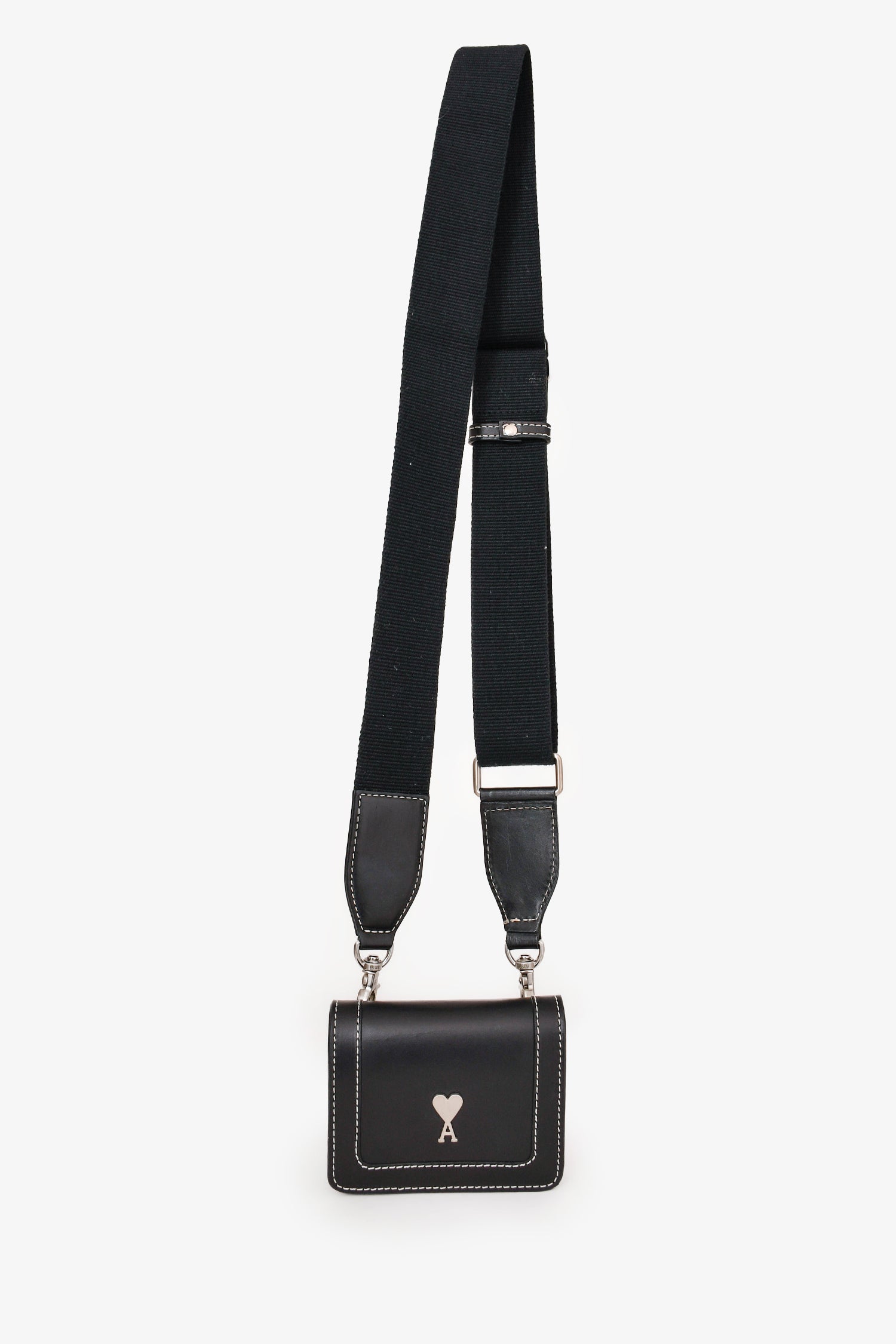 Refresh availabilityAmi Black Leather Logo Card Hold Crossbody. Silver-tone hardware. Concealed magnetic closure. Webbed strap. Leather trimming. Comes with a strap. Contrast stitching.