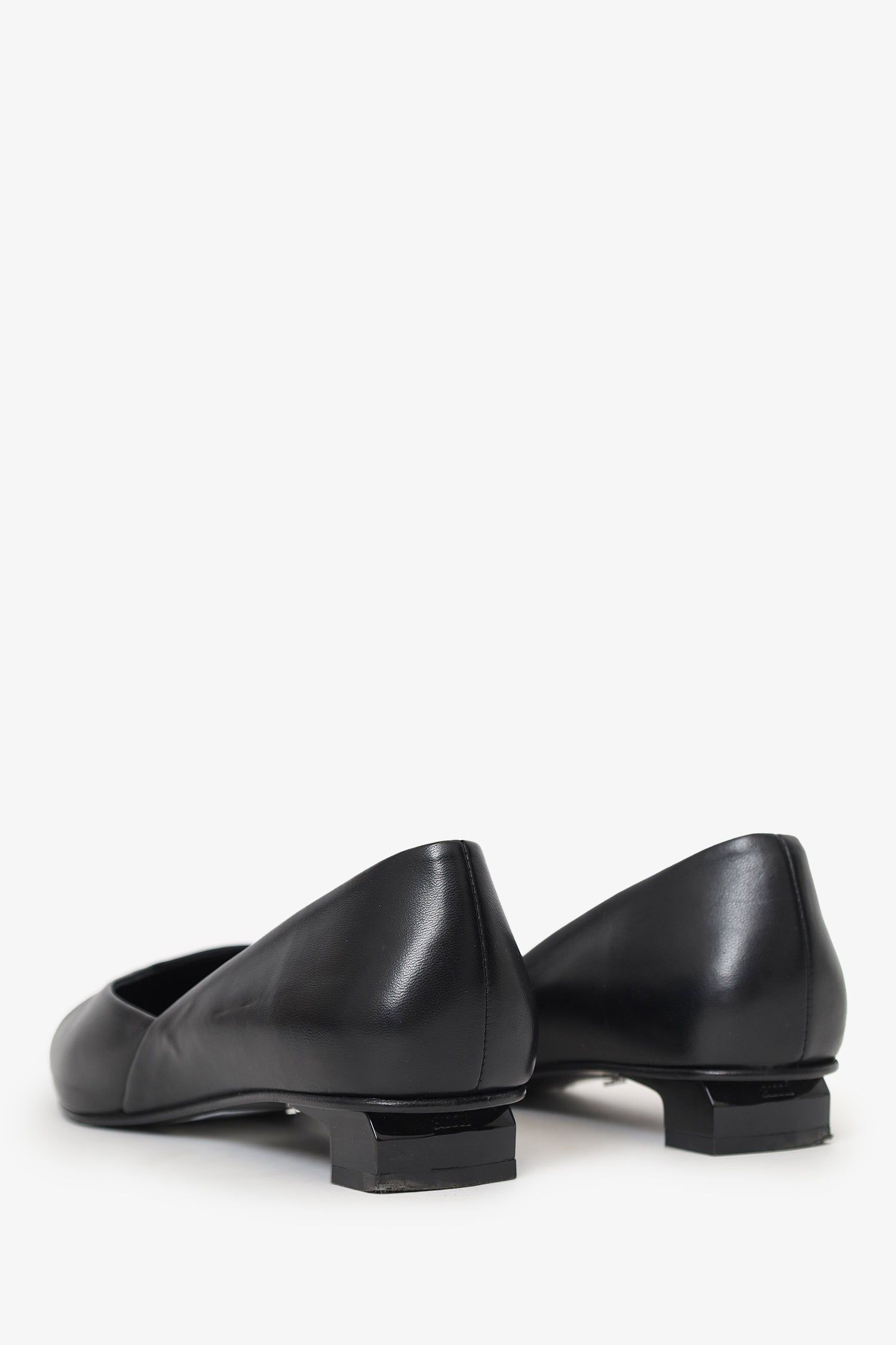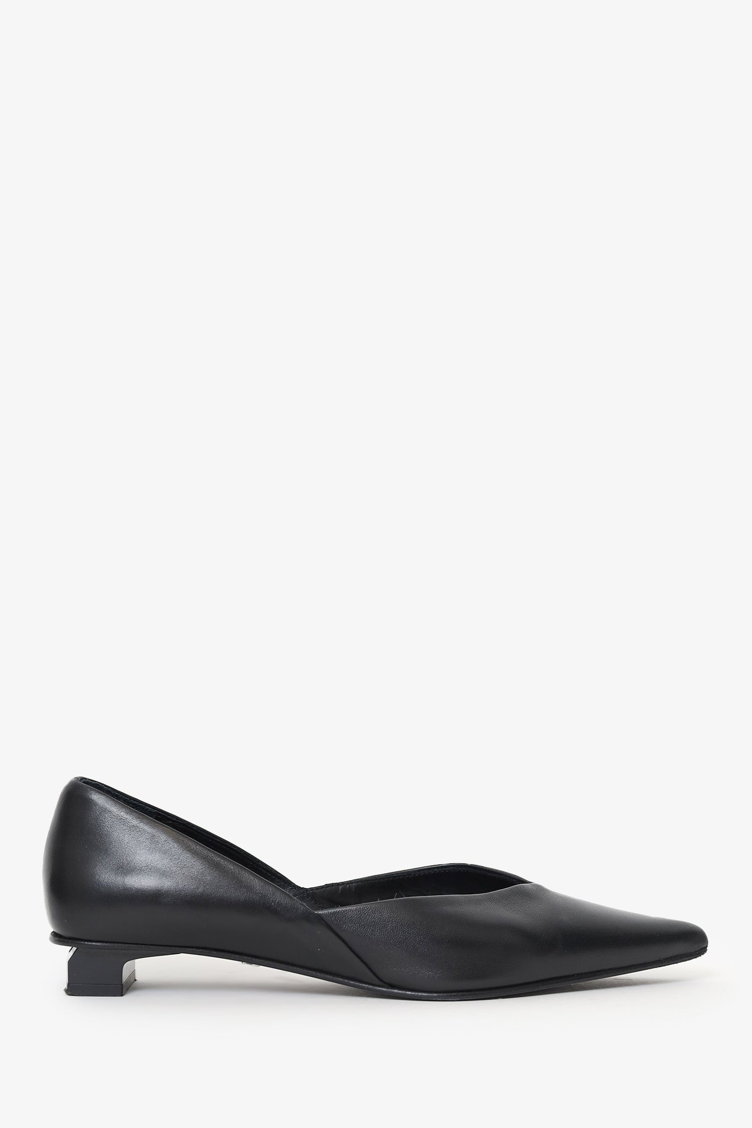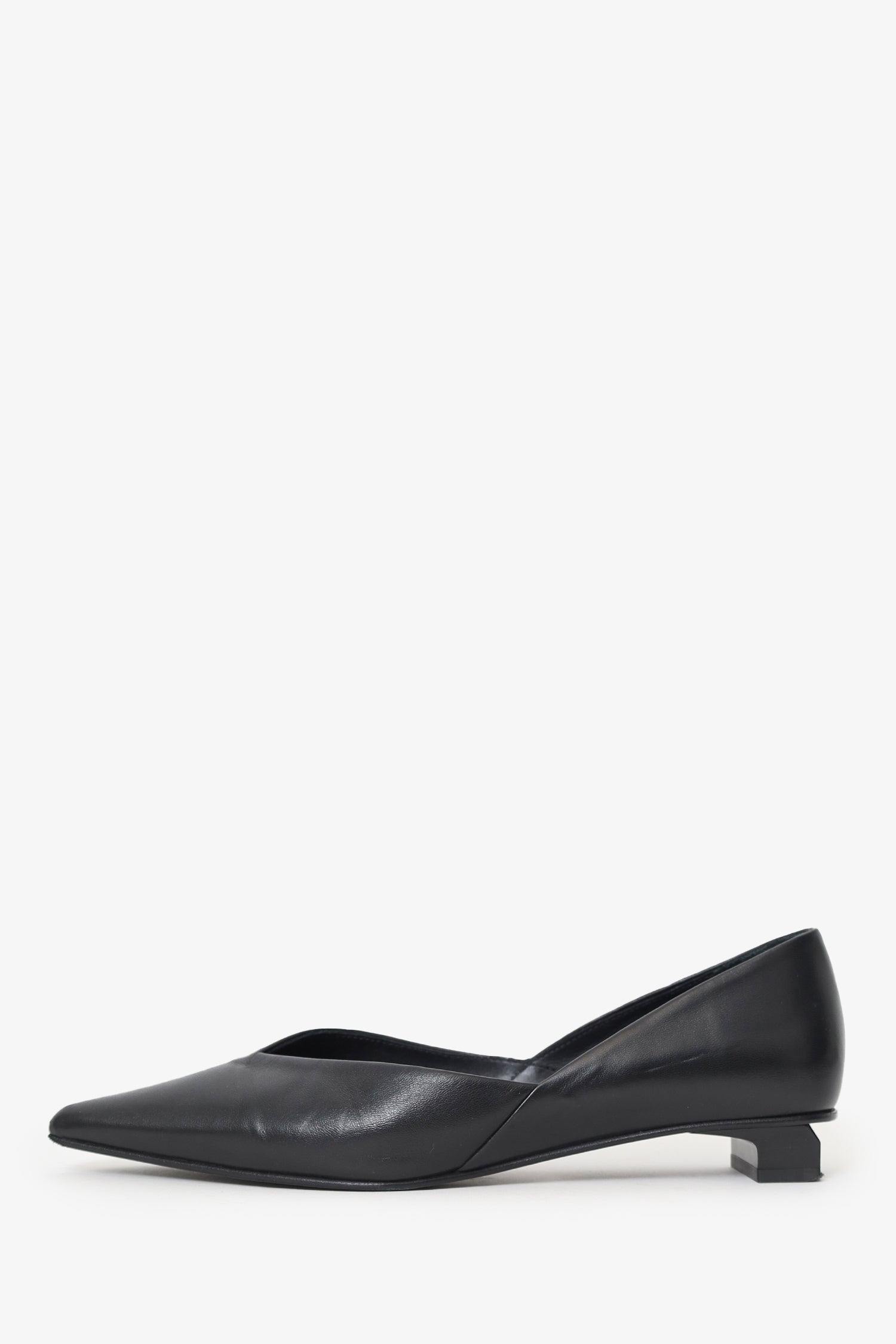 Refresh availabilityAmi Black Leather Pointed Toe Flats. Pointed toe. Block heel. Leather-lined interior. Silver-tone hardware. Tonal stitching.