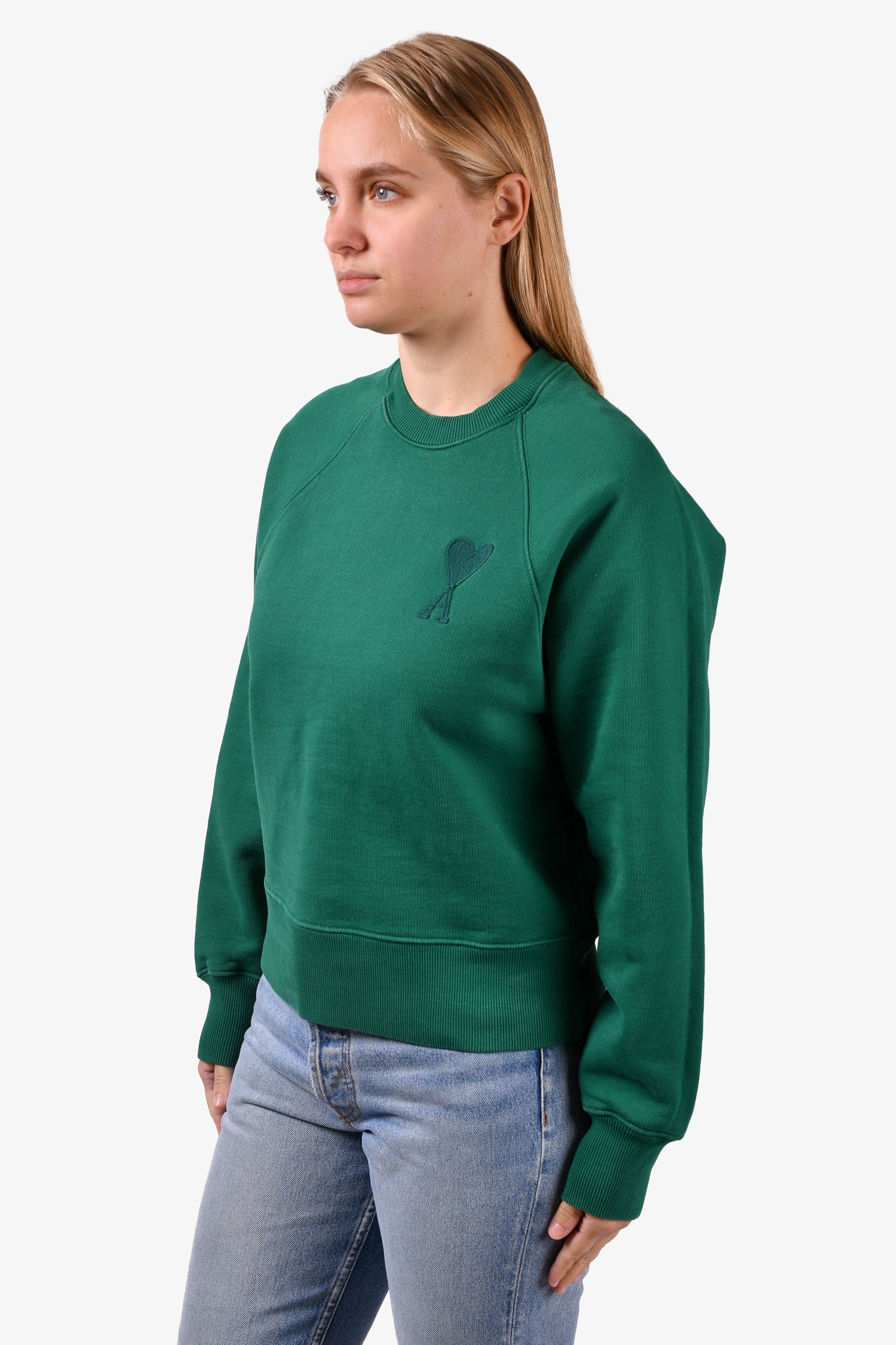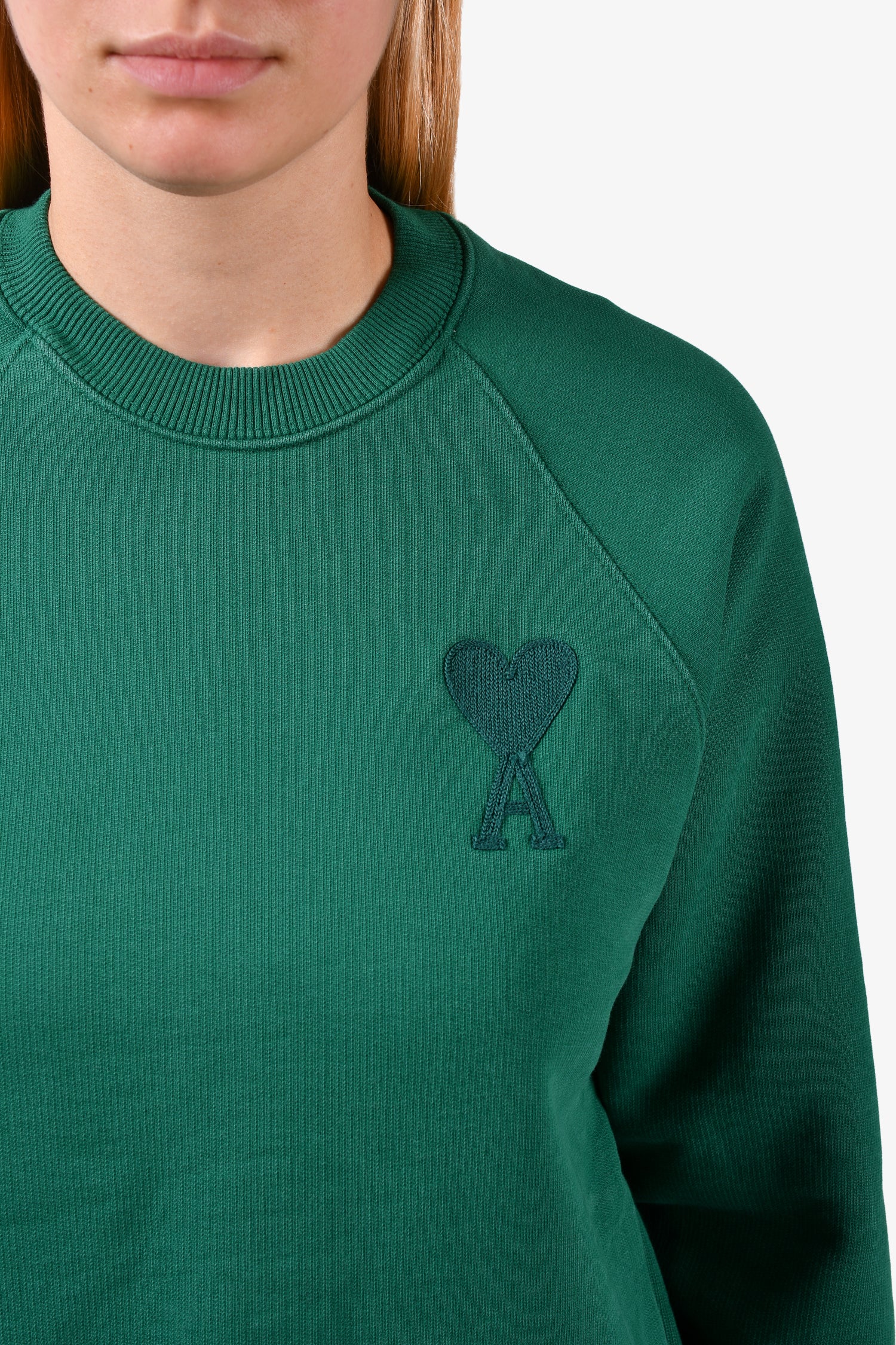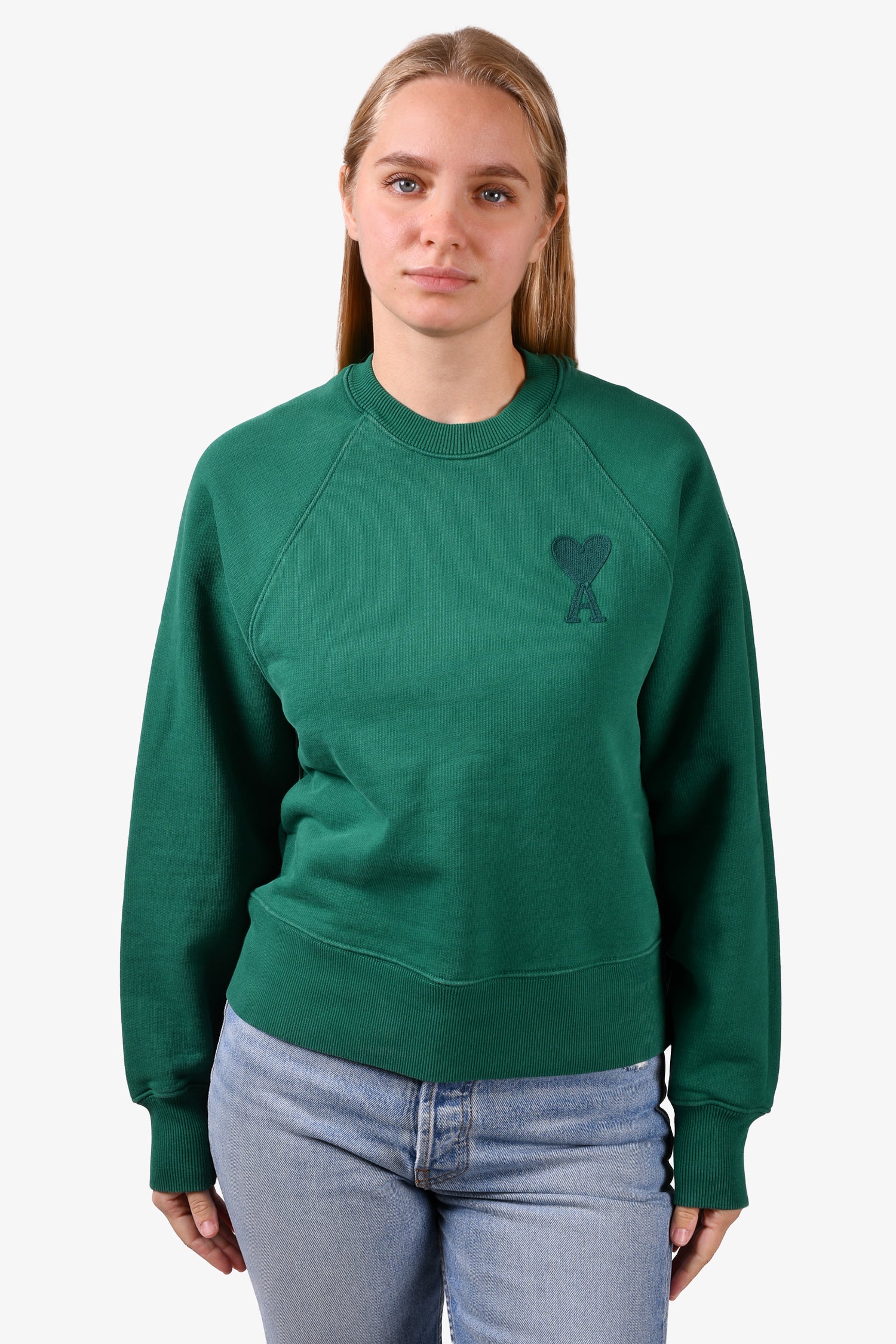 Refresh availabilityAmi Green Embroidered Heart Sweatshirt. Round neck. Pull-on. Tonal stitching.