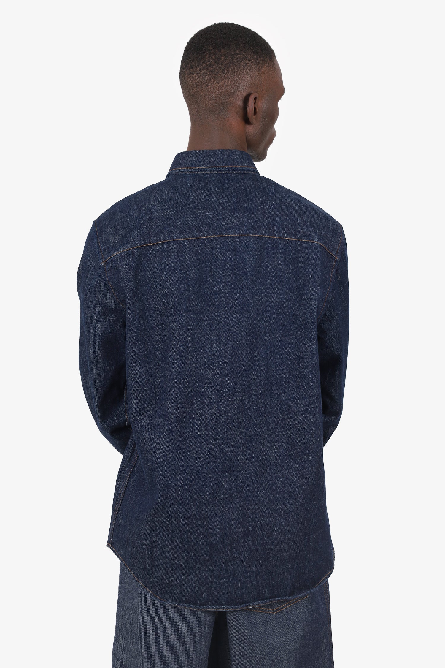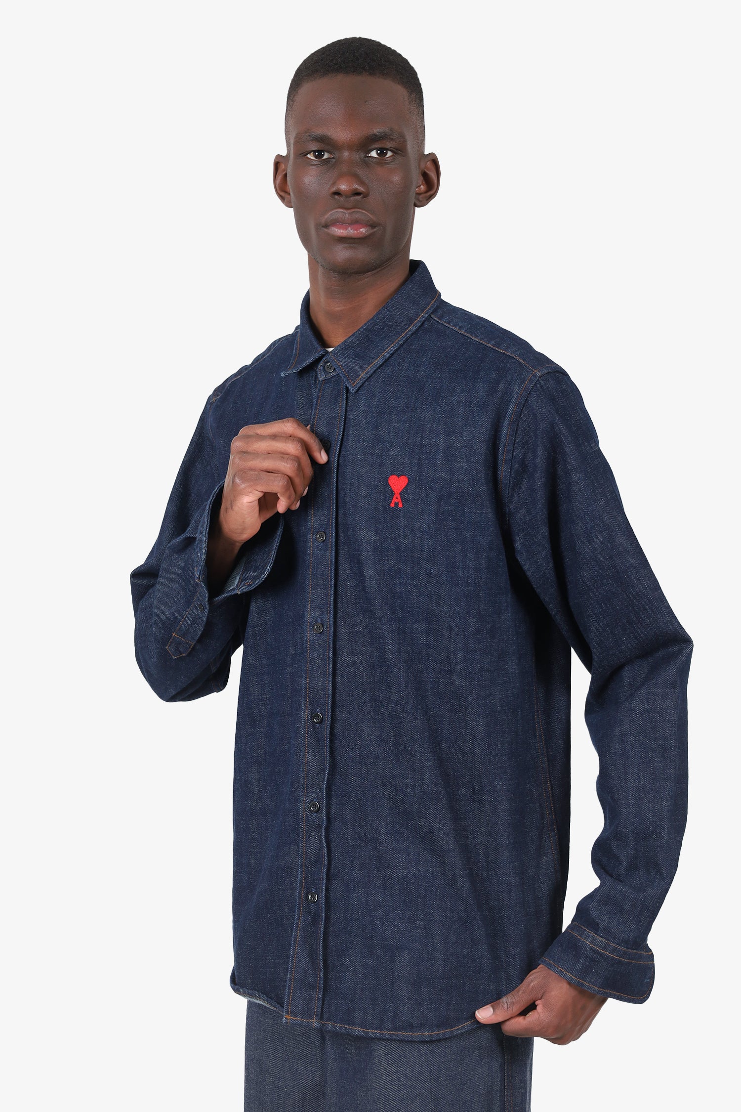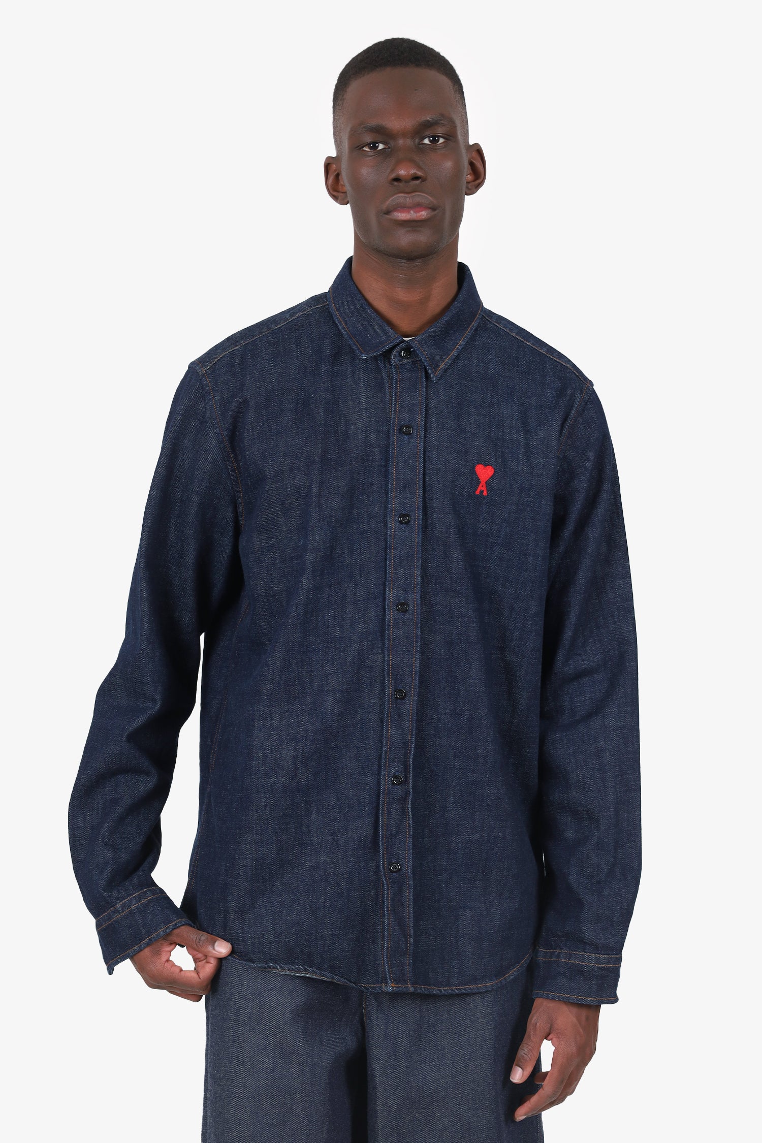 Refresh availabilityAmi Heart Logo Washed Denim Jacket. Pull-on. Collared-neckline. Front button-up closure. Sleeve cuffs with button-up closure. Tonal hardware. Contrast stitching.