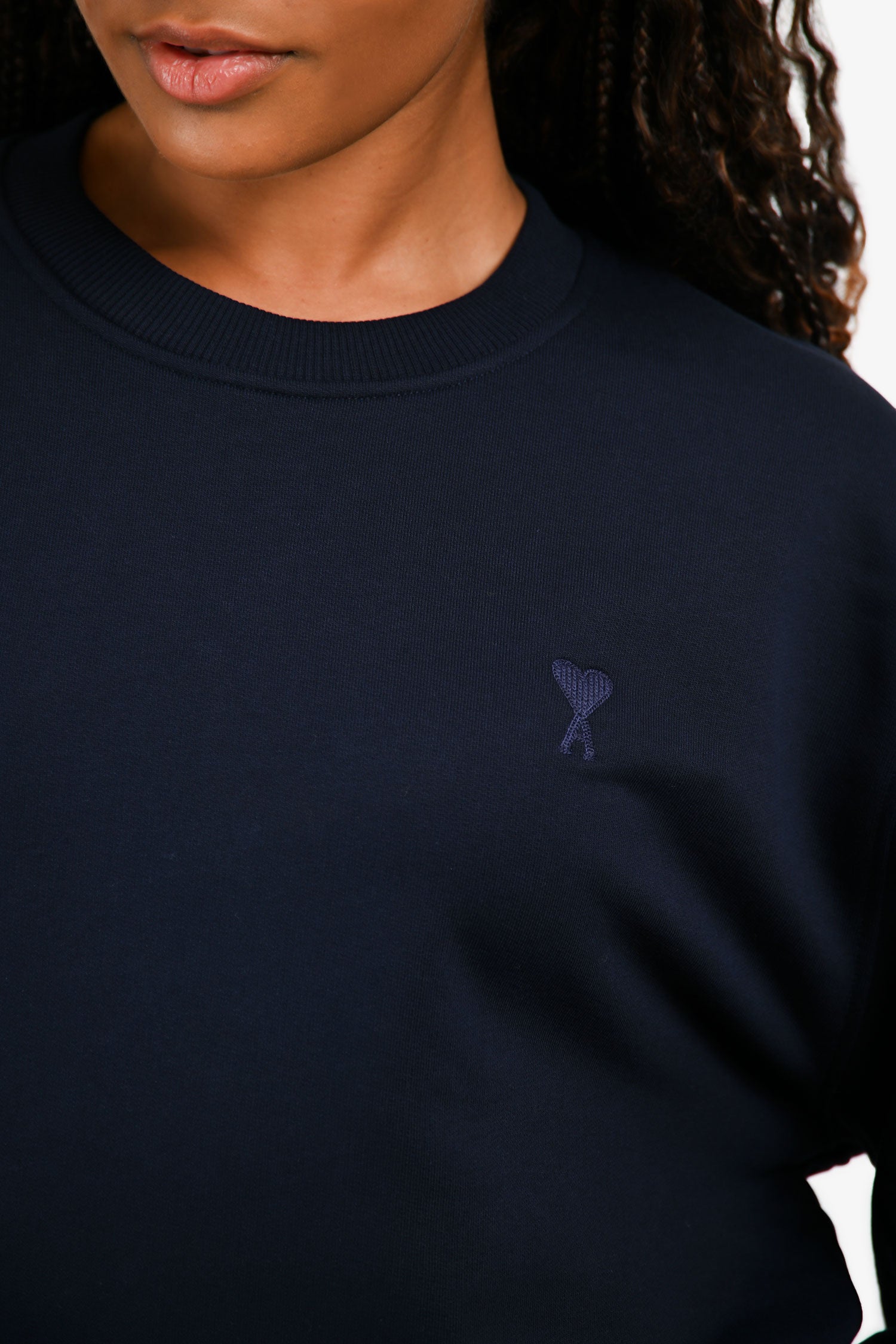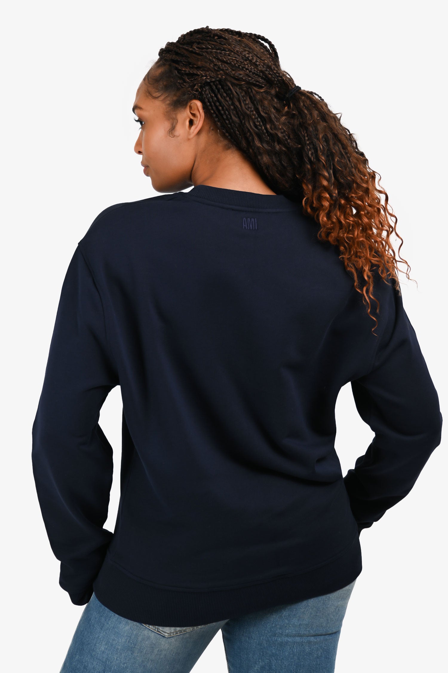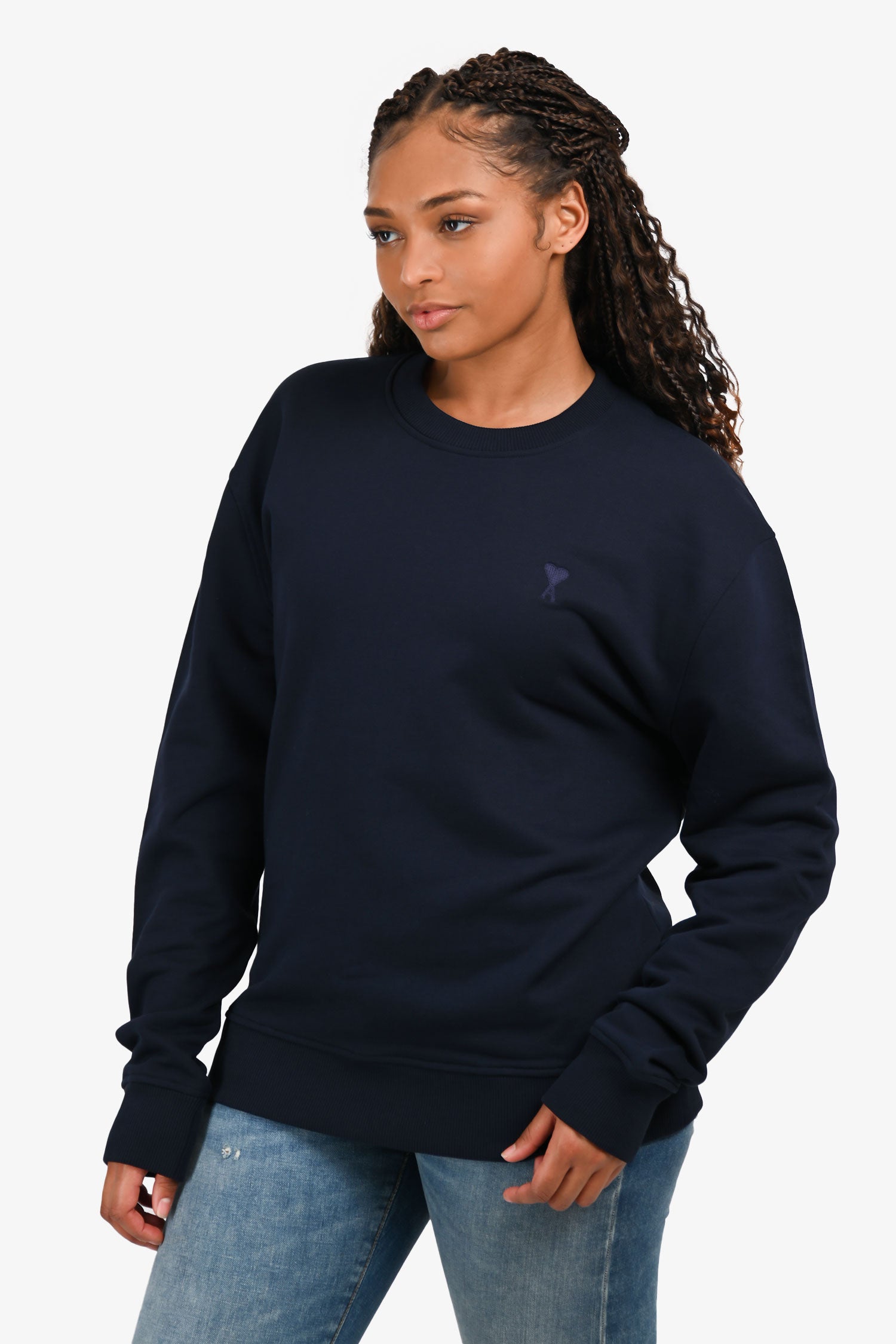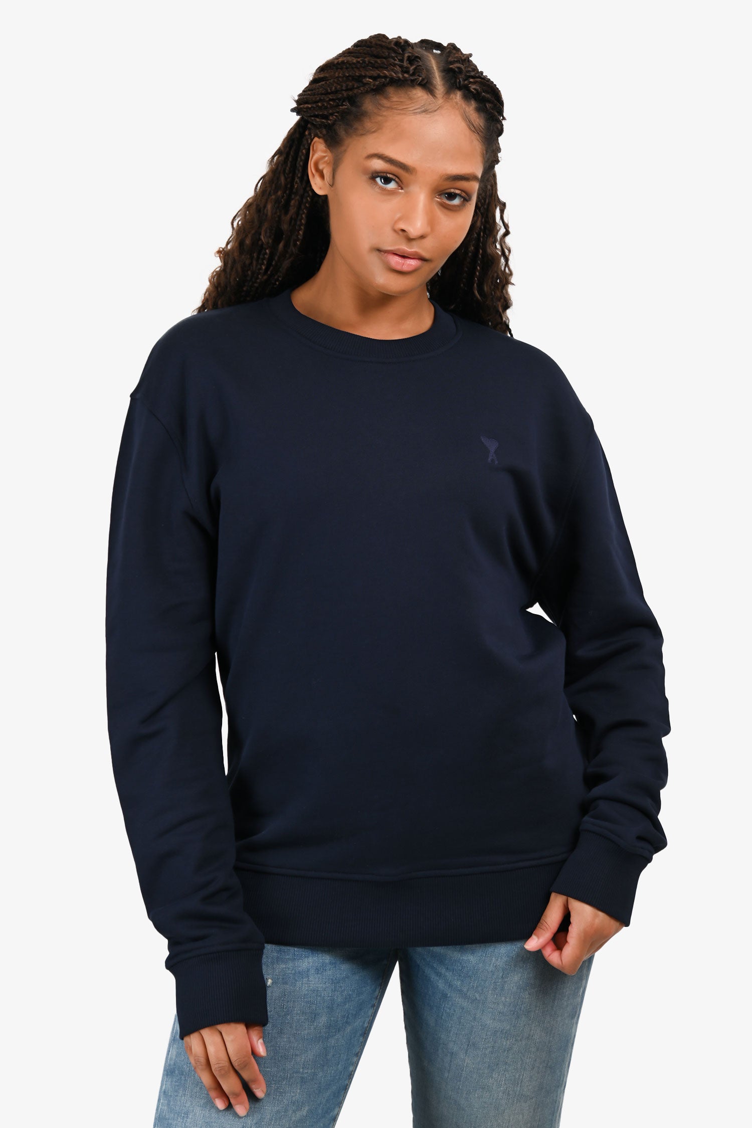 Refresh availabilityAmi Navy Blue Cotton Heart Logo Embroidered Crewneck Sweater. Slip-on. Crew neckline. Ribbed neckline, cuffs, and hem. Tonal stitching.