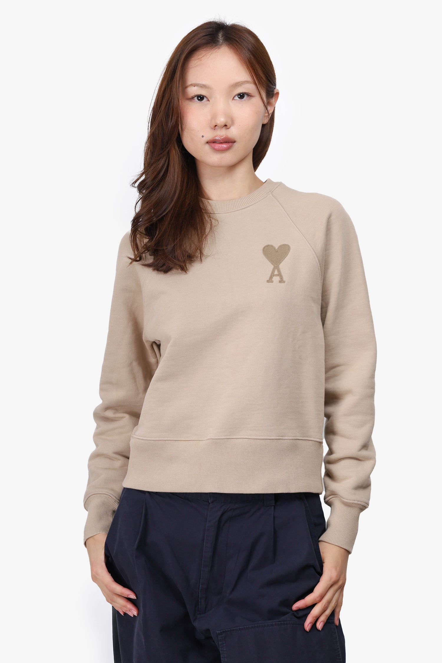 Ami Paris Beige Embossed Heart Crew Sweatshirt