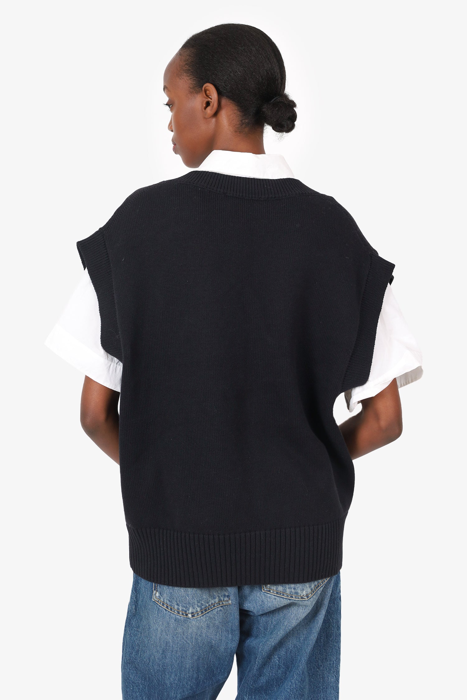 Refresh availabilityAmi Paris Black Heart Logo Knit Vest. Pull-on. V-neckline. Contrast and tonal stitching.