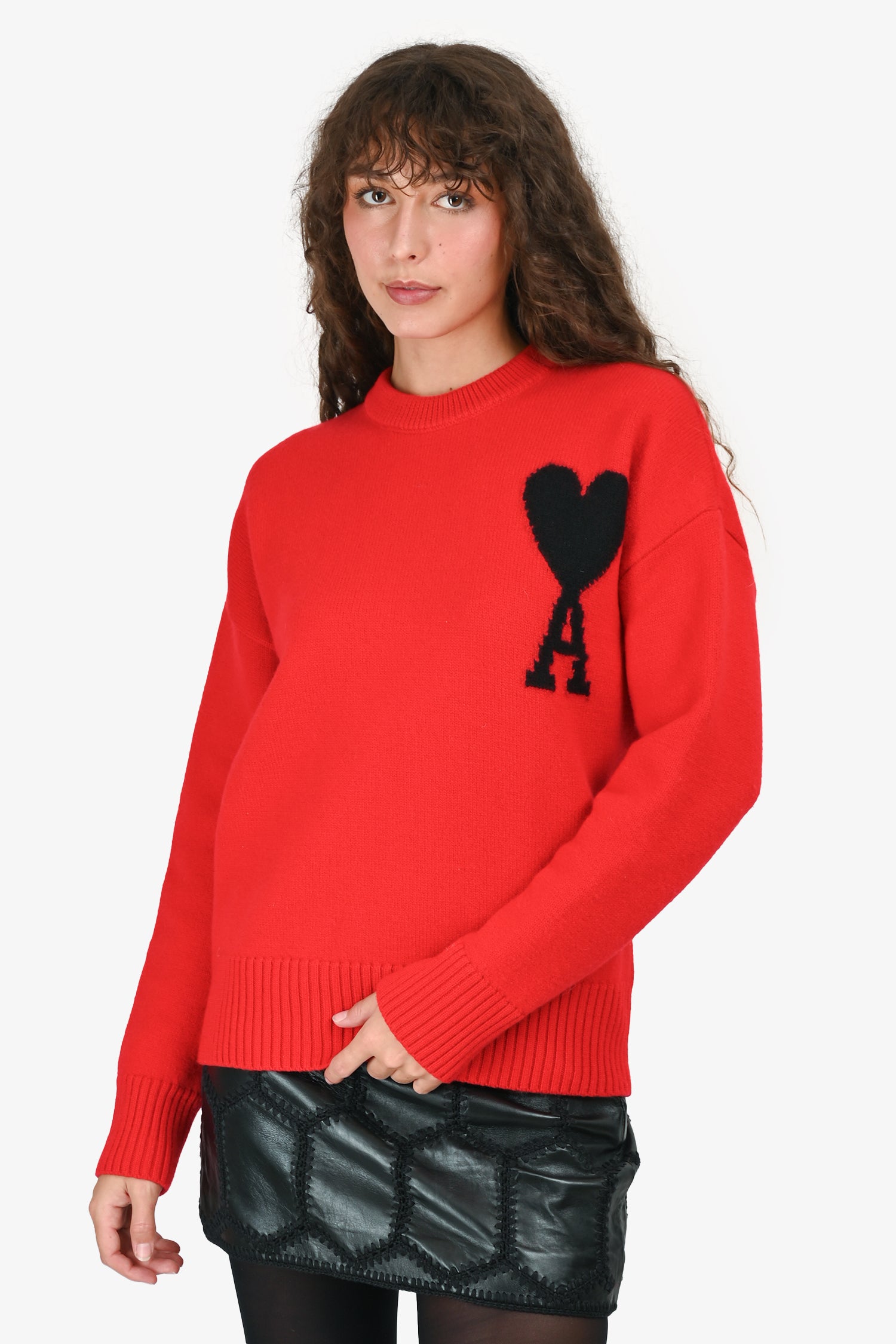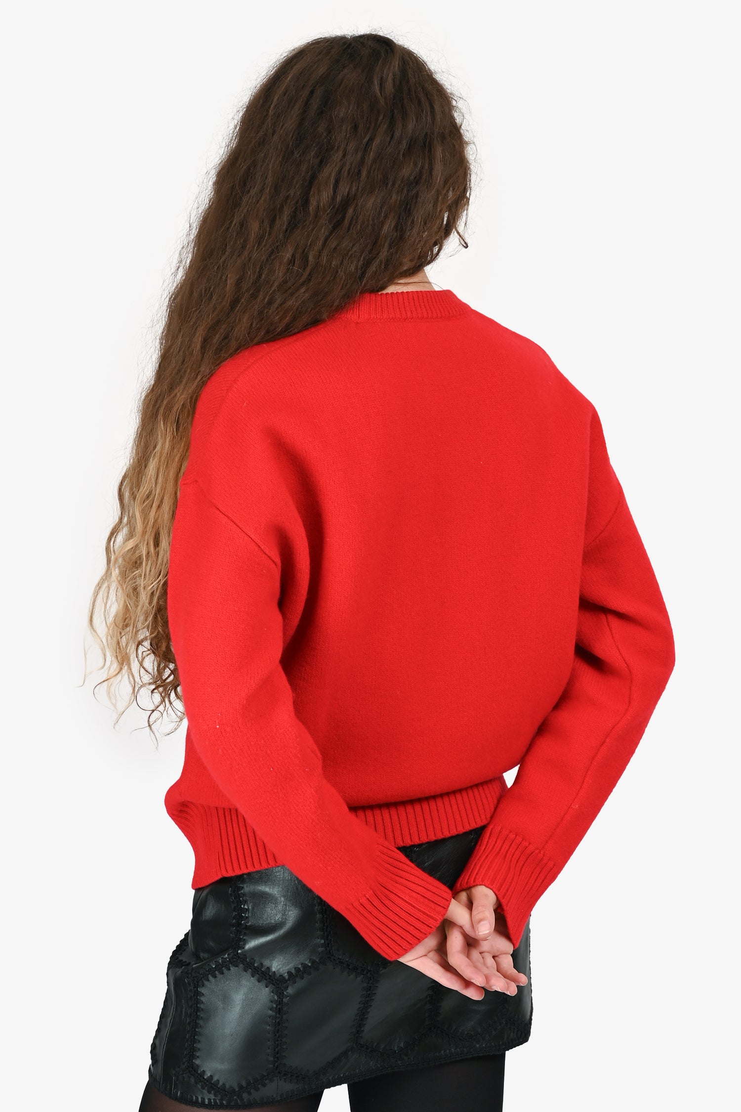 Ami Red Wool Ami de Coeur Crewneck Jumper Size XS
