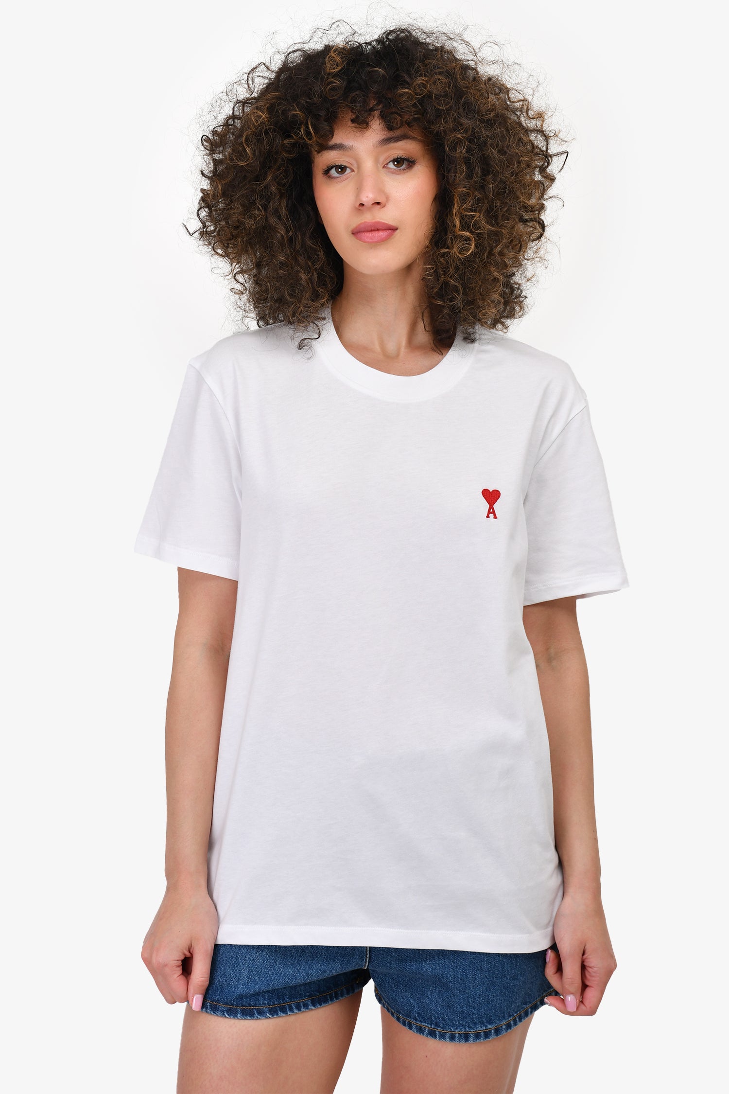 Refresh availabilityAmi White Ami de Cœur T-Shirt. Slip on. Round neckline. Tonal stitching.