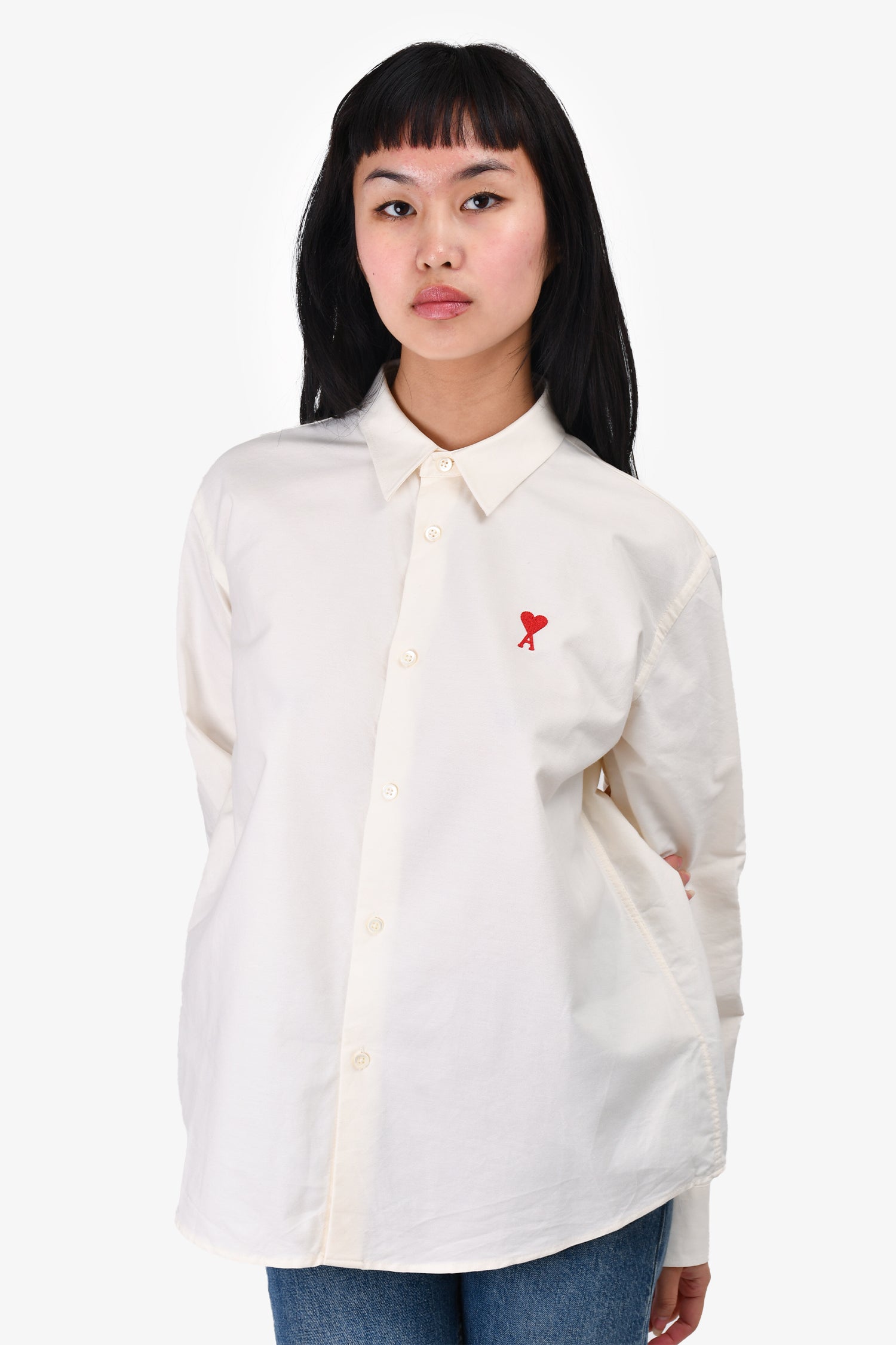 Refresh availabilityAmi White Cotton Button Down Shirt. Button closure on the cuffs. Tonal stitching.