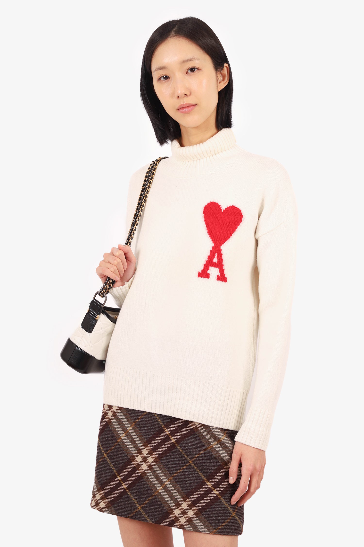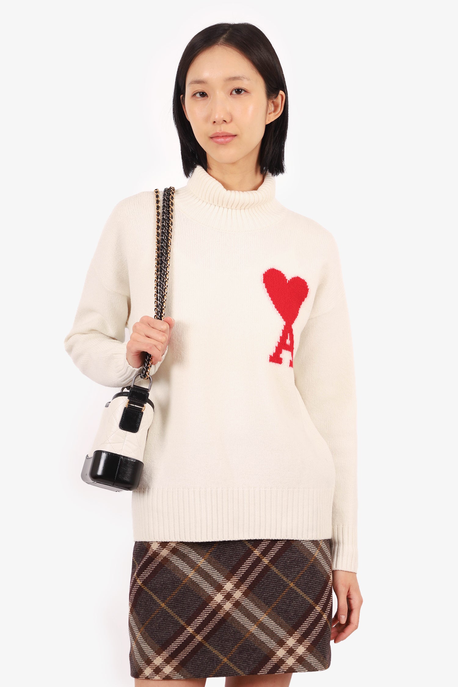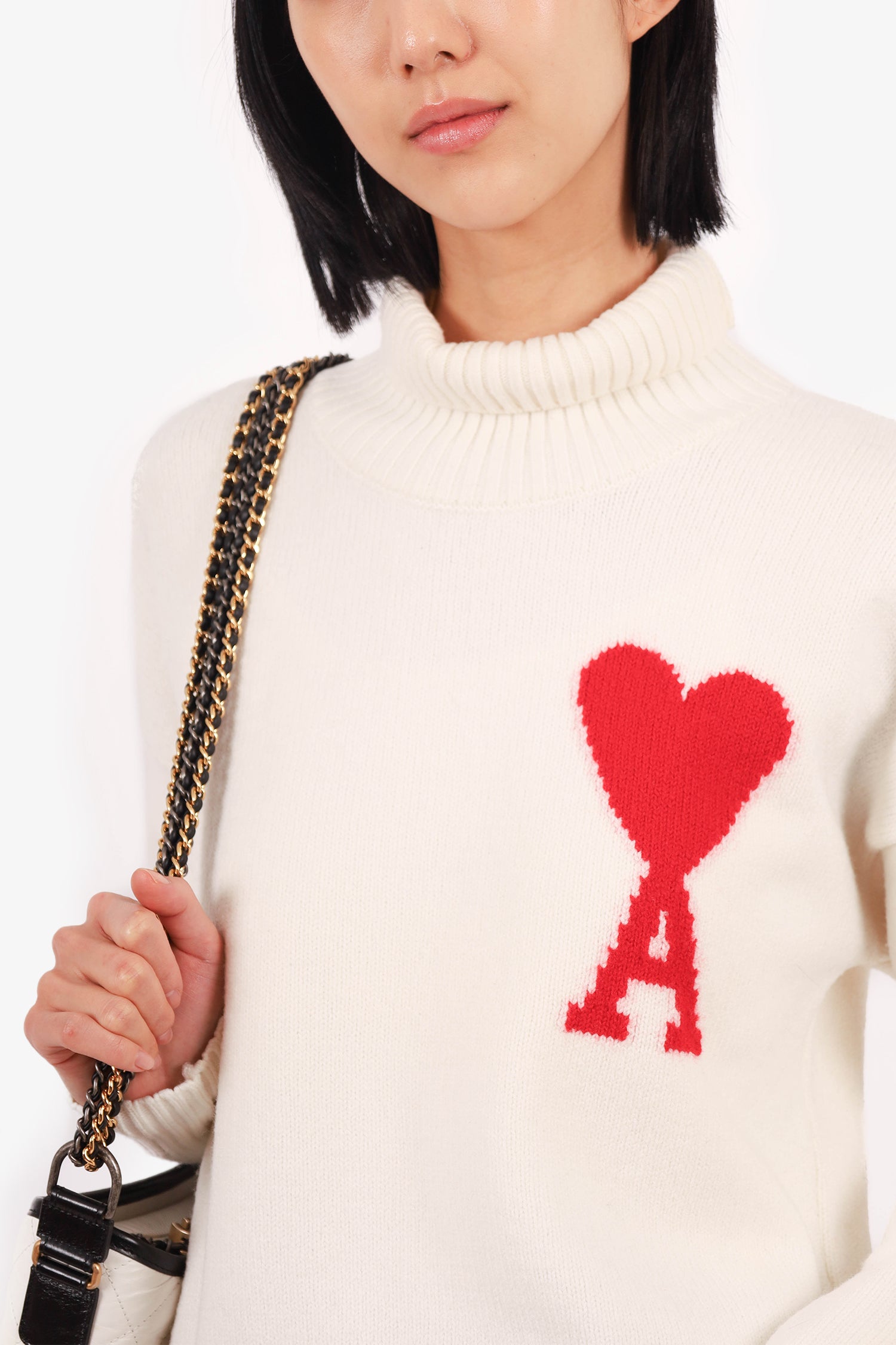 Ami Wool White Wool Logo Turtle Neck Sweater Size X-Small
