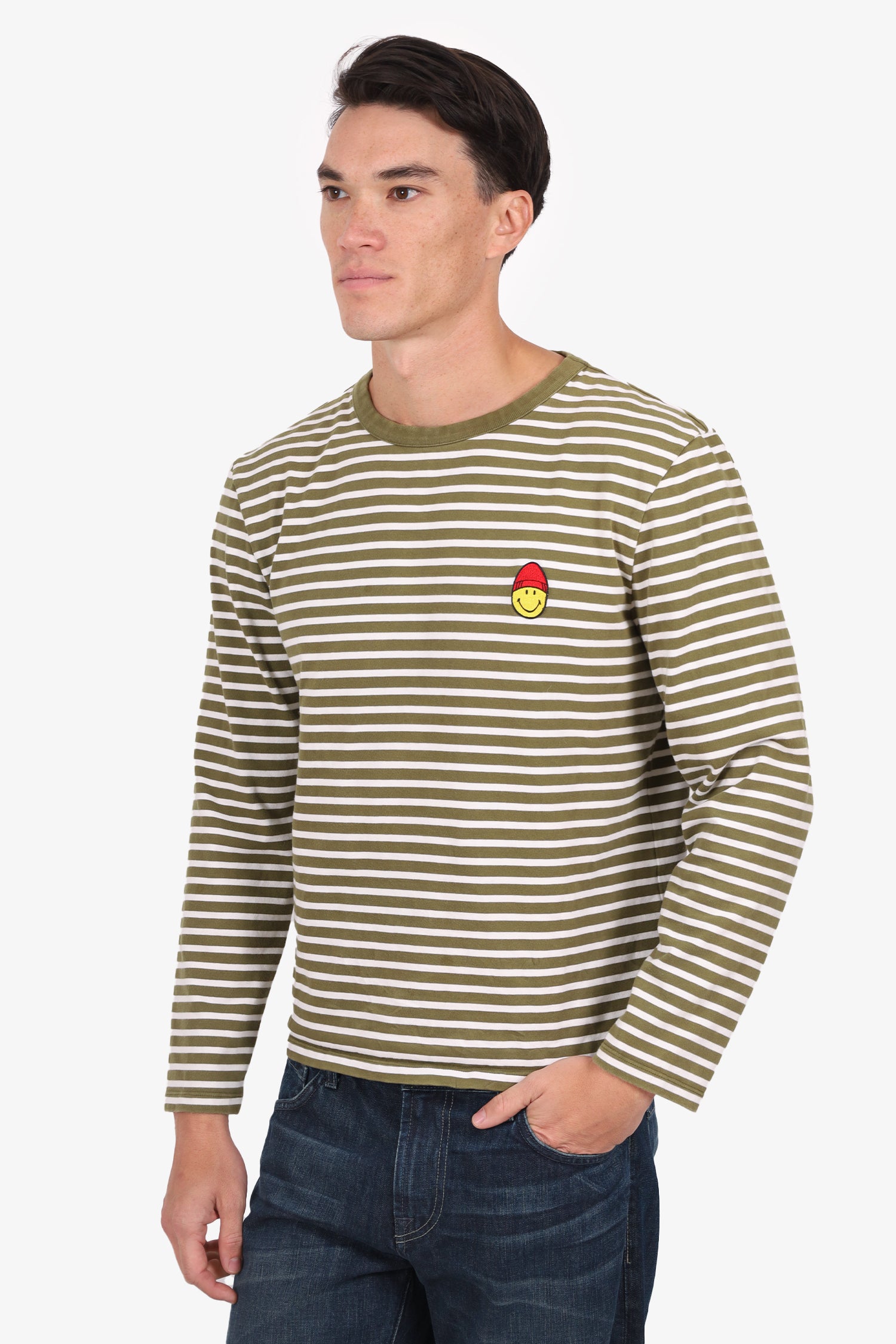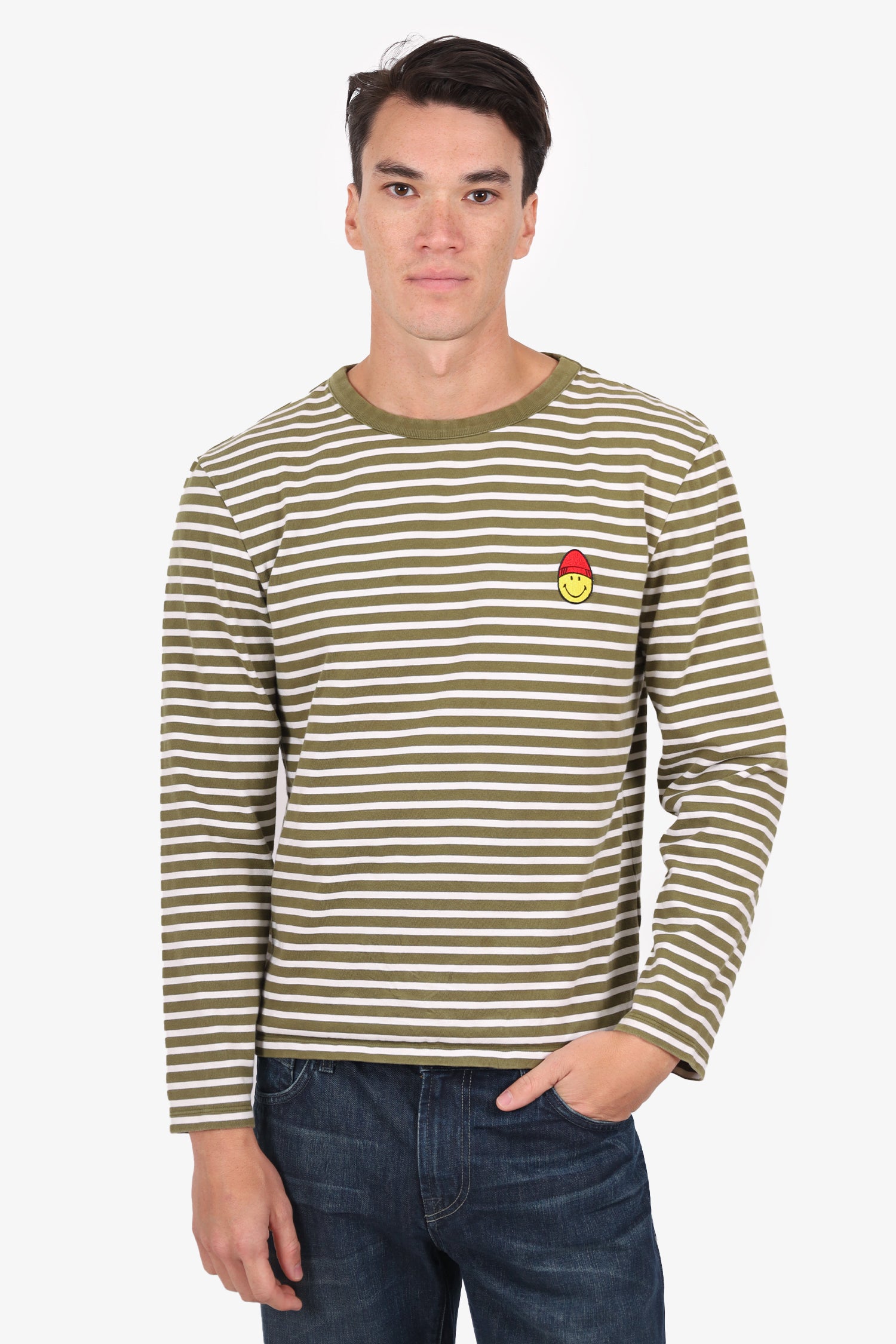 Ami X Smiley Green/White Striped Long Sleeve Smiley Face Top Size XL Mens