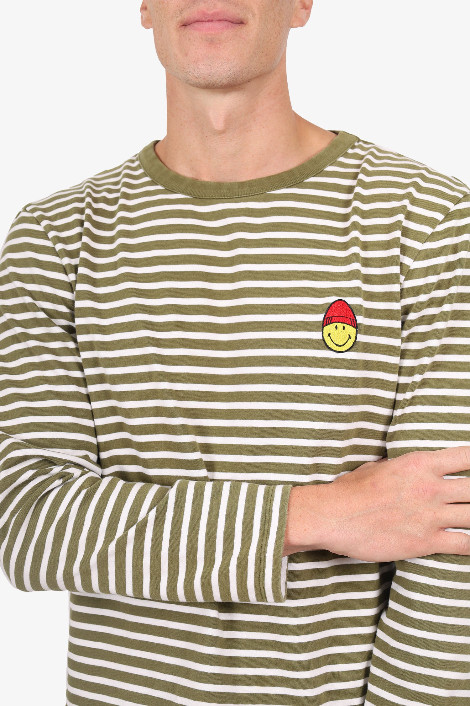 Refresh availabilityAmi X Smiley Green/White Striped Long Sleeve Smiley Face Top. Pull-on. Round neckline. Tonal stitching.