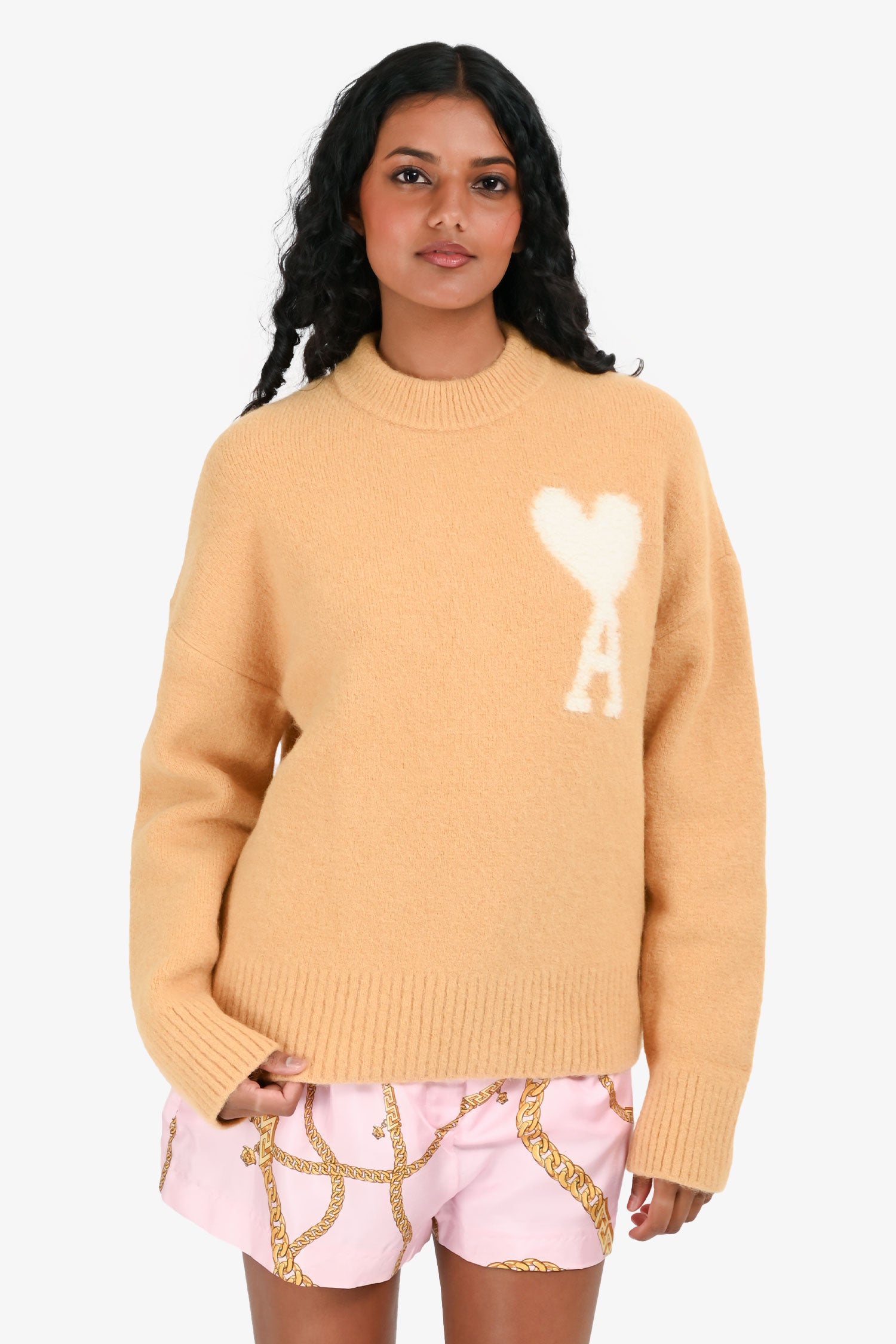 Ami Yellow Alpaca Knit White Logo Sweater Size S