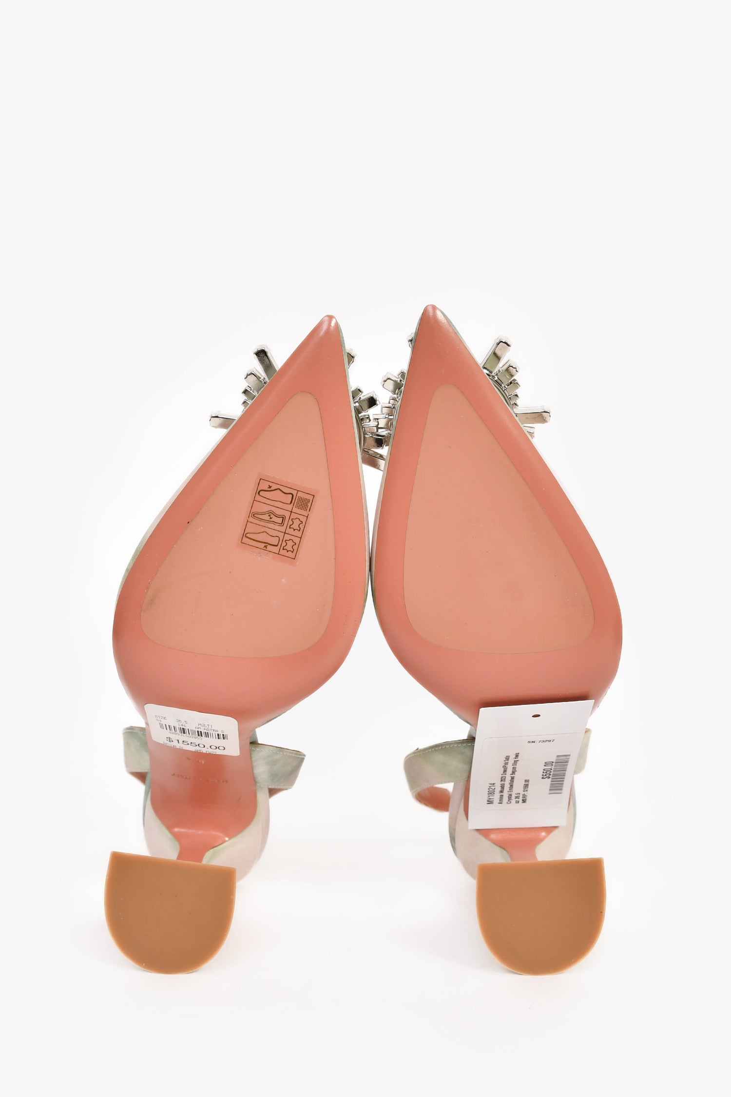 Amina Muaddi 2023 Green/Pink Satin Crystal Embellished Begum Sling Heels Size 35.5
