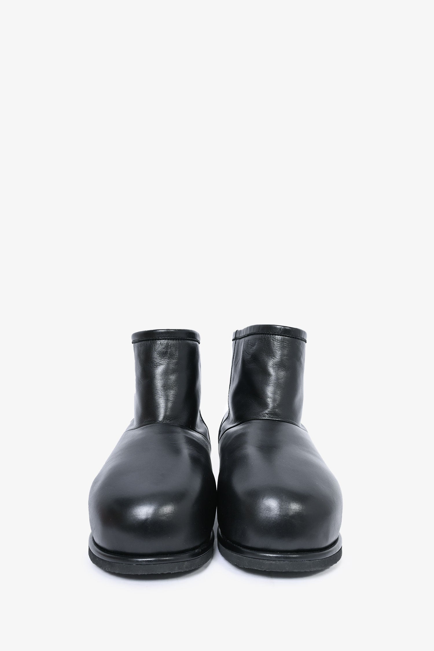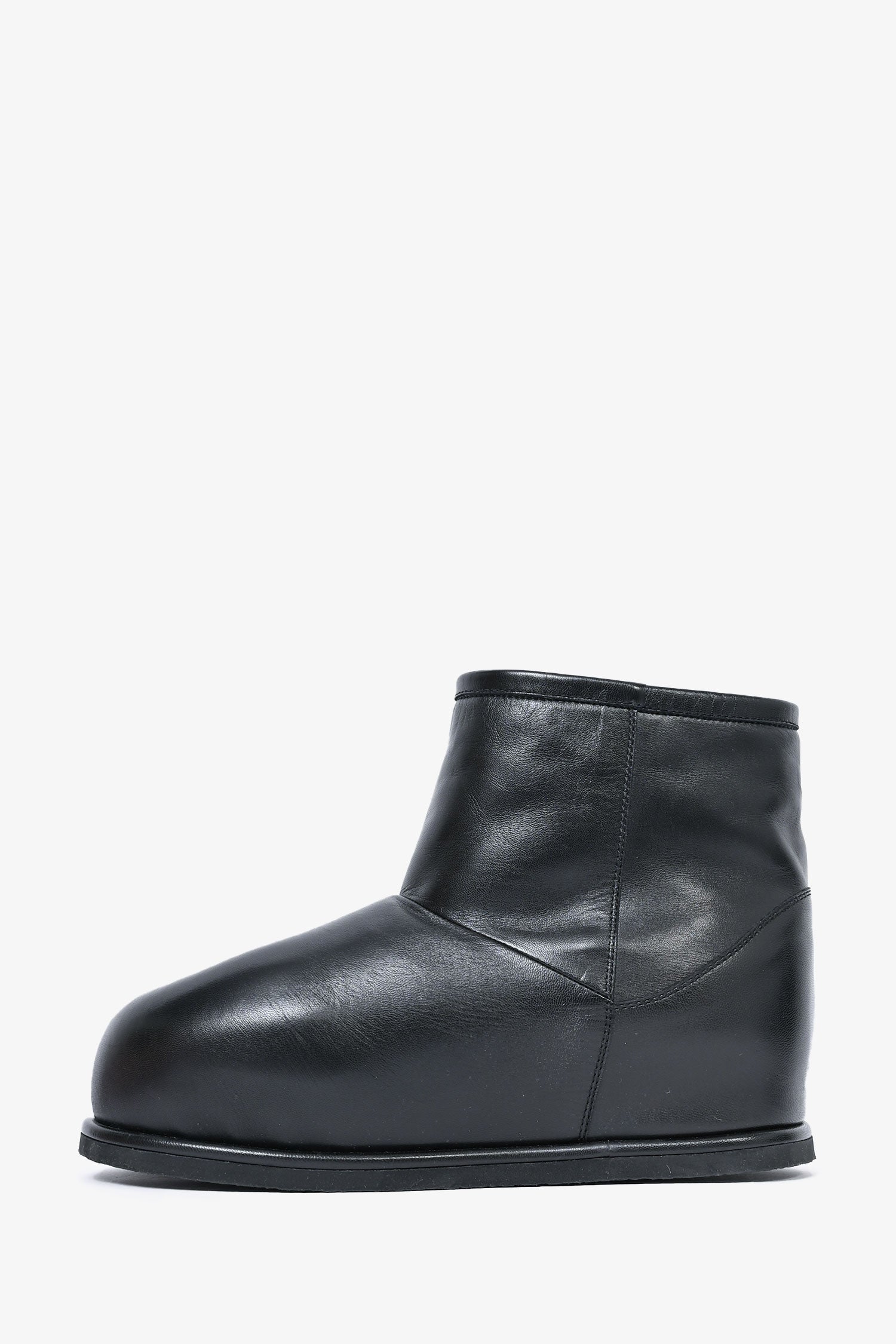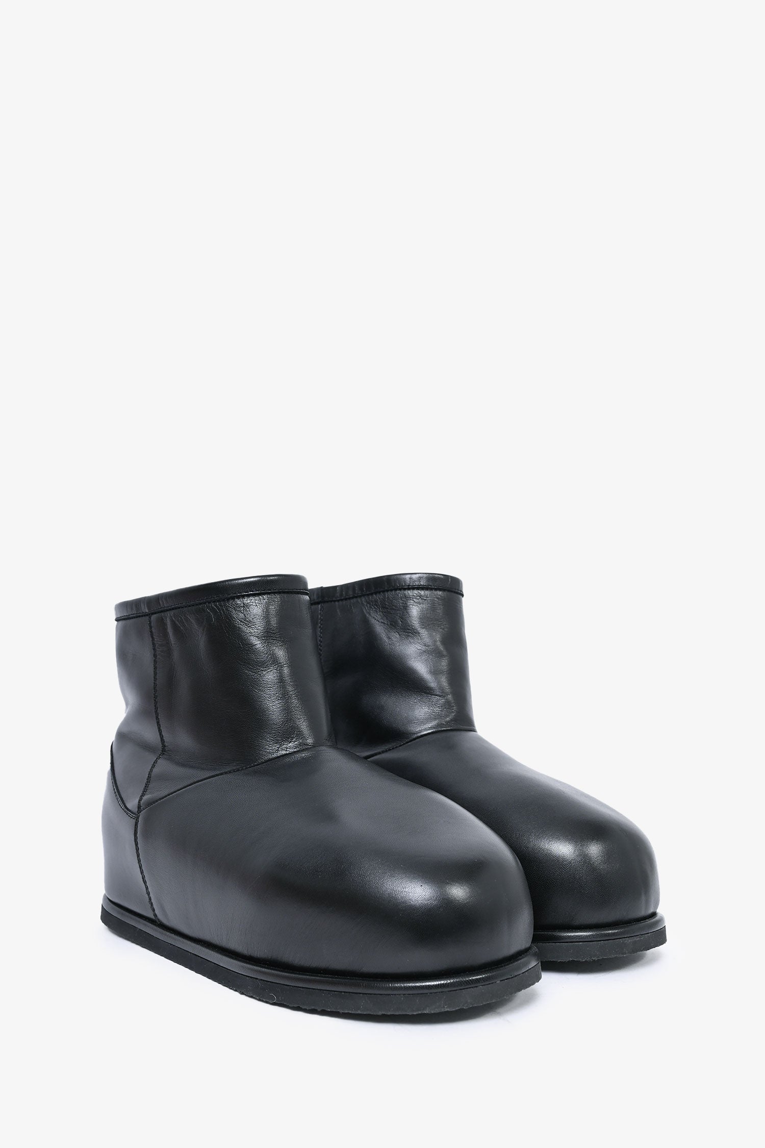 Refresh availabilityAmina Muaddi Black Leather Booties. Round toe. Sherpa lining.