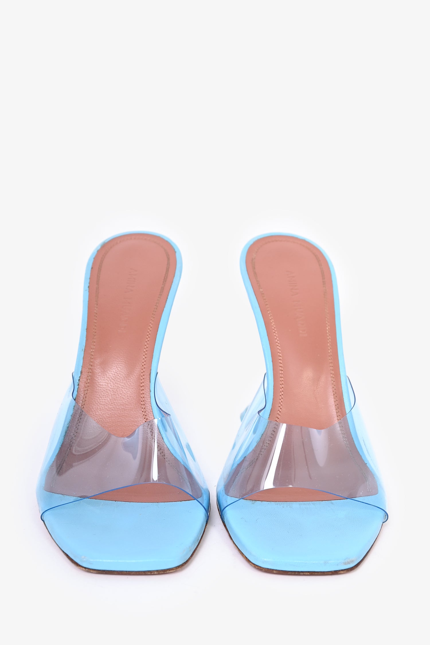 Amina Muaddi Blue Leather/PVC 'Lupita' Heeled Sandals Size 36.5