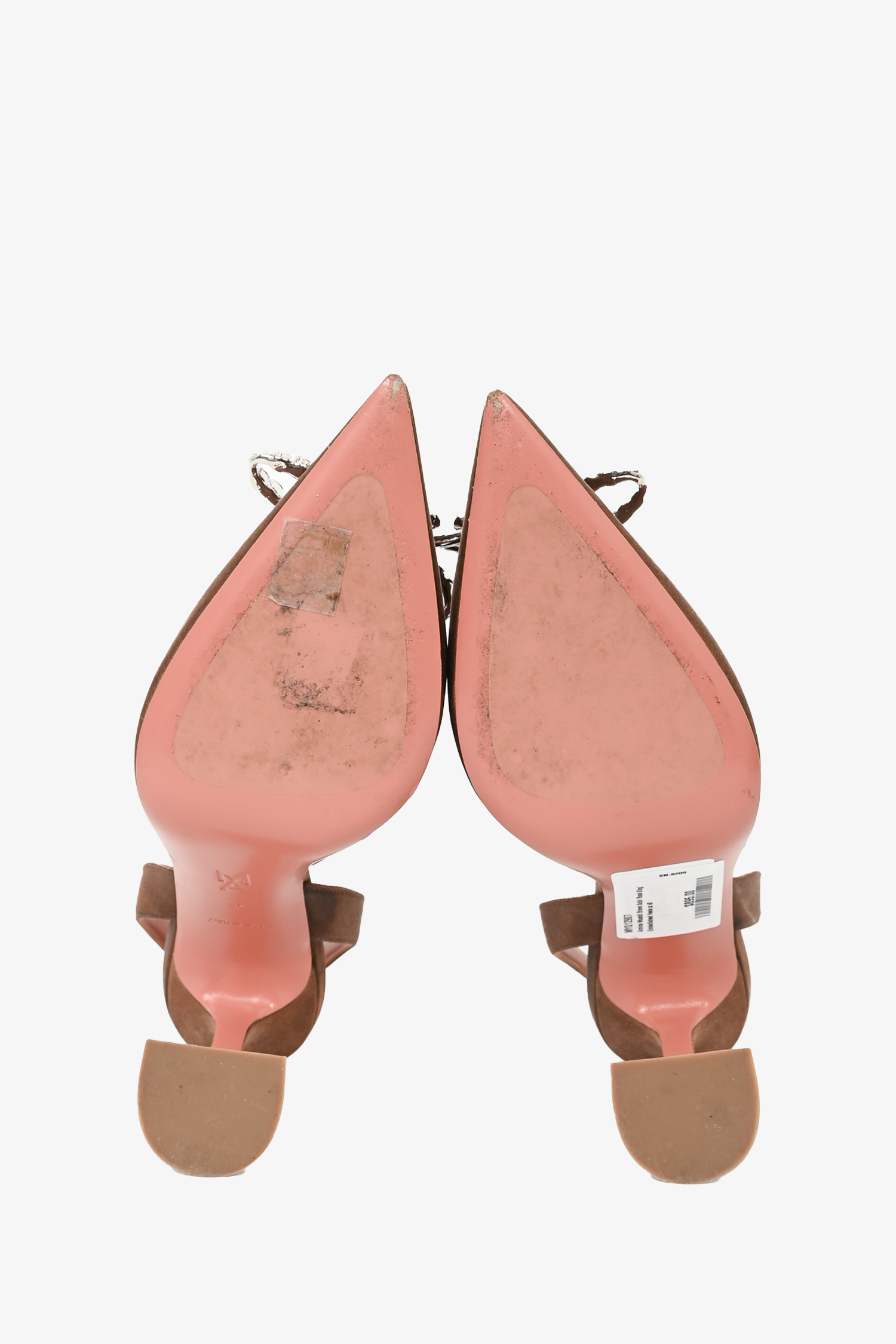 Amina Muaddi Brown Satin 'Rosie Sling' Embellished Heels Size 40