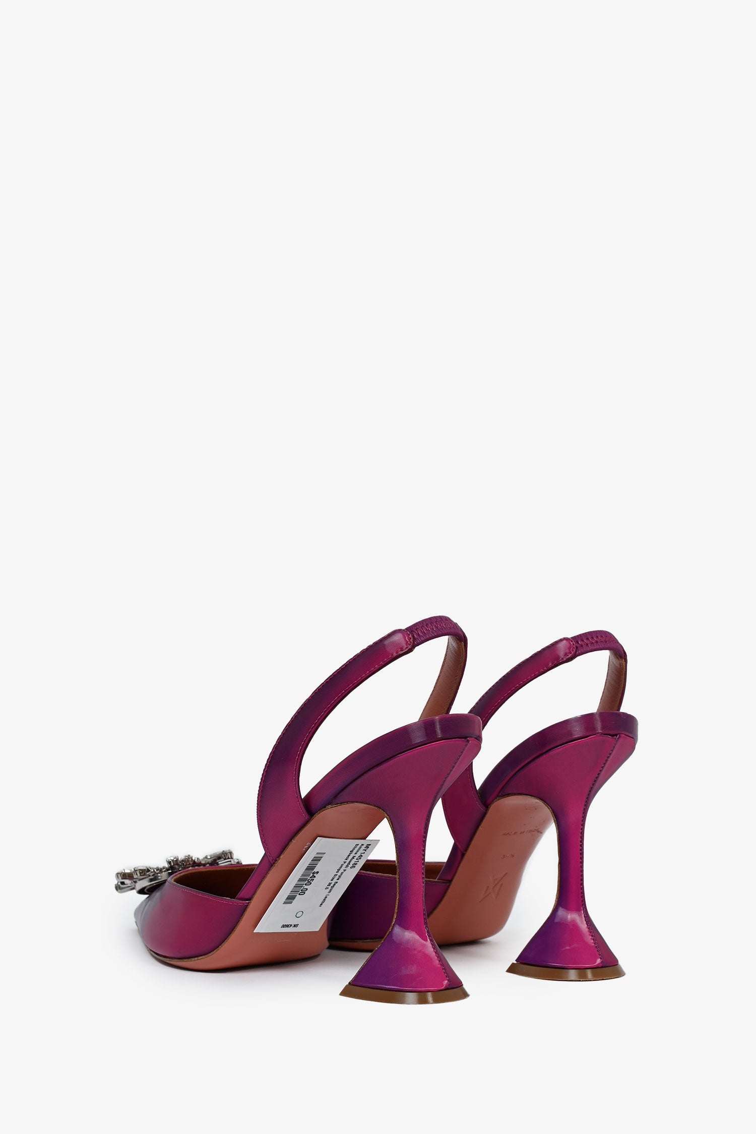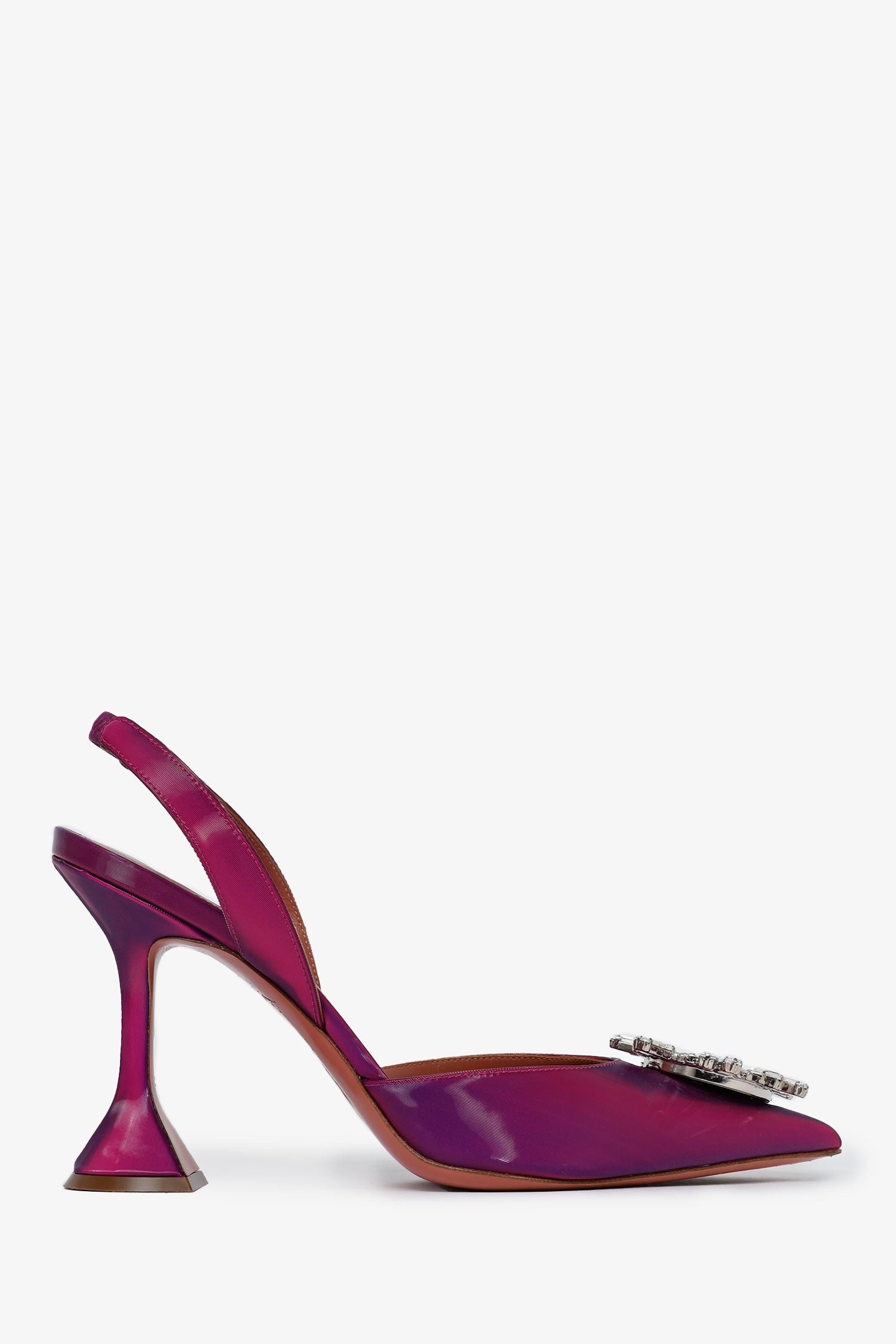 Refresh availabilityAmina Muaddi Purple Begum Leather Slingback Pumps. Point toe. Slip-on. Silver-tone hardware. Tonal stitching.