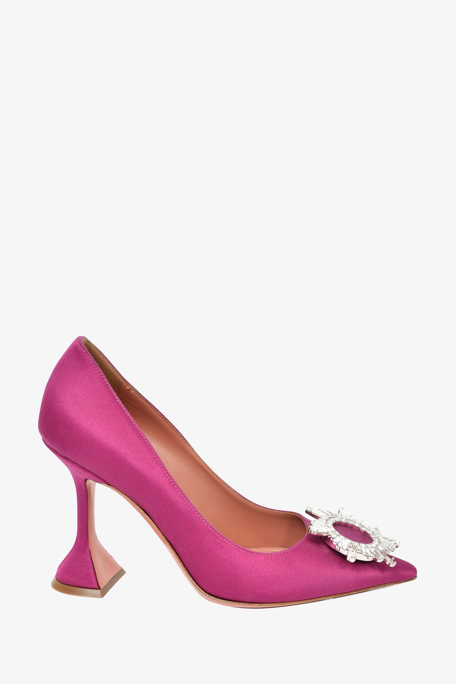Refresh availabilityAmina Muaddi Purple Satin 'Begum' Heels. Slip-on. Pointed toe. Tonal stitching.