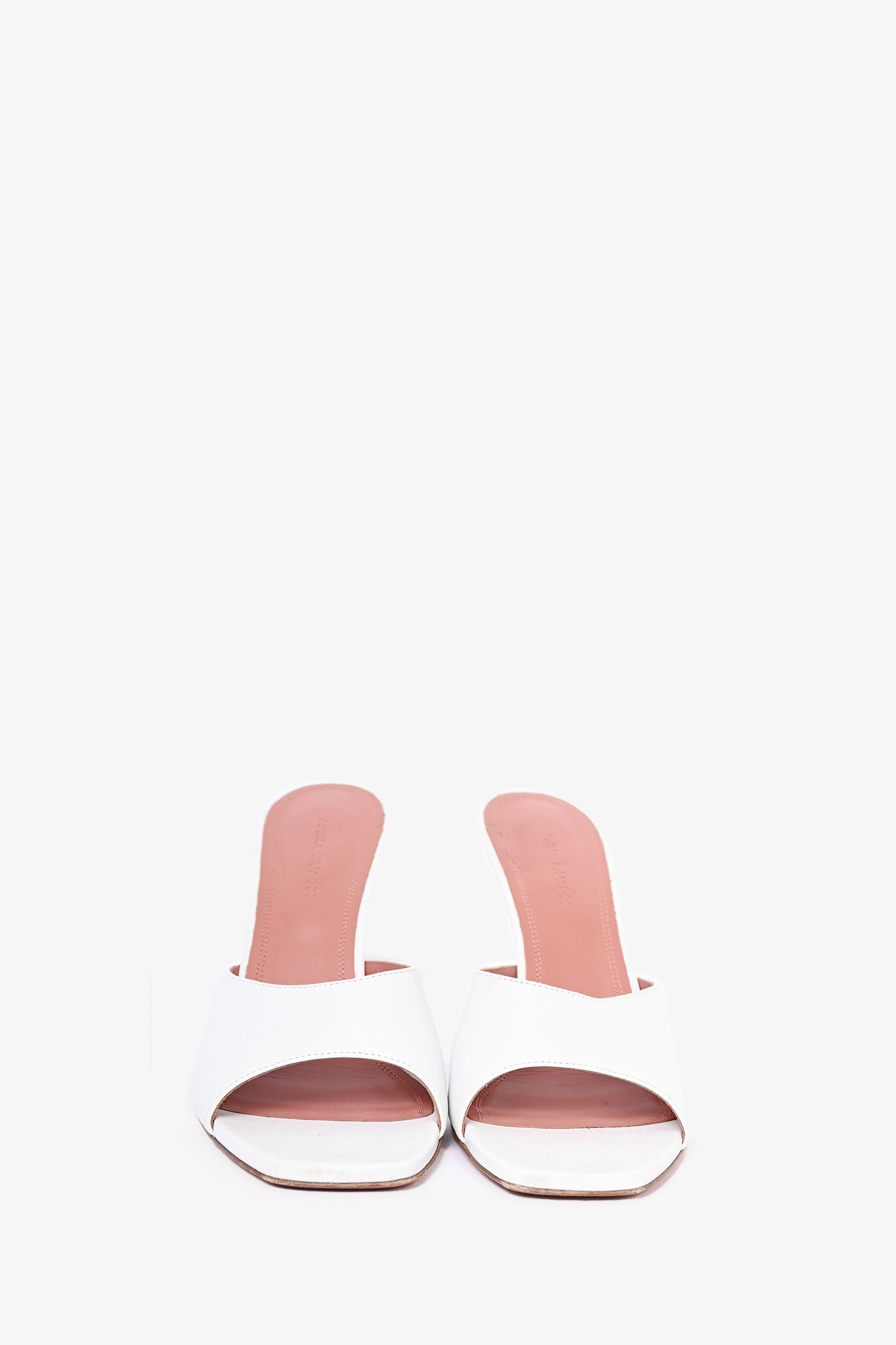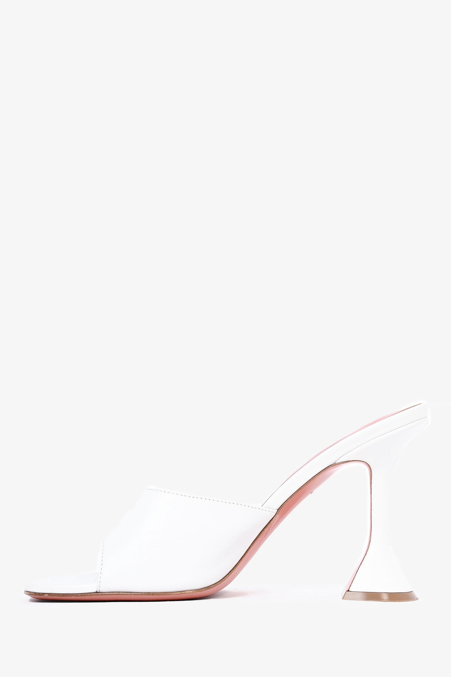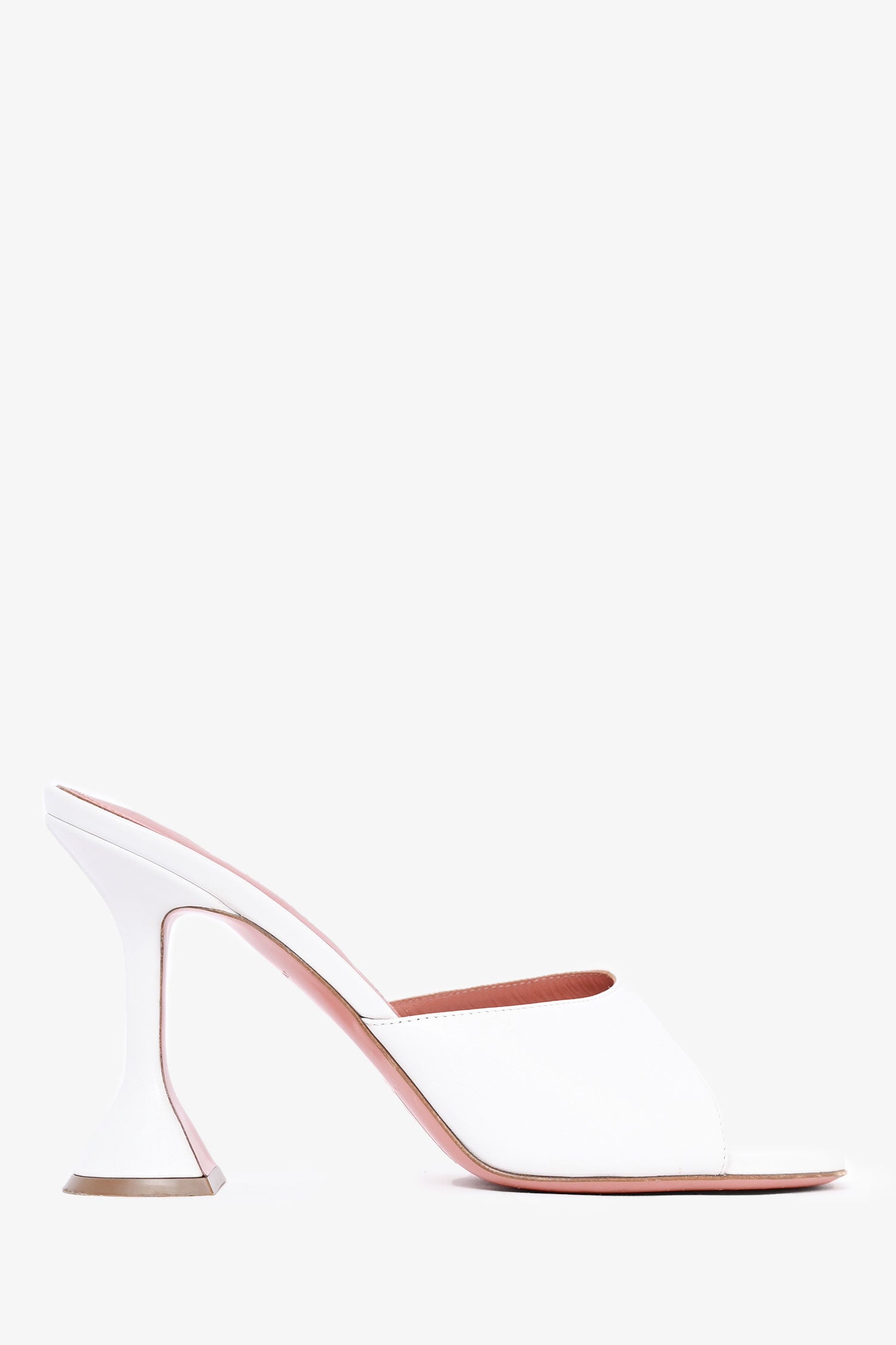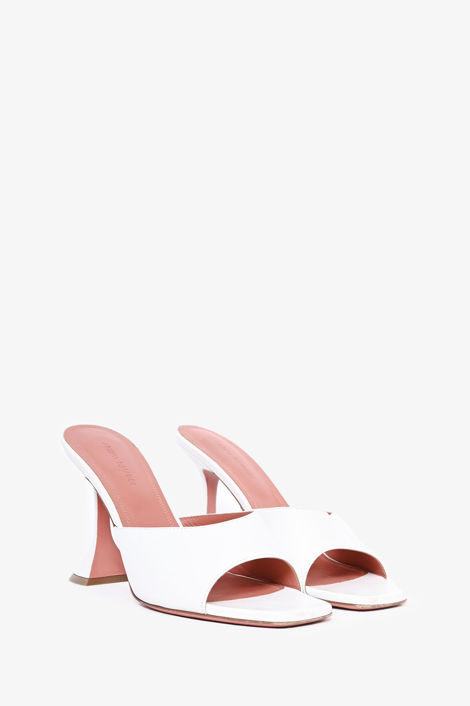 Refresh availabilityAmina Muaddi White Leather 'Lupita' Heels. Mule. Tonal stitching.
