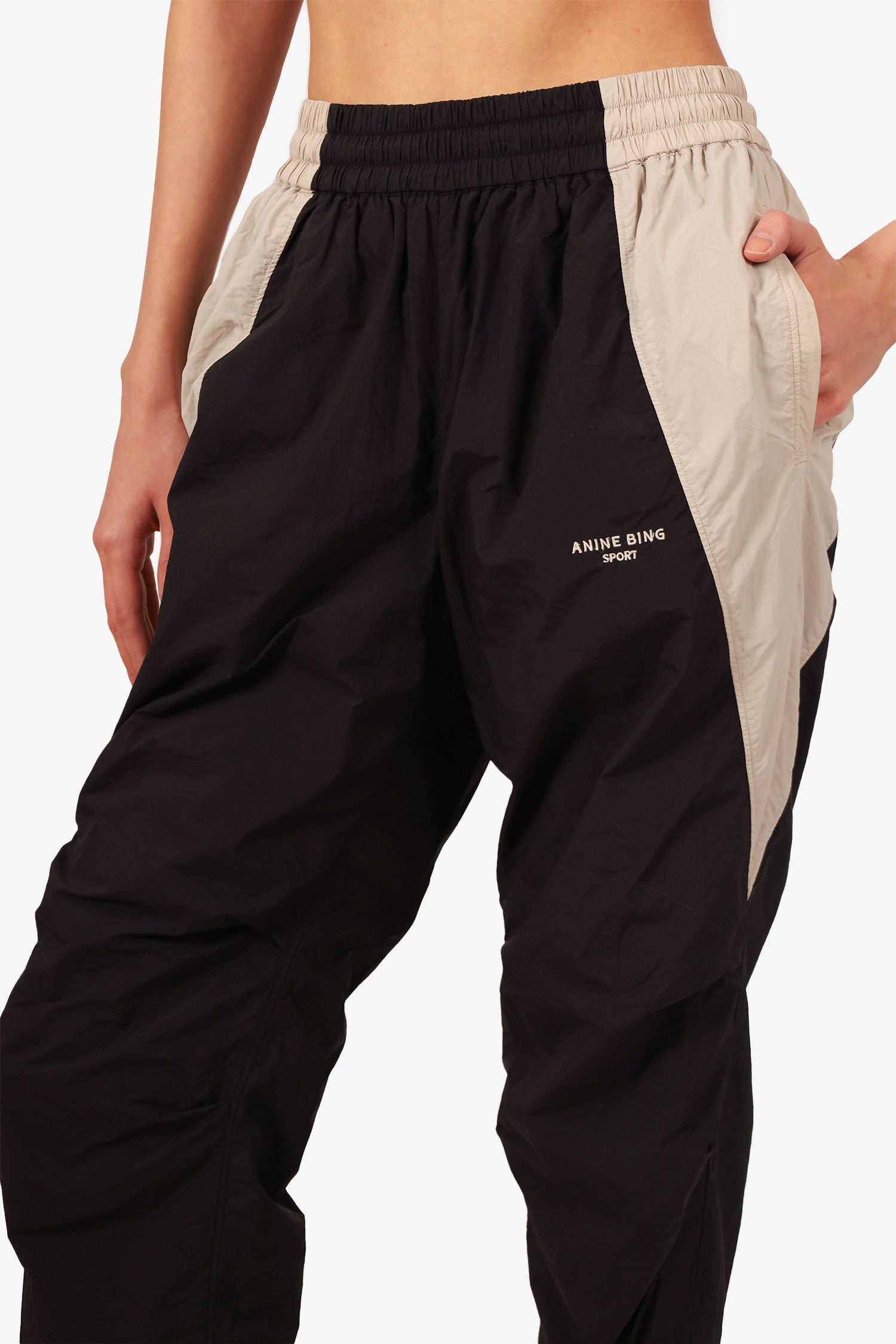 Refresh availabilityAnine Bing Black/Cream Nylon Joggers. Pull-no. Elasticated waist band. Side slip pockets. Tonal stitching.