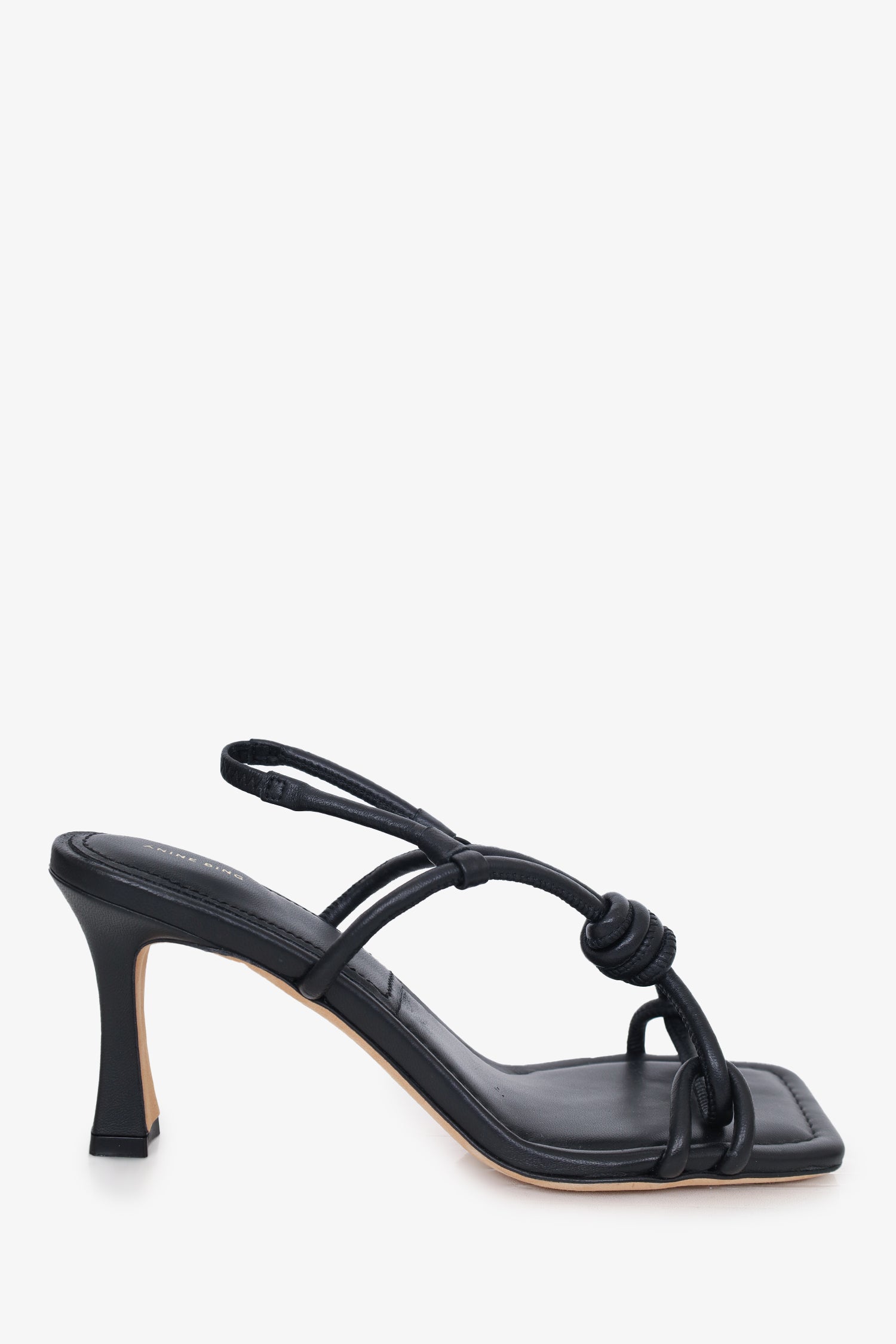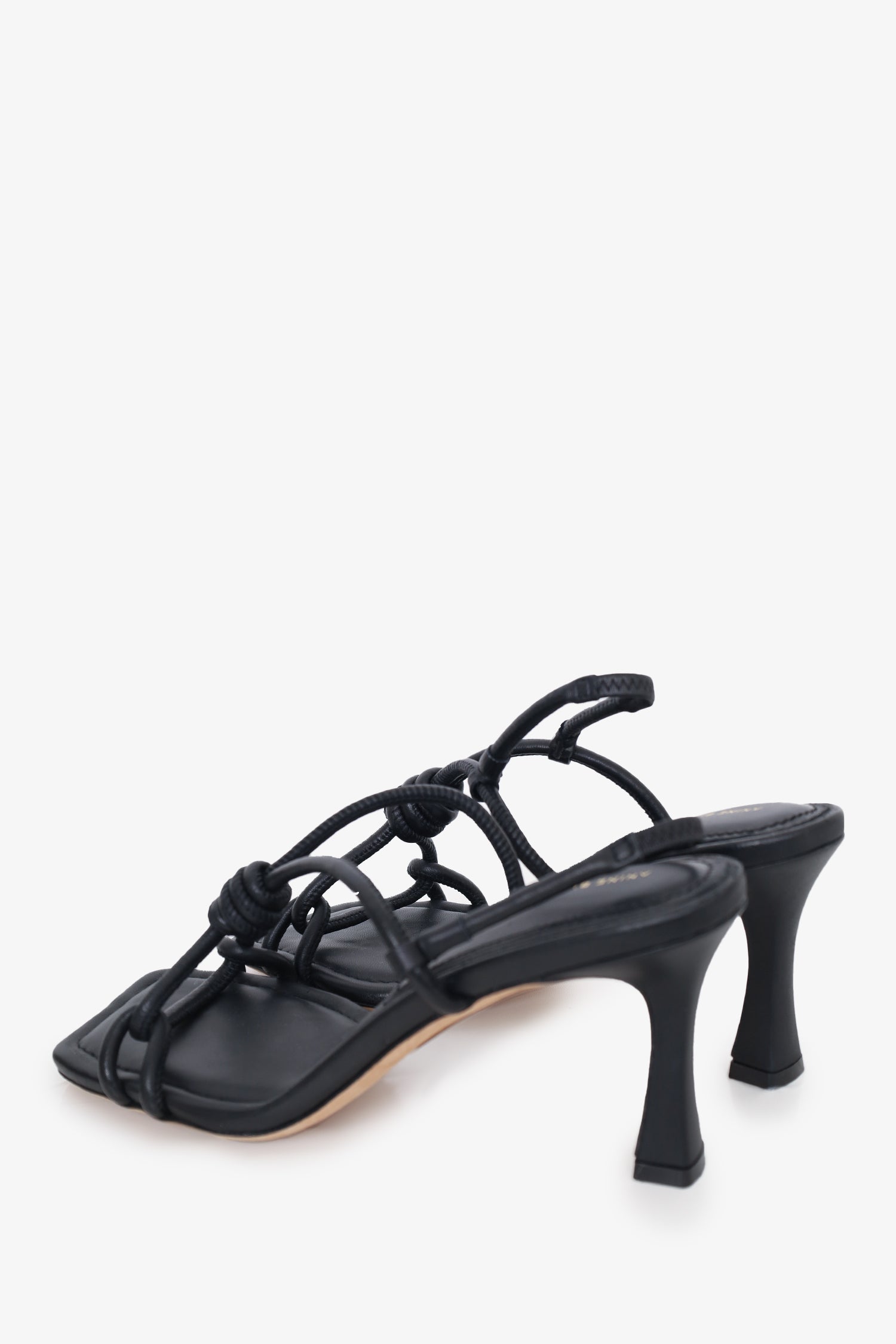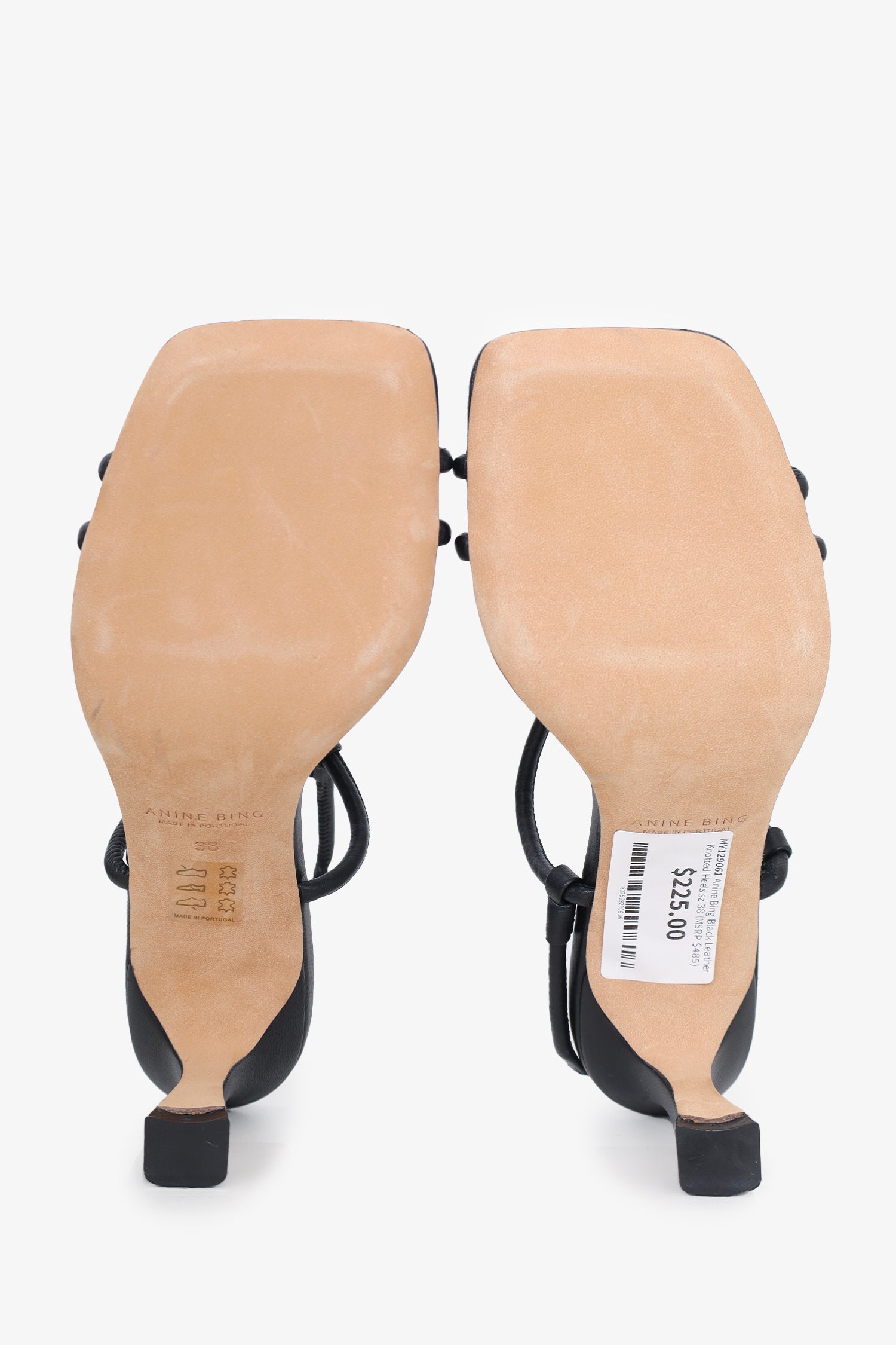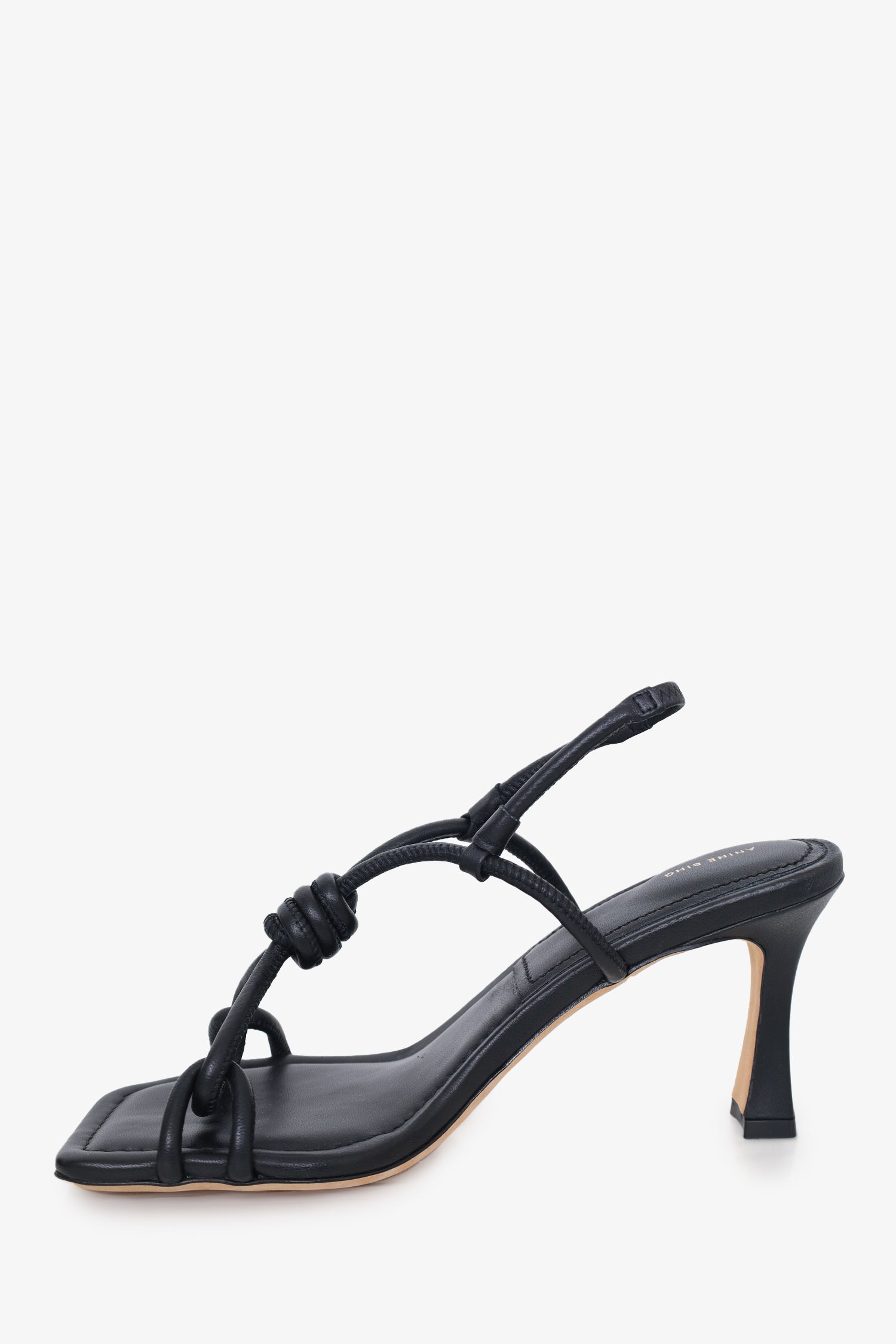 Refresh availabilityAnine Bing Black Leather Knotted Heels. Square toe. Elasticated back strap. Tonal stitching.