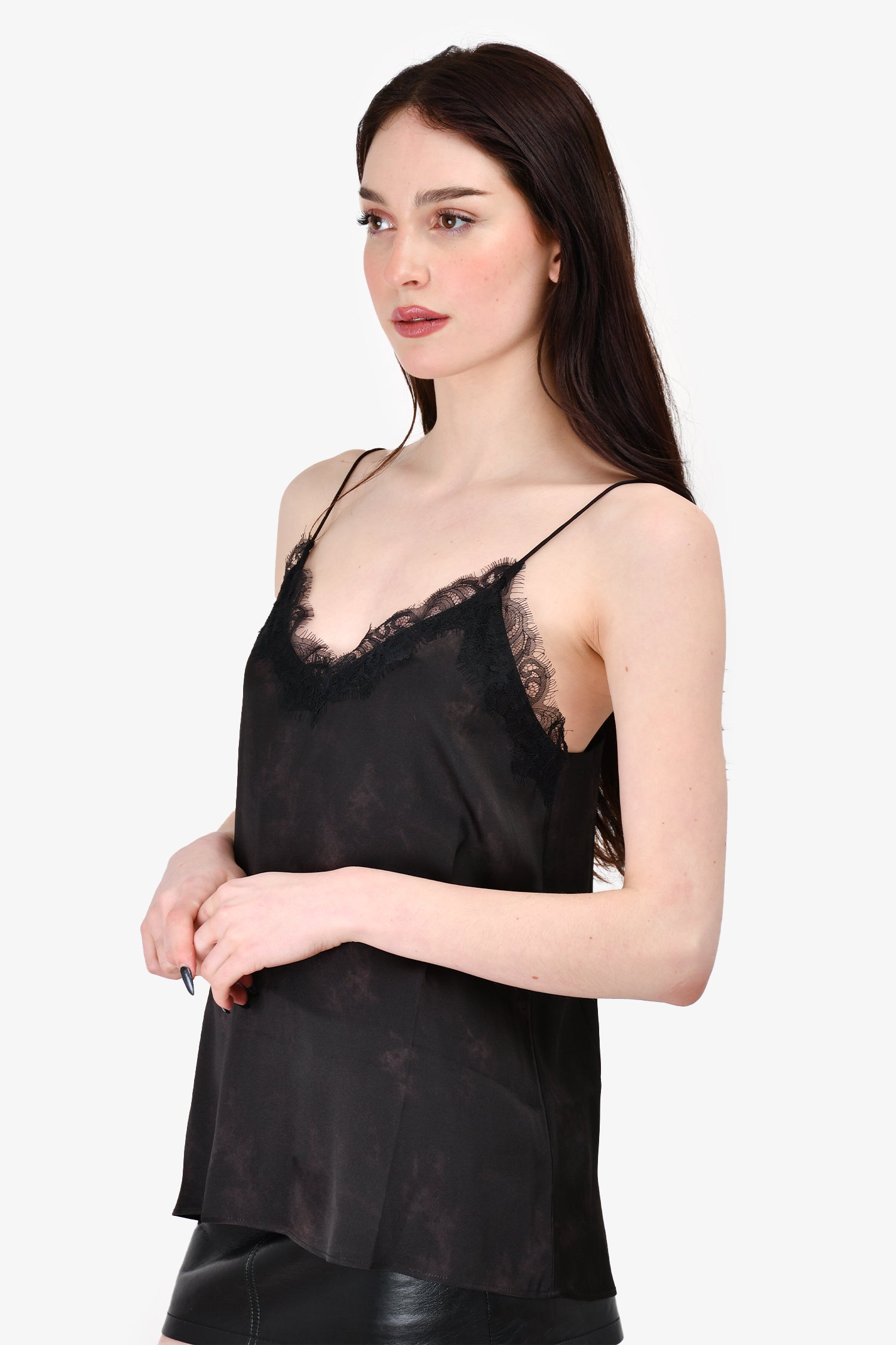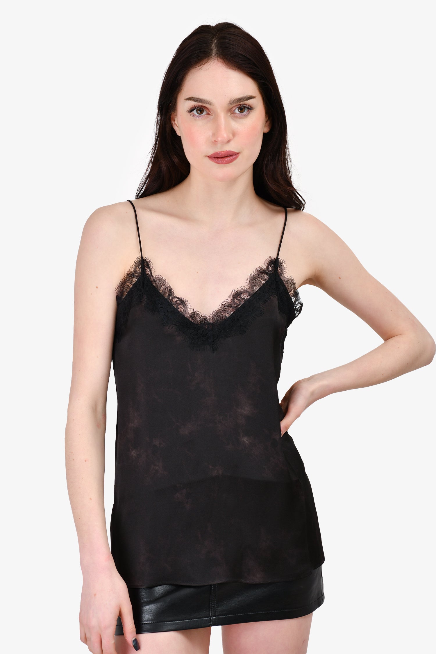 Refresh availabilityAnine Bing Black Patterned Silk Sleeveless Top. Pull-on. Tonal stitching.