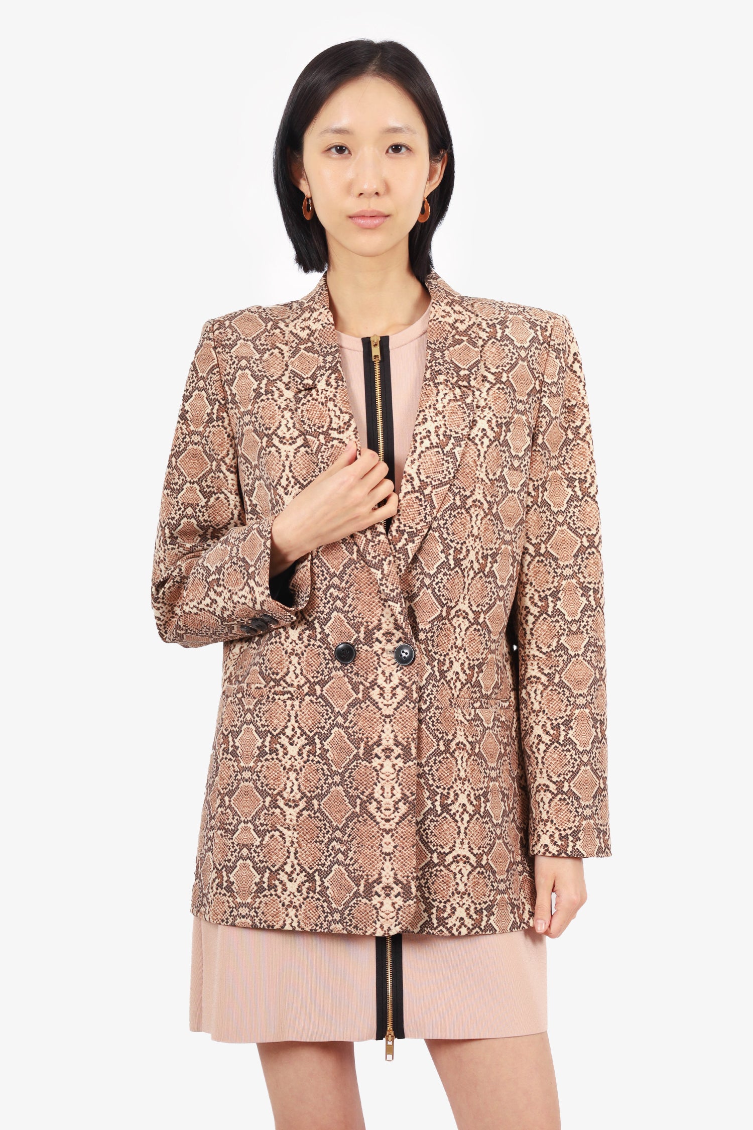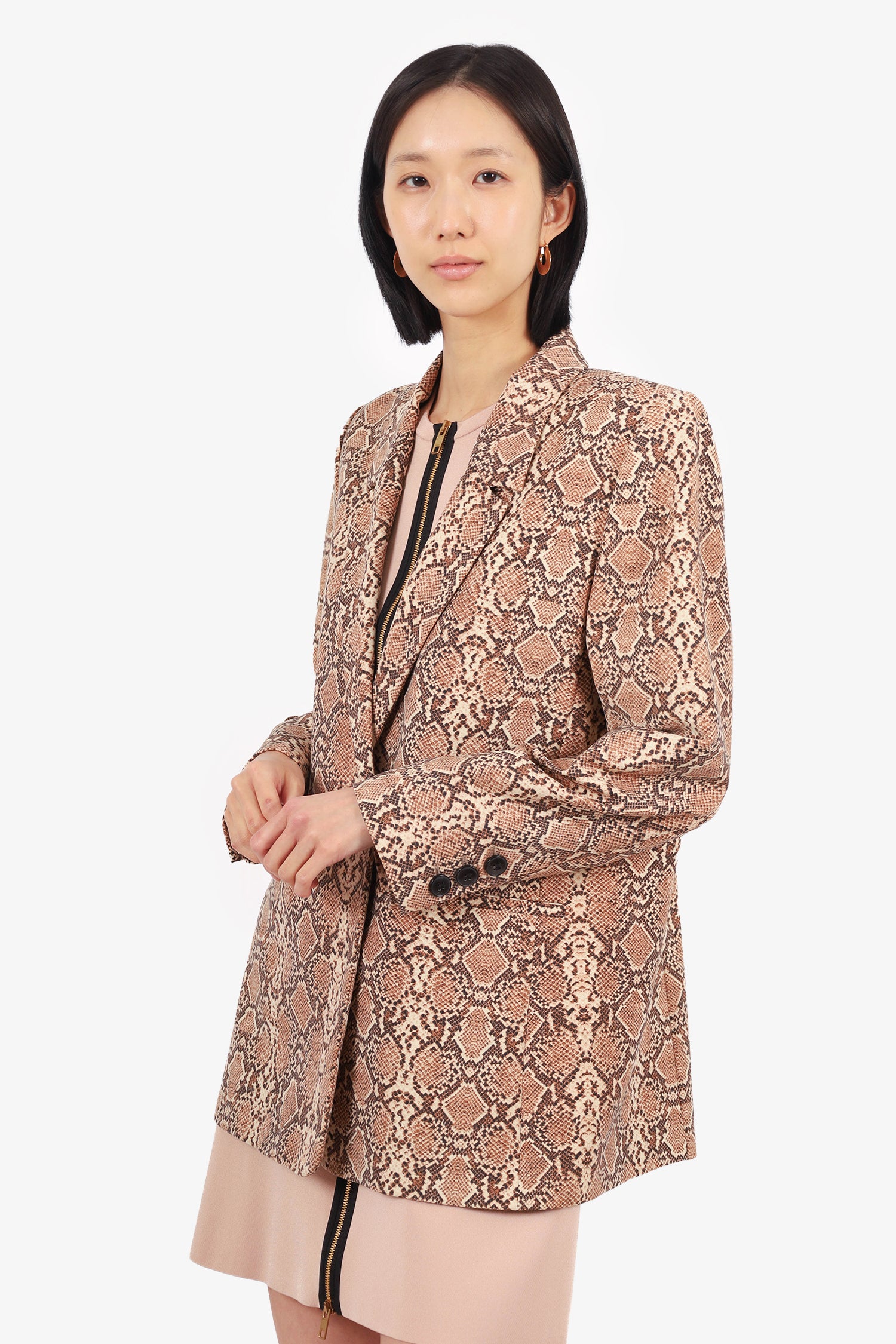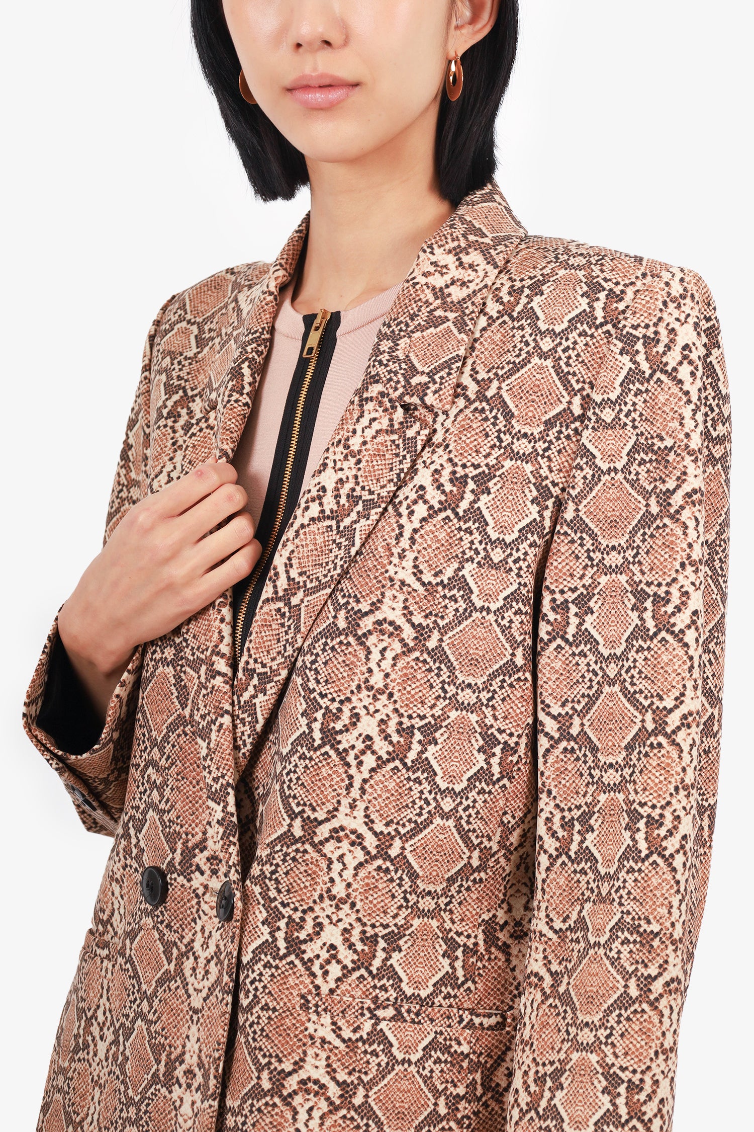Refresh availabilityAnine Bing Brown Snake Print Blazer. Front button-up closure. Notch lapel. Front slip pockets. Button detail on sleeve cuffs. Lined. Tonal stitching.