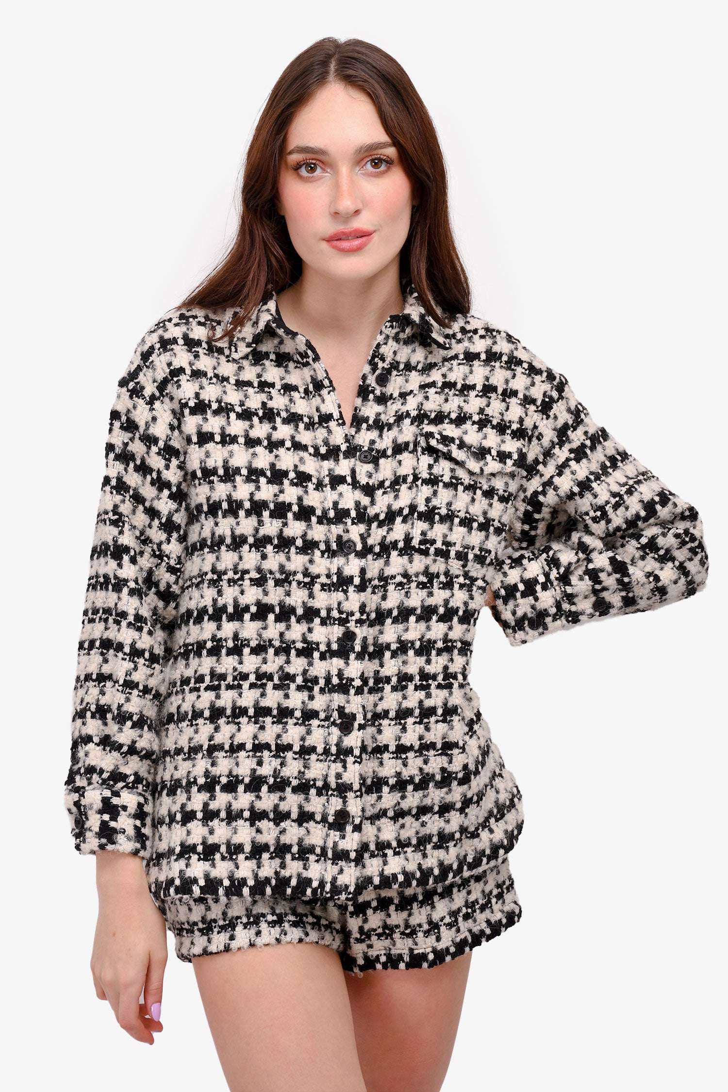 Refresh availabilityAnine Bing White/Black Houndstooth Metallic Oversized Shirt Jacket & Shorts Set. Metallic threading throughout. Jacket: Unlined. Front button fastening. Shorts: Lined. Side pockets.