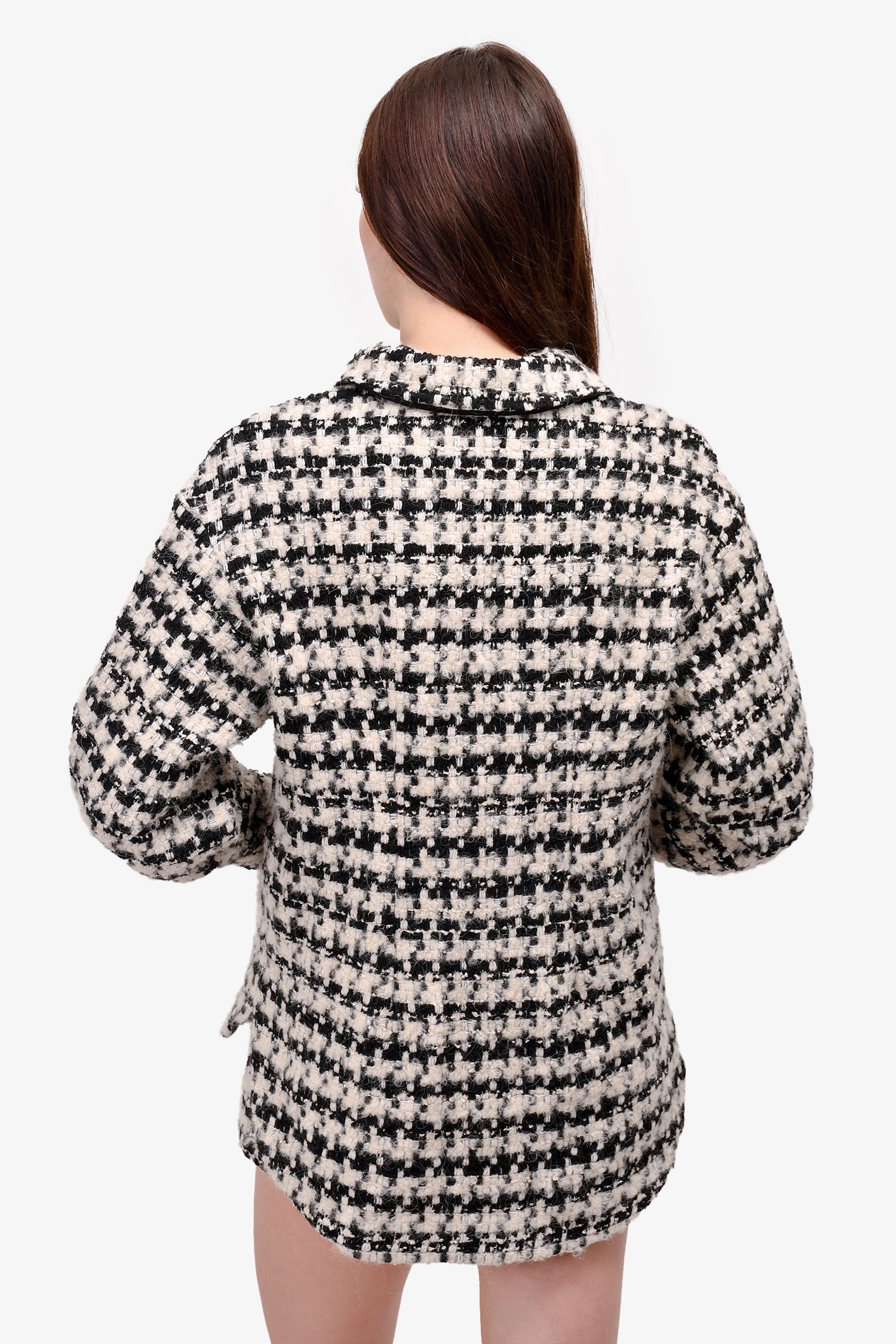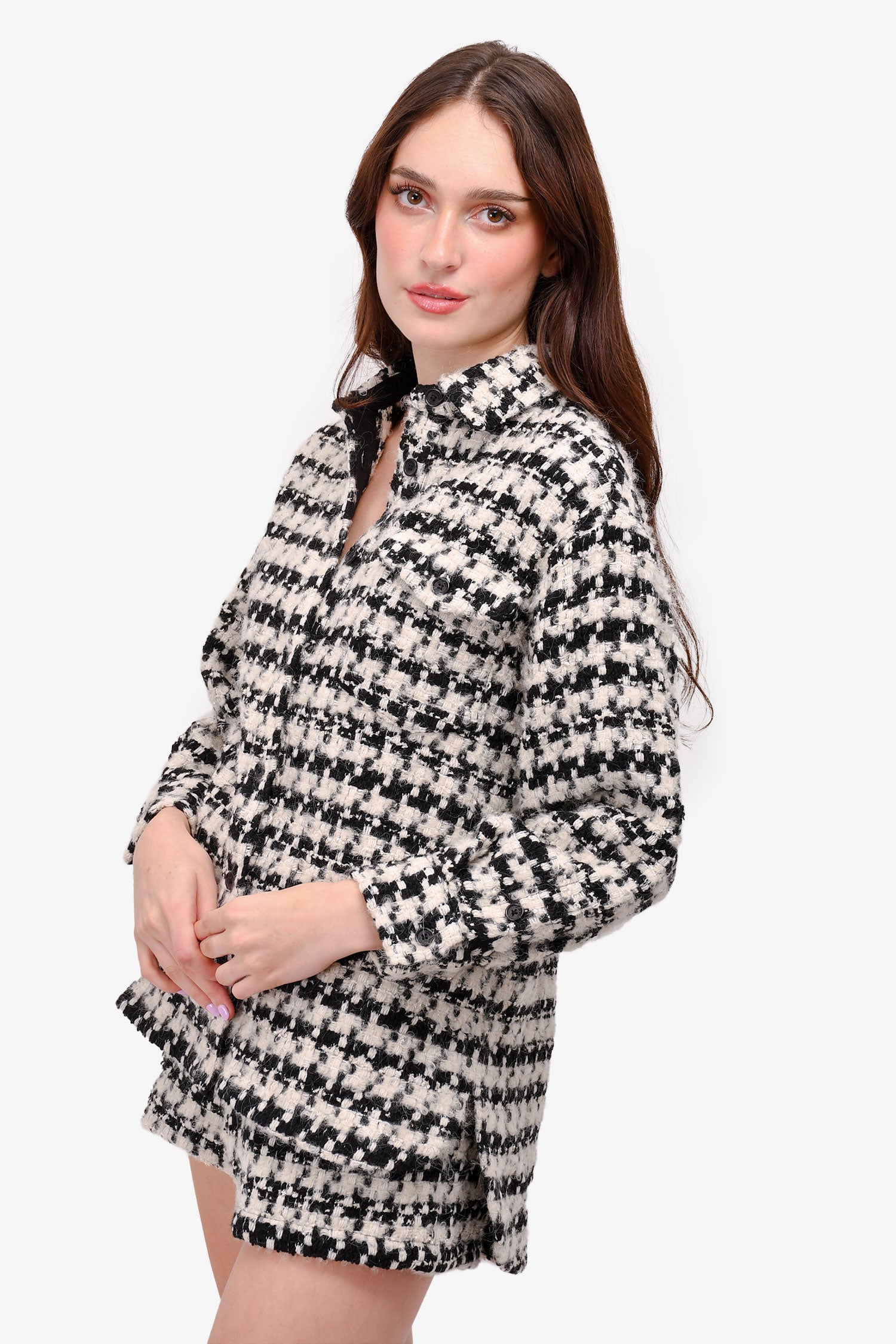 Anine Bing White/Black Houndstooth Metallic Oversized Shirt Jacket (Size XS) & Shorts (Size S) Set