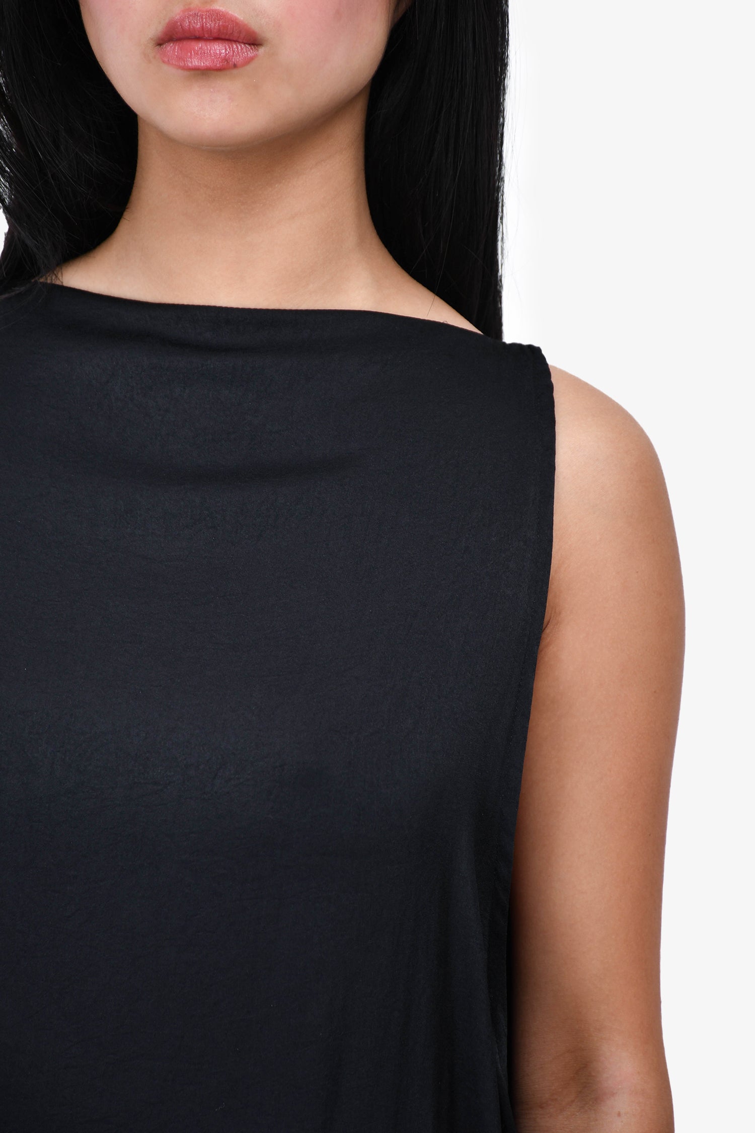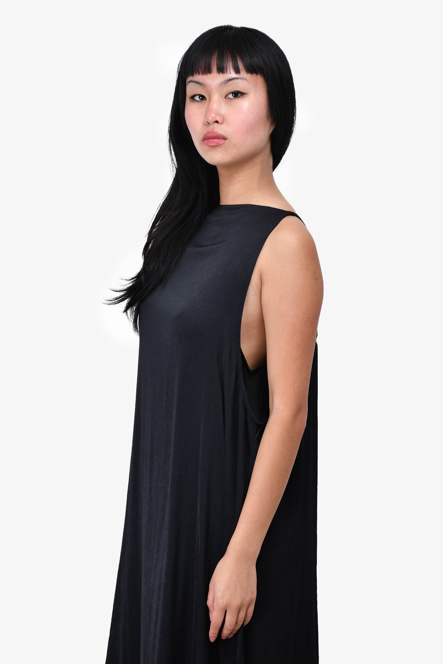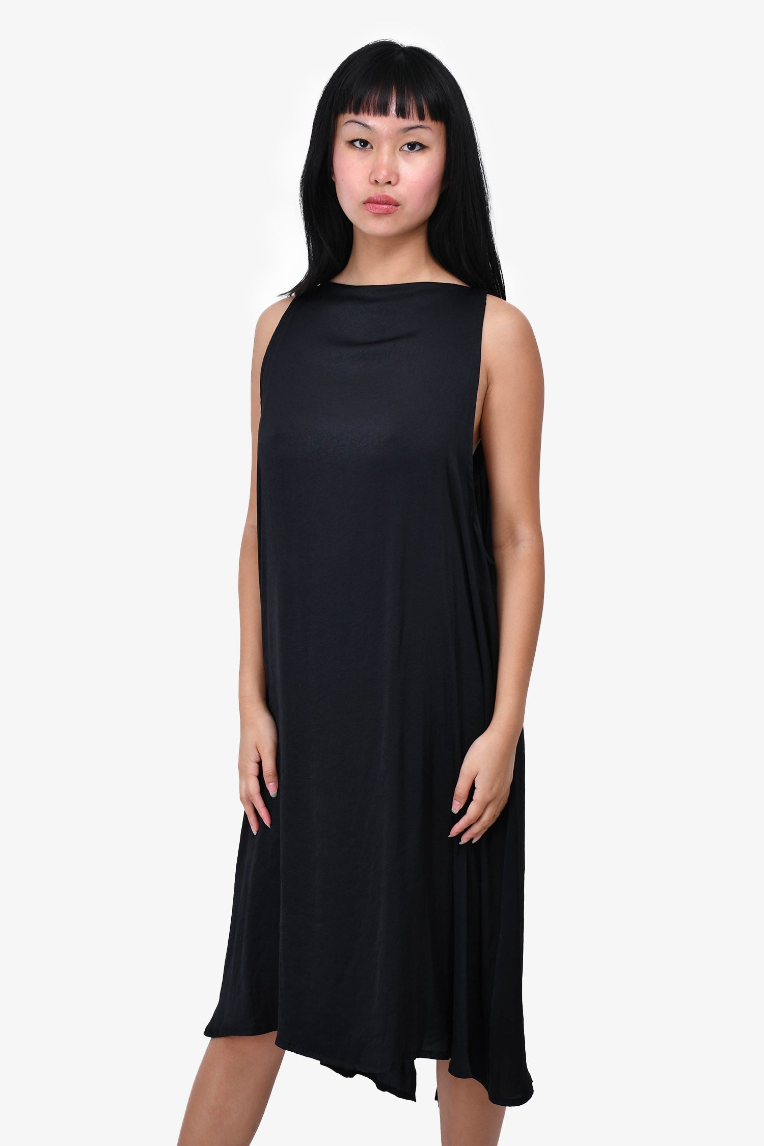 Refresh availabilityAnn Demeulemeester Black Flowy Double Layered Sleeveless Dress. Rear hook closure.