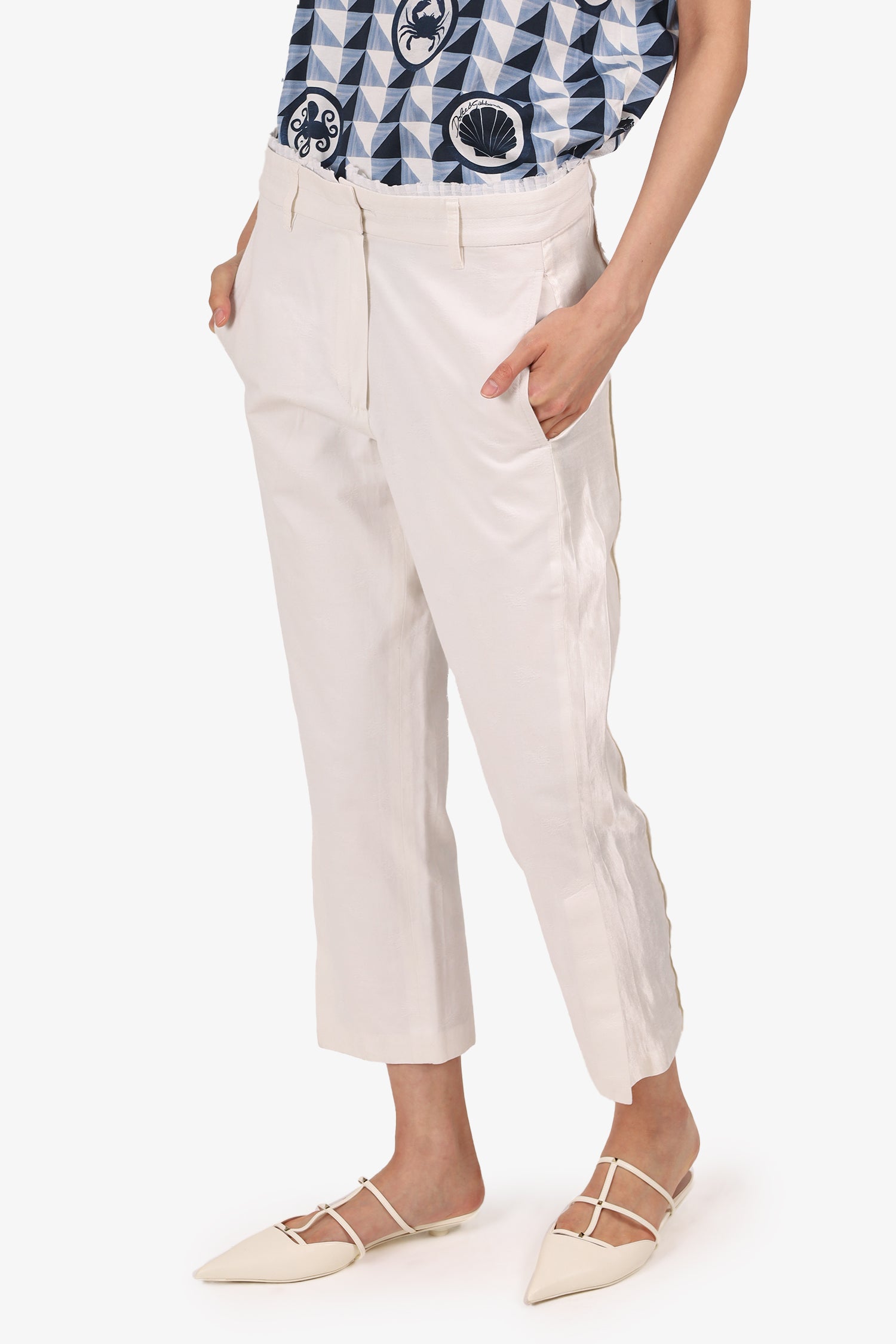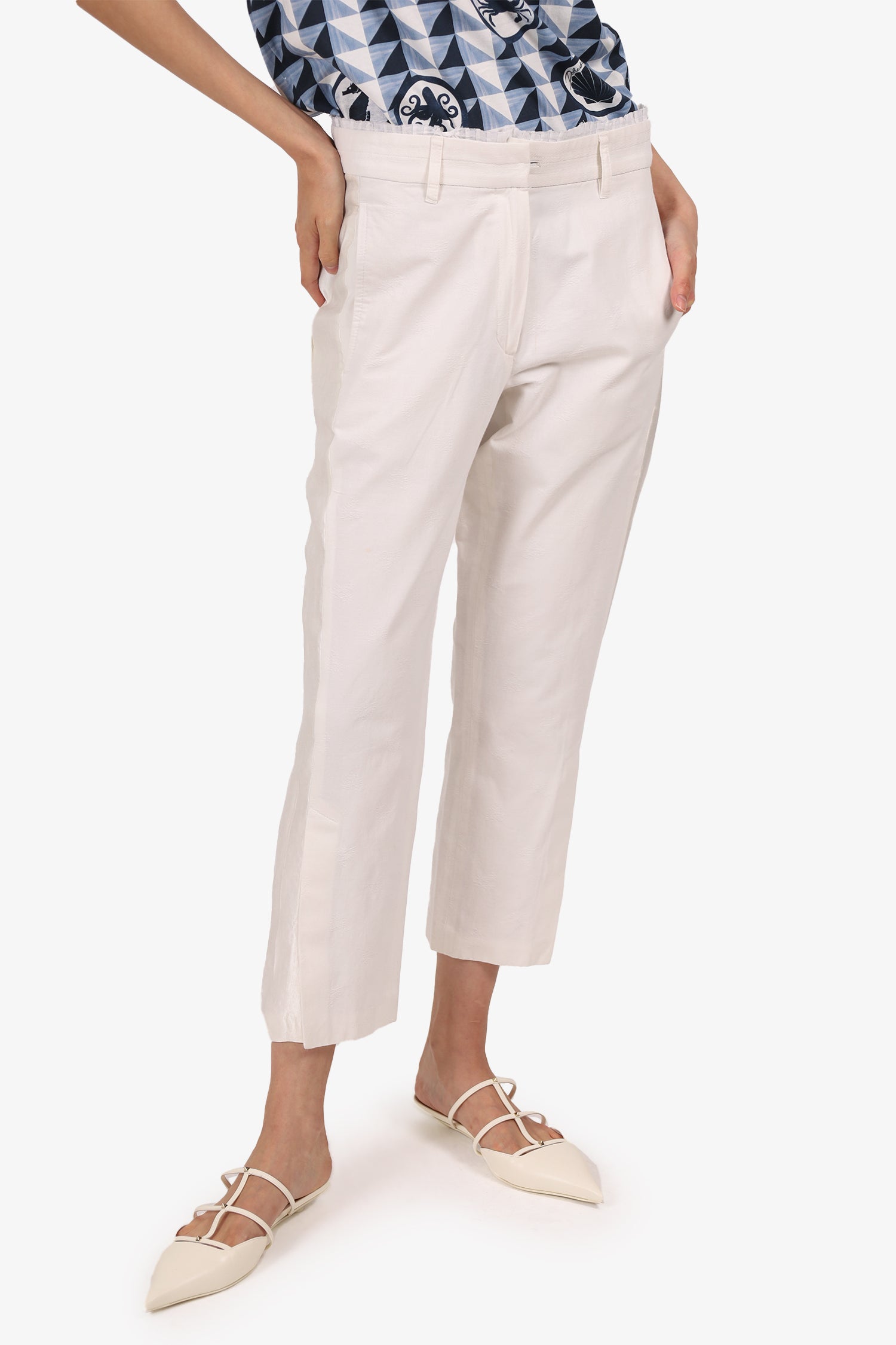 Ann Demeulemeester White Pleated Waist Detail Pants Size 36