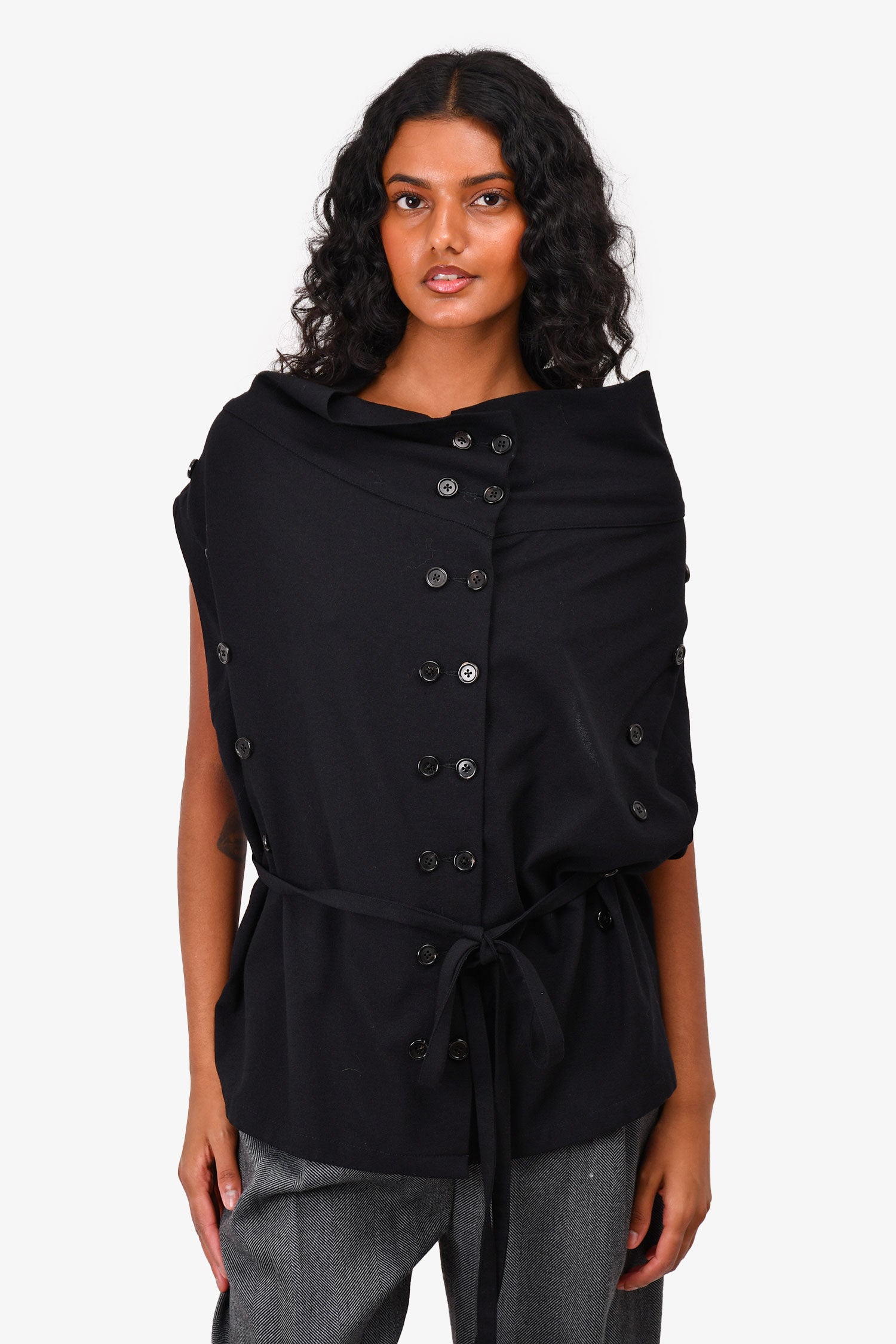 Refresh availabilityAnn Demeulemeester Black Wool Blenc Sleeveless Belted Top. Pull-on. Front button-up closures.