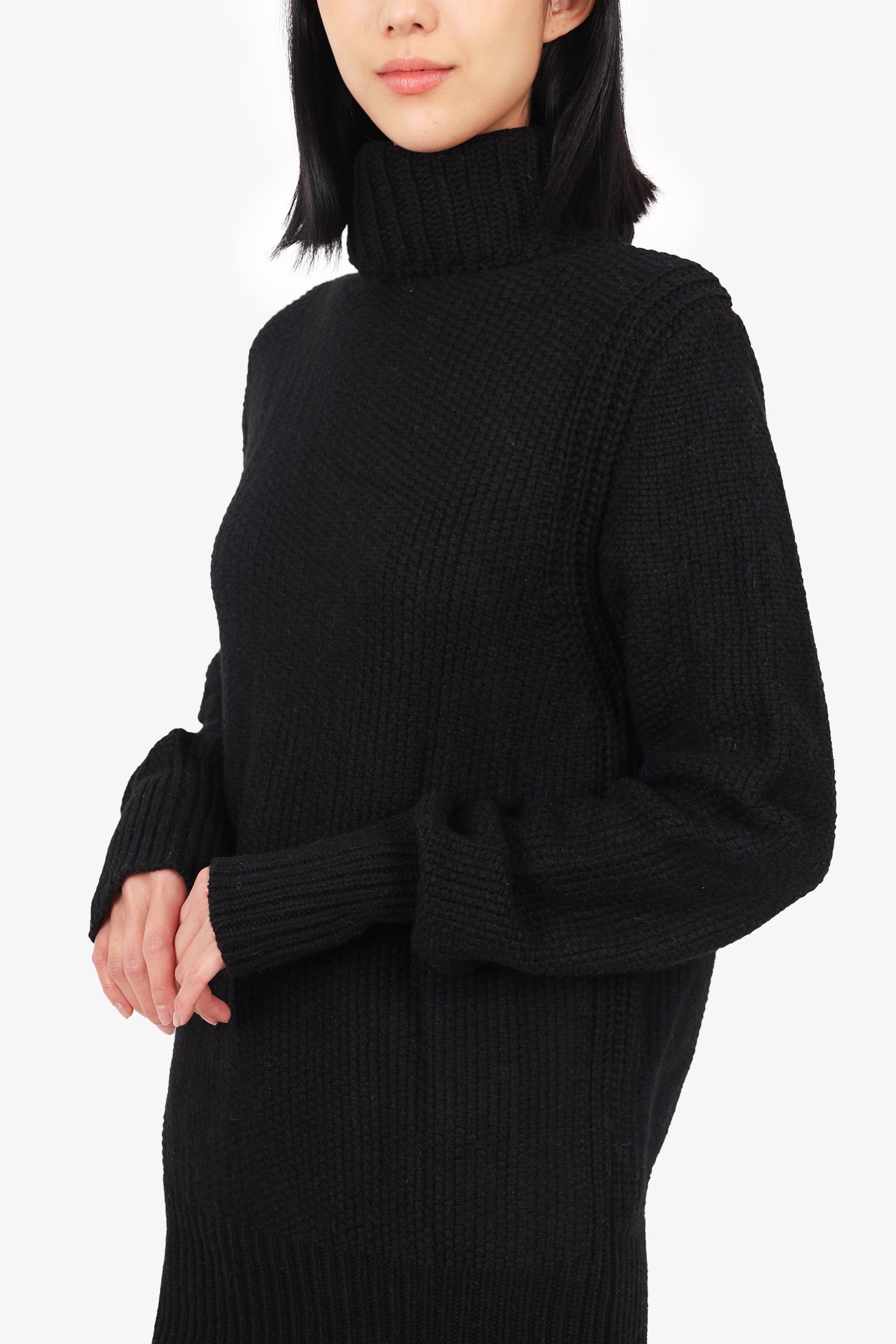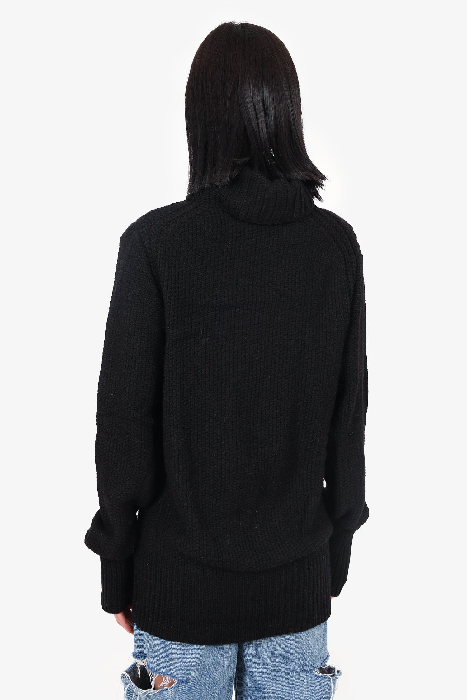 Refresh availabilityAnn Demeulemester Black Wool Turtle Neck Knit Sweater. Pull-on. Ribbed and elasticizied bottom hem and sleeve cuffs. Unlined. Tonal stitching.