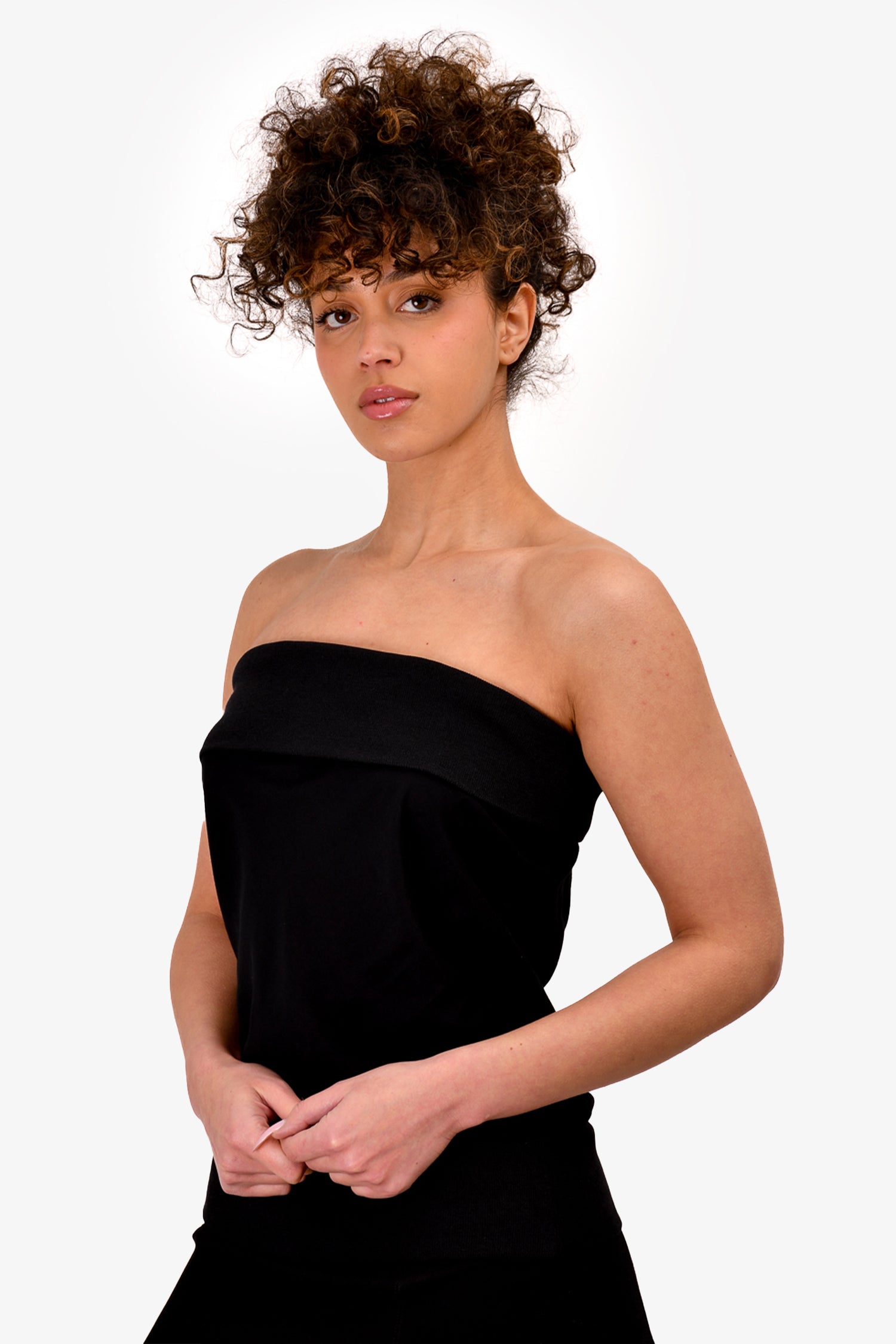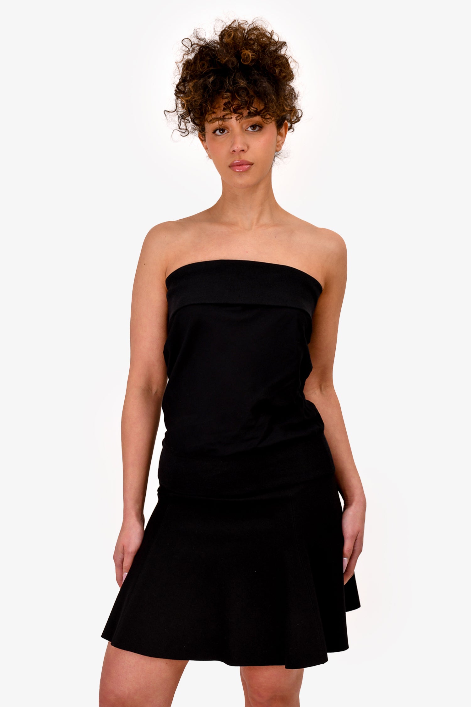 Refresh availabilityAnne Demeulemeester Black Knit Fold Over Tube Top. Lined. Tonal stitching.