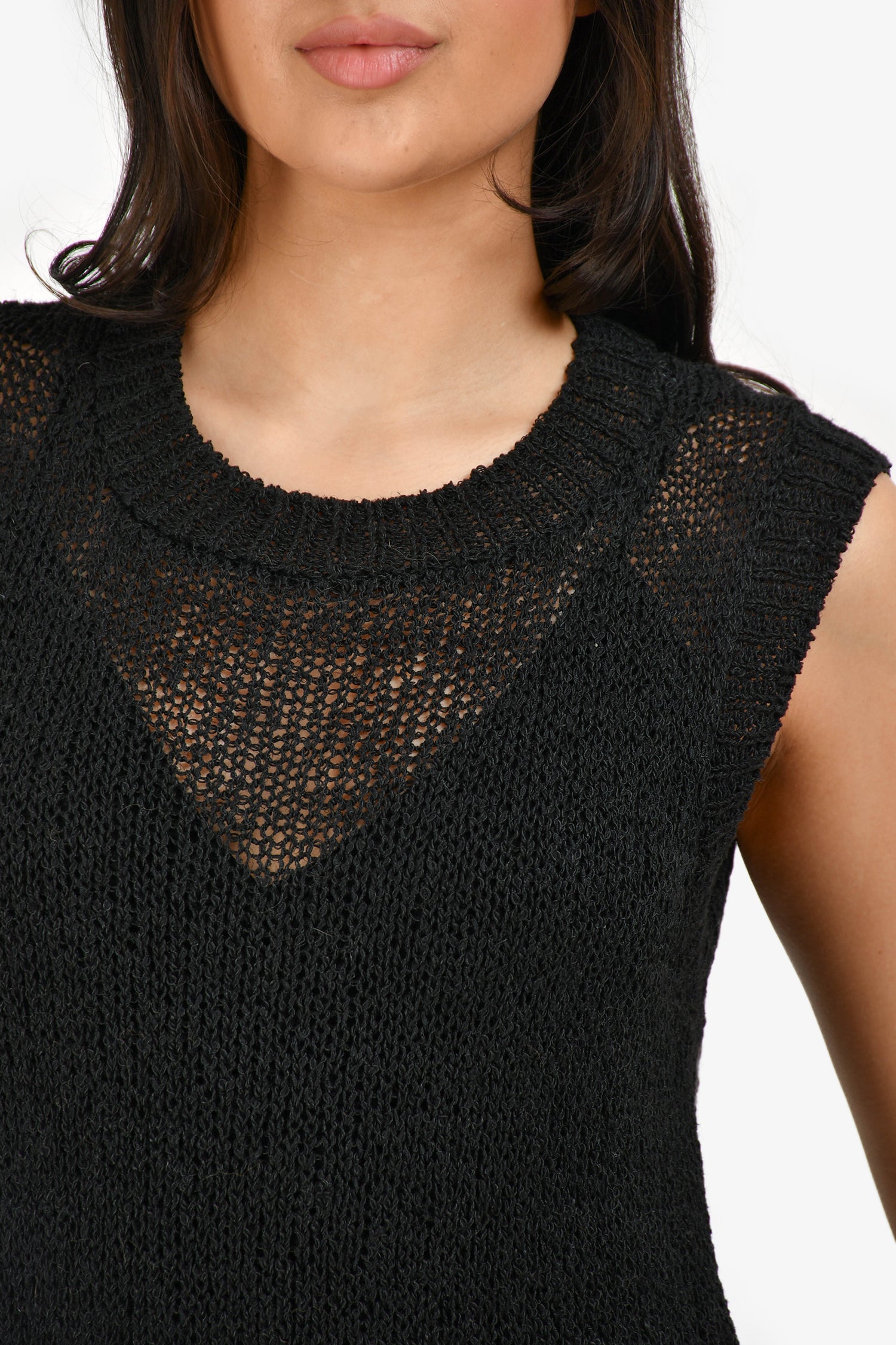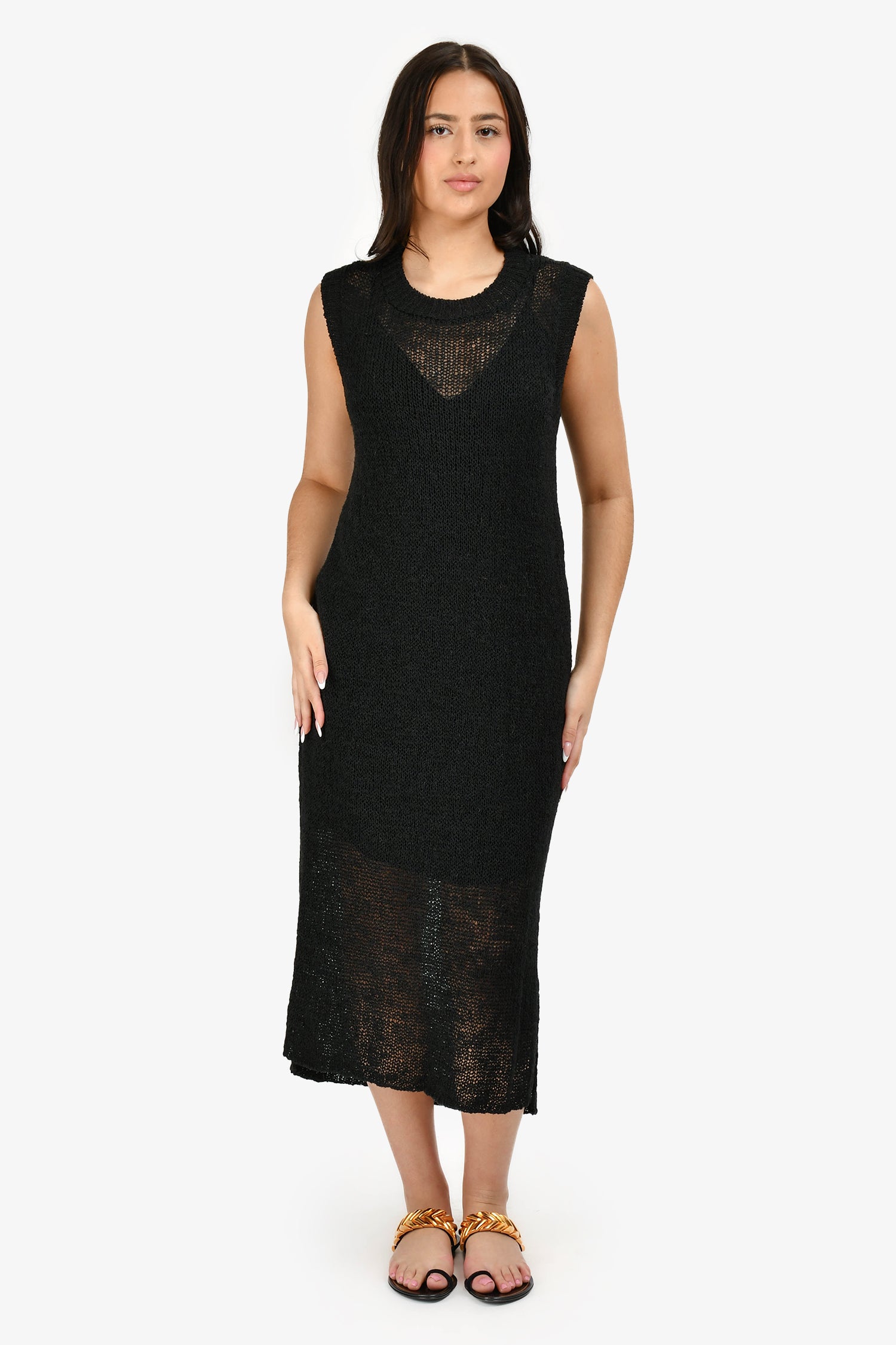 Refresh availabilityAnnette Gortz Black Hemp Blend Knit Sleeveless Midi Dress. Features two small slits on the bottom sides. Tonal stitching.