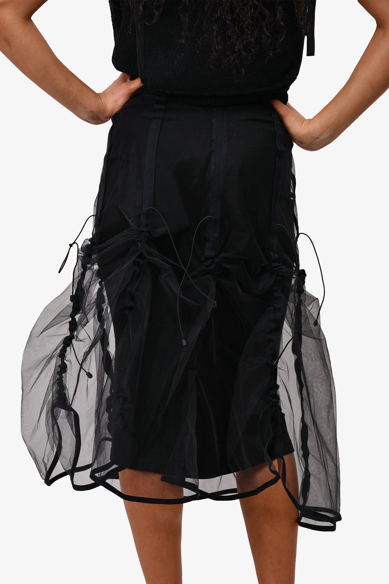 Annette Gortz Black Midi Skirt With Mesh Overlay and Drawstring Detail Est. Size L
