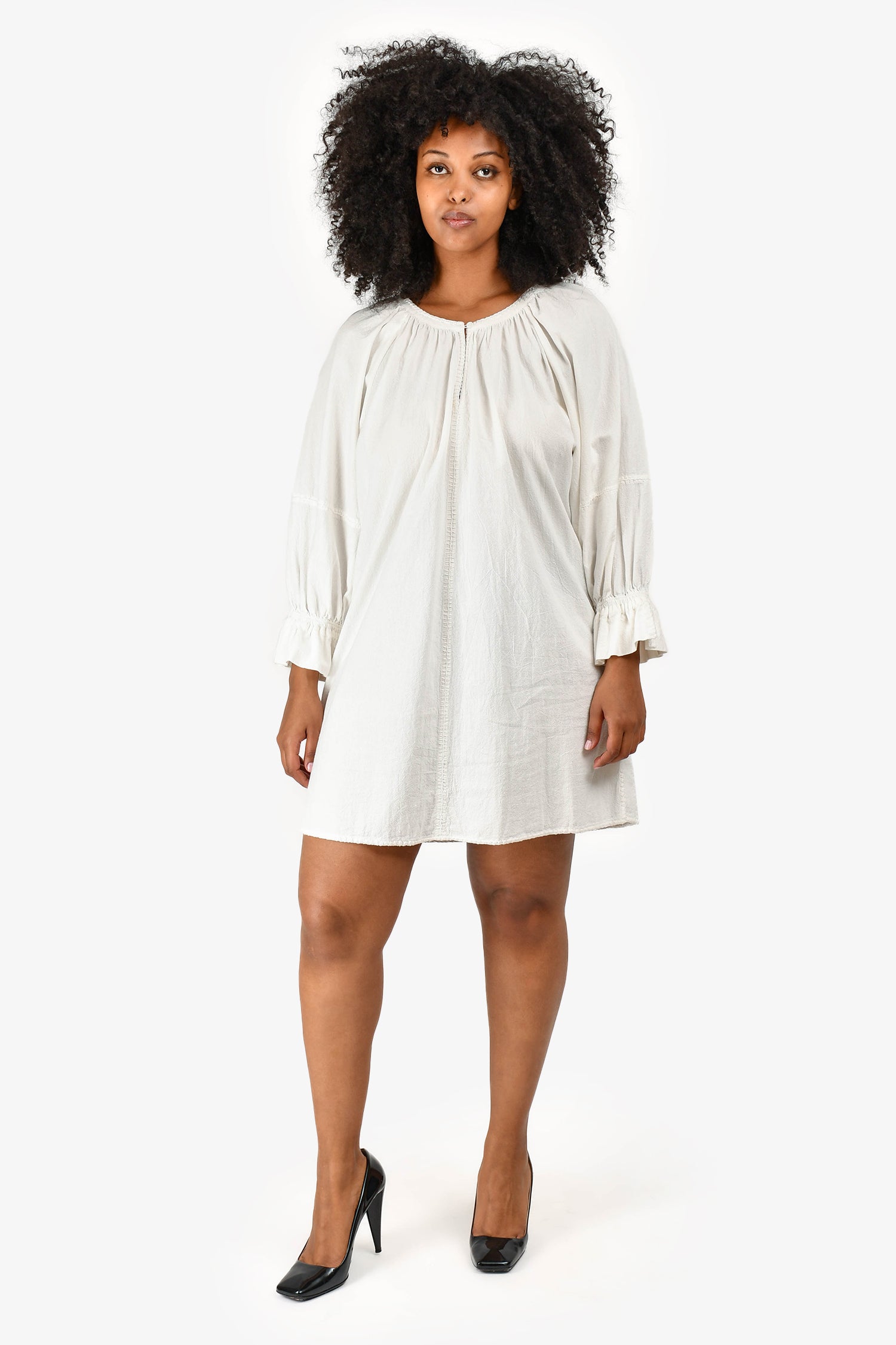 Apiece Apart White Cotton Long Sleeve Mini Dress Size M