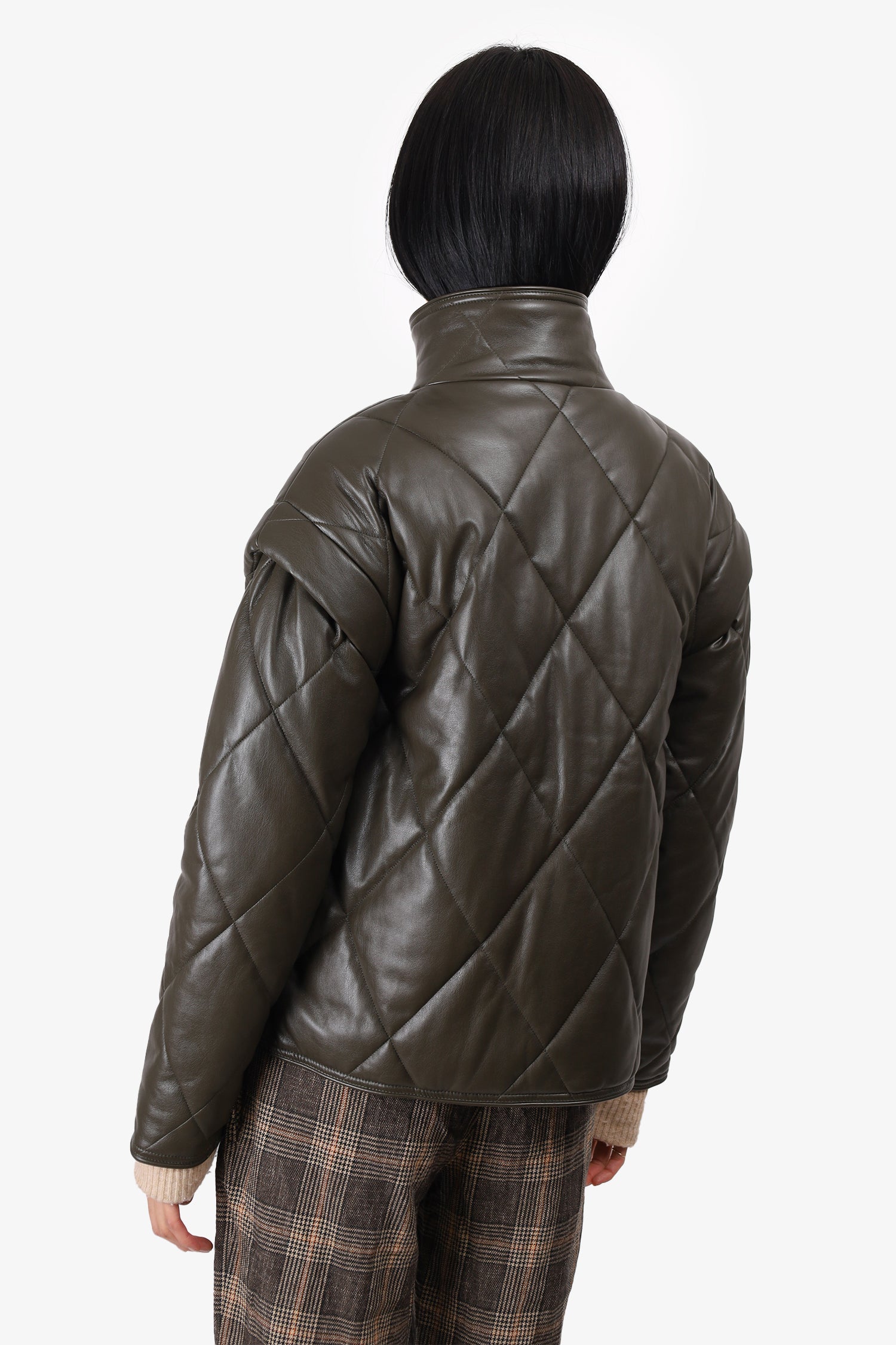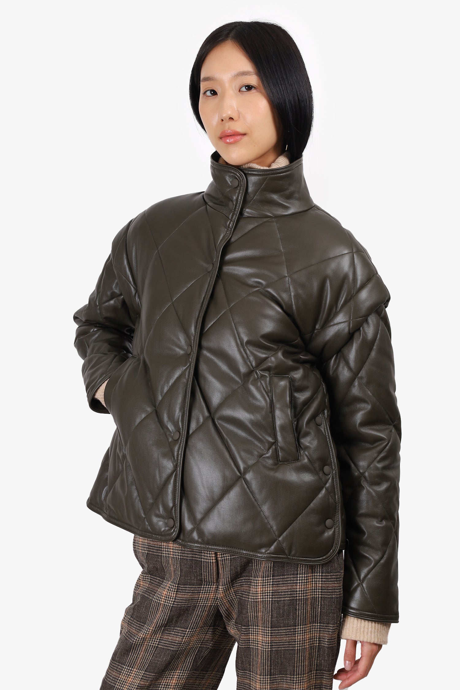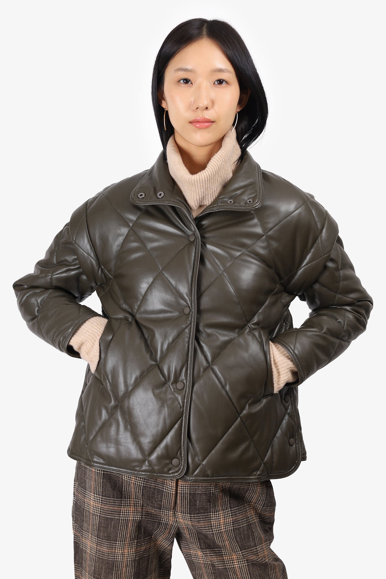 Apparis Khaki Faux Leather Quilted Puffer Jacket Size M