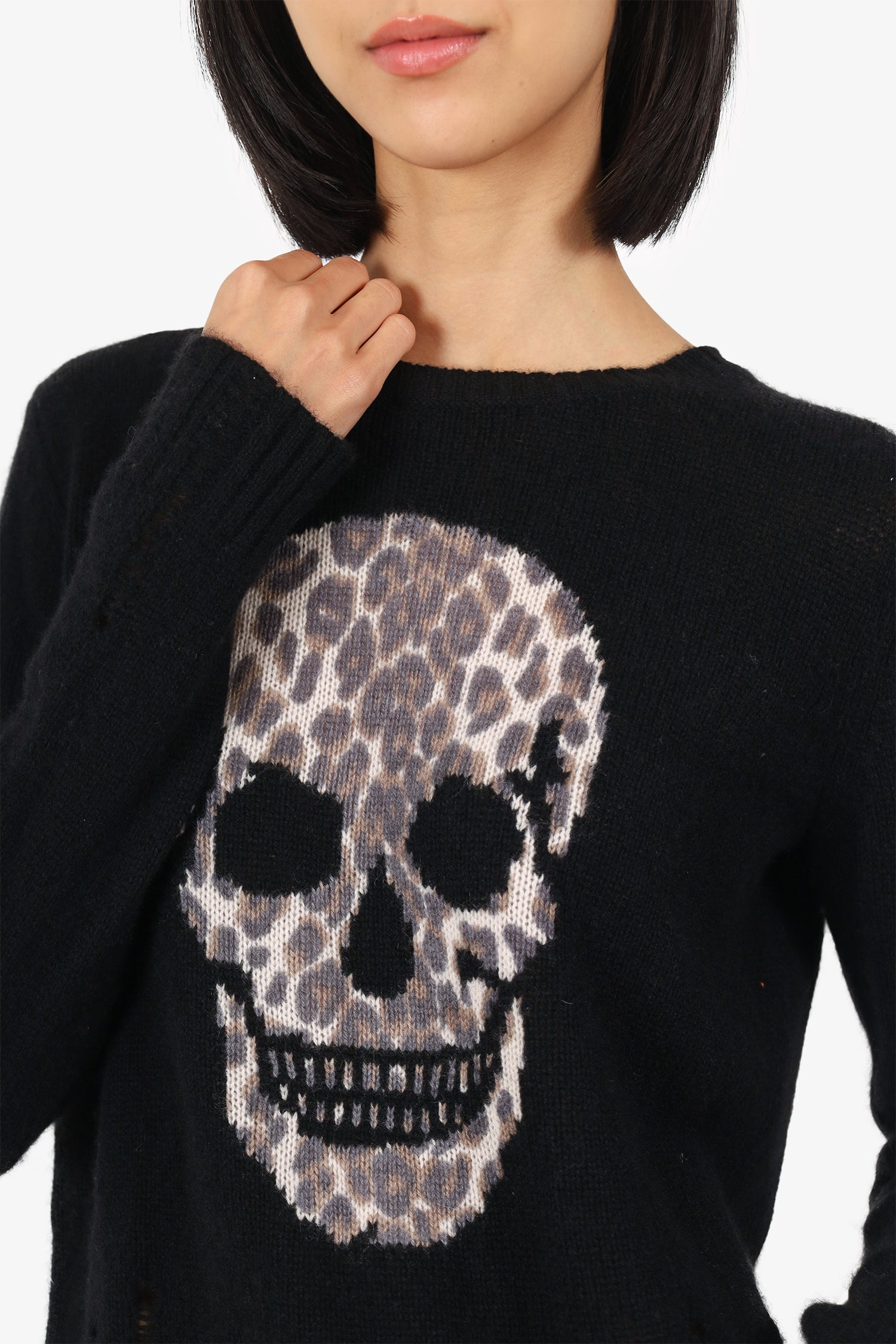 Refresh availabilityAqua Cashmere Black Distressed Skull Print Sweater. Pull-on. Round-neckline. Tonal stitching.