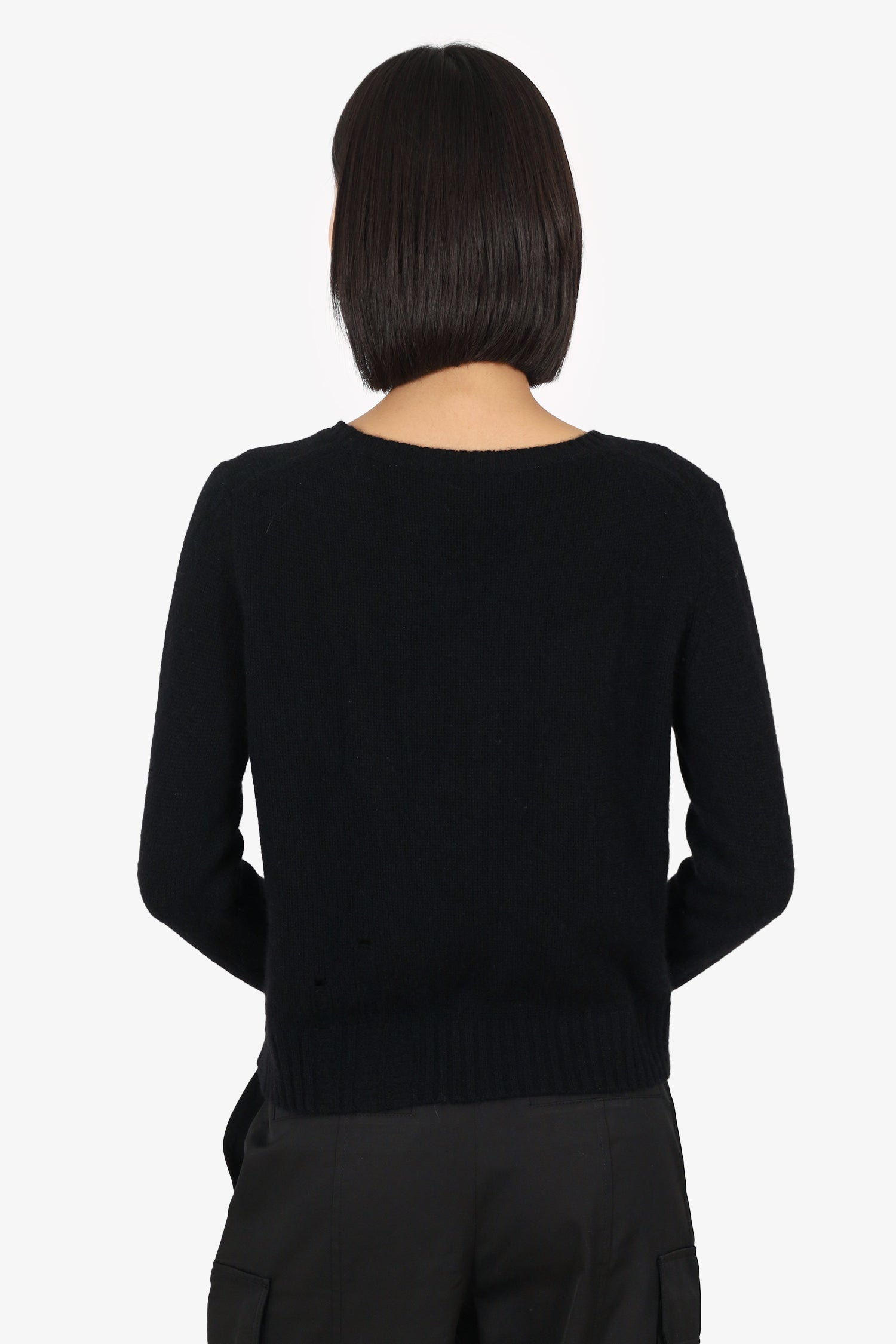 Aqua Cashmere Black Distressed Skull Print Sweater Size S