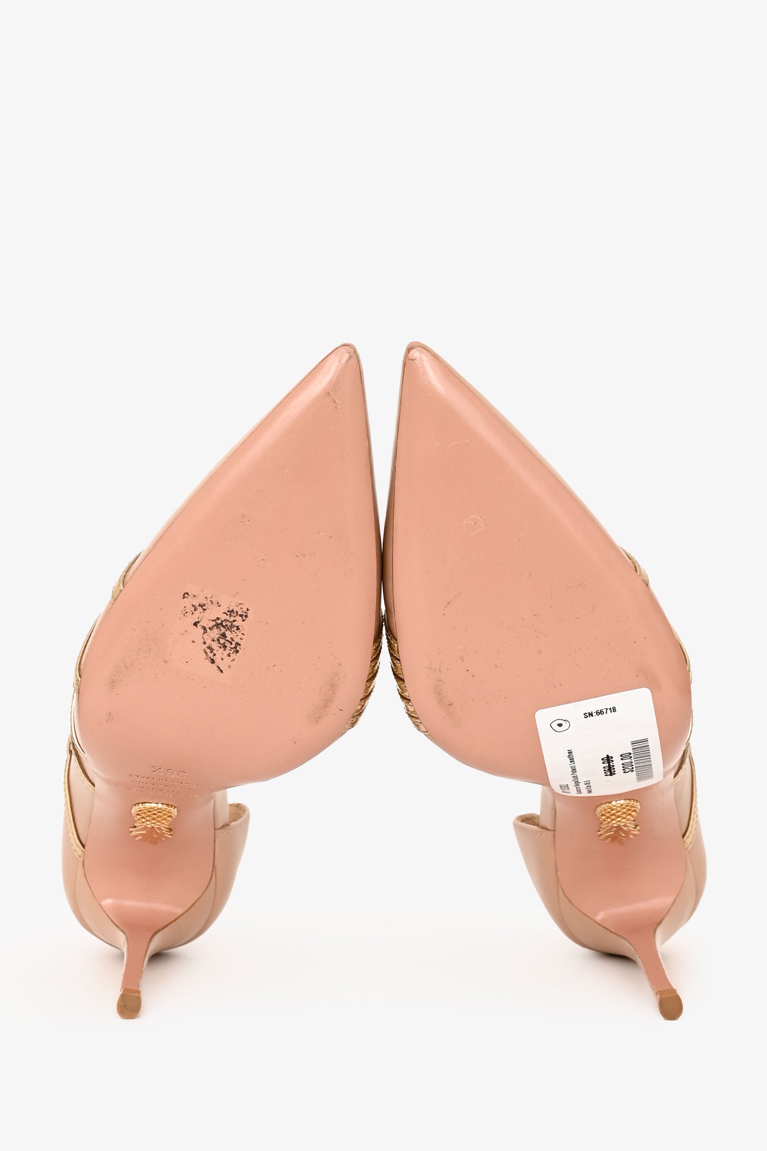 Aquazurra Beige/Gold Patent Leather Heels Size 36.5