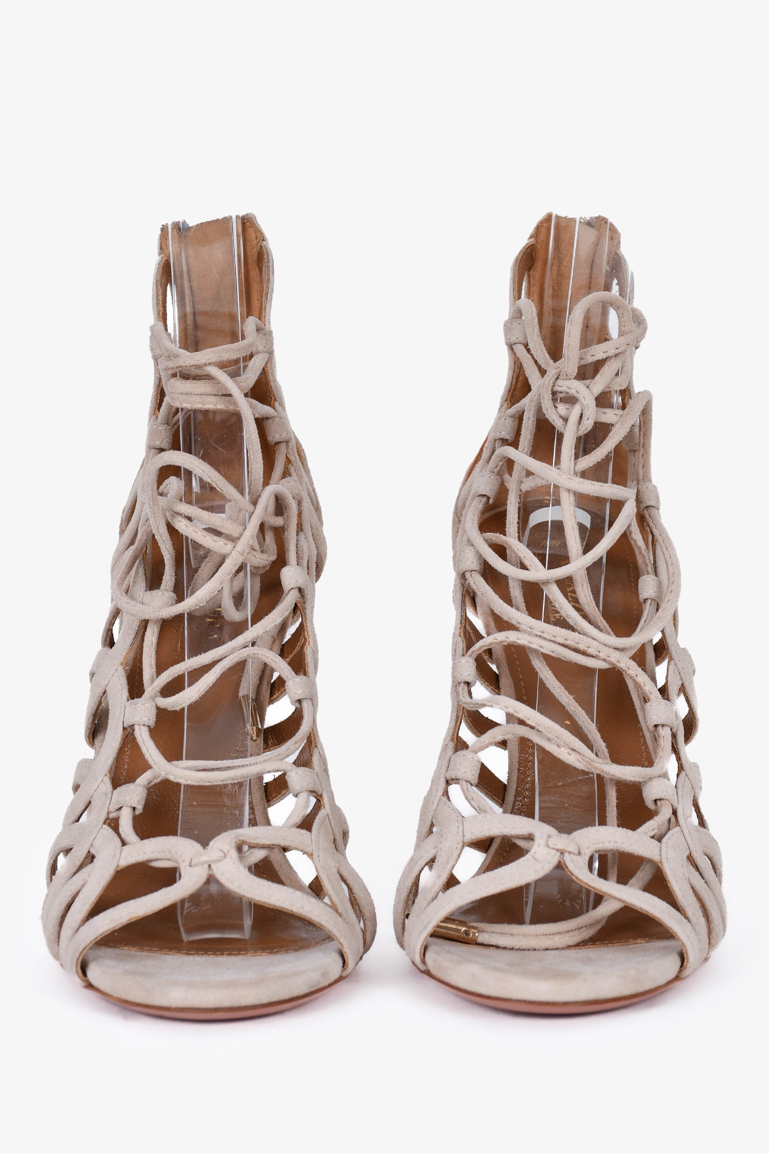 Aquazurra Beige Suede Lace Up Heels Size 36