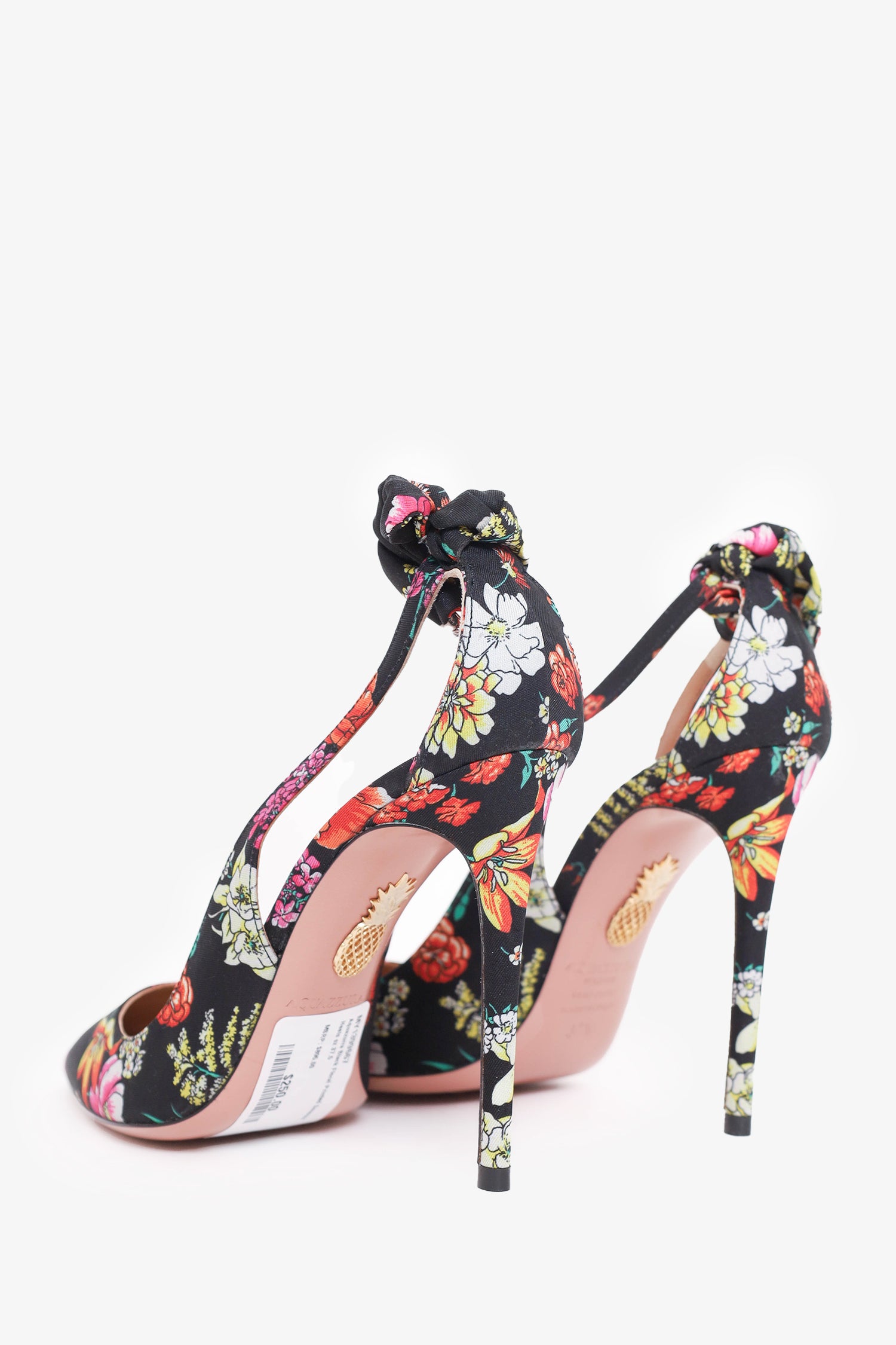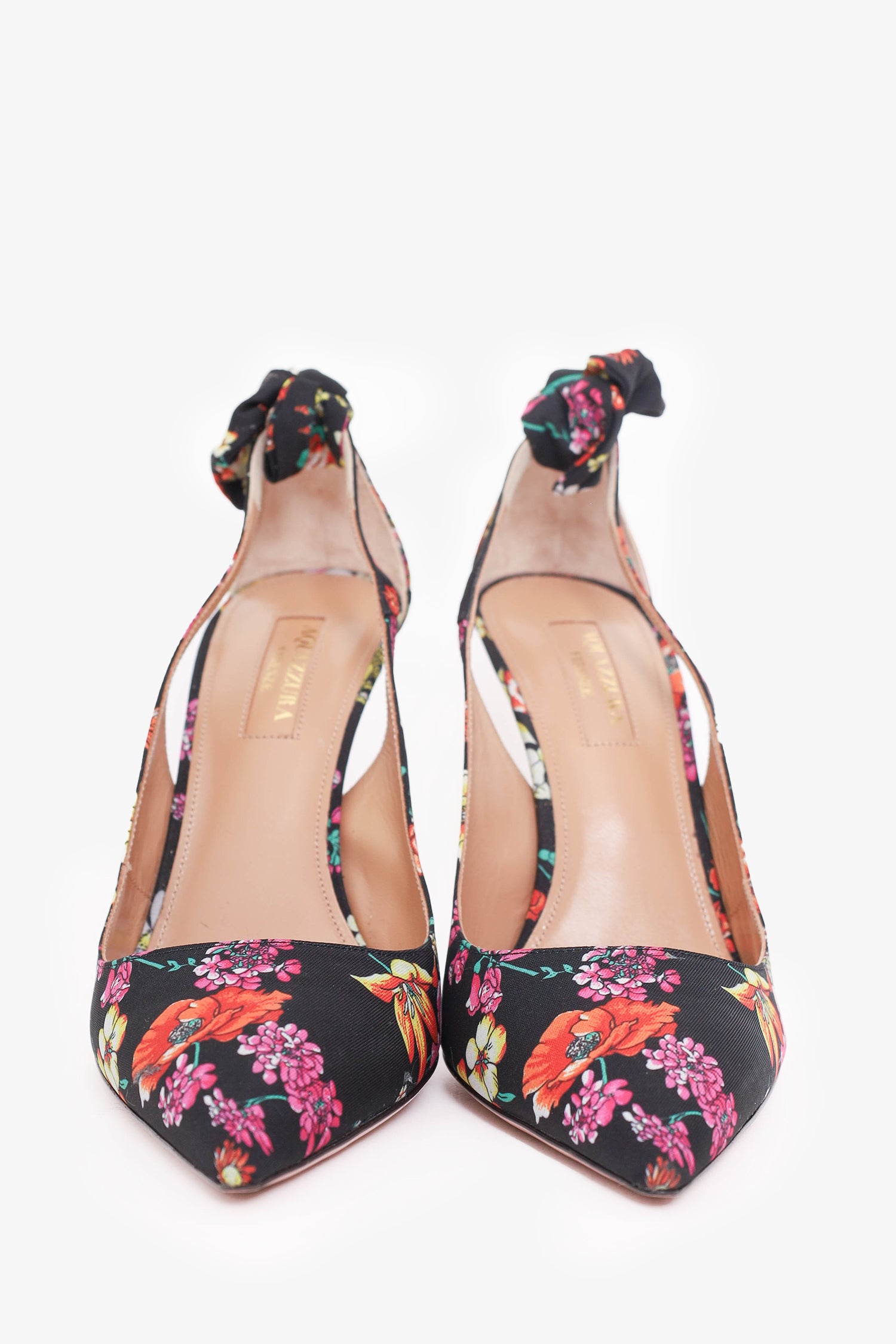Aquazurra Black Floral Printed Deneuve Heels Size 37.5
